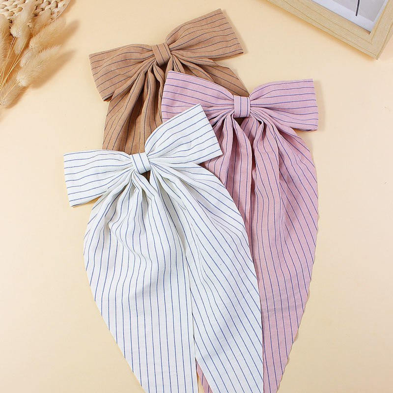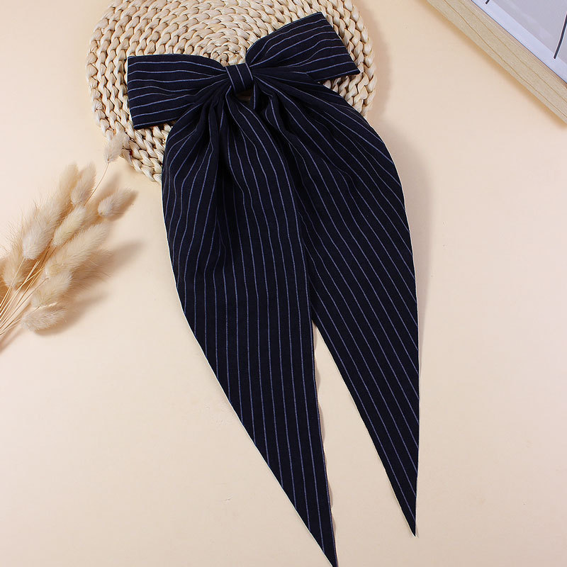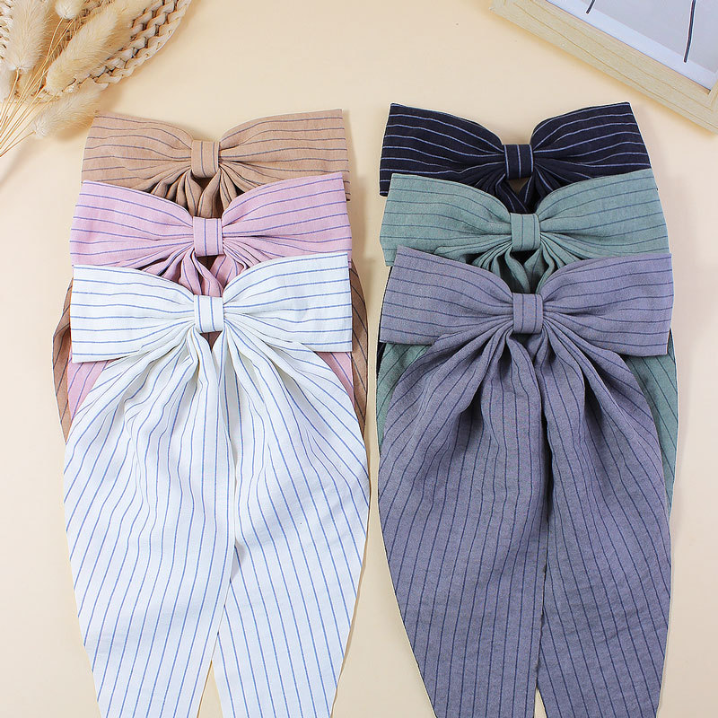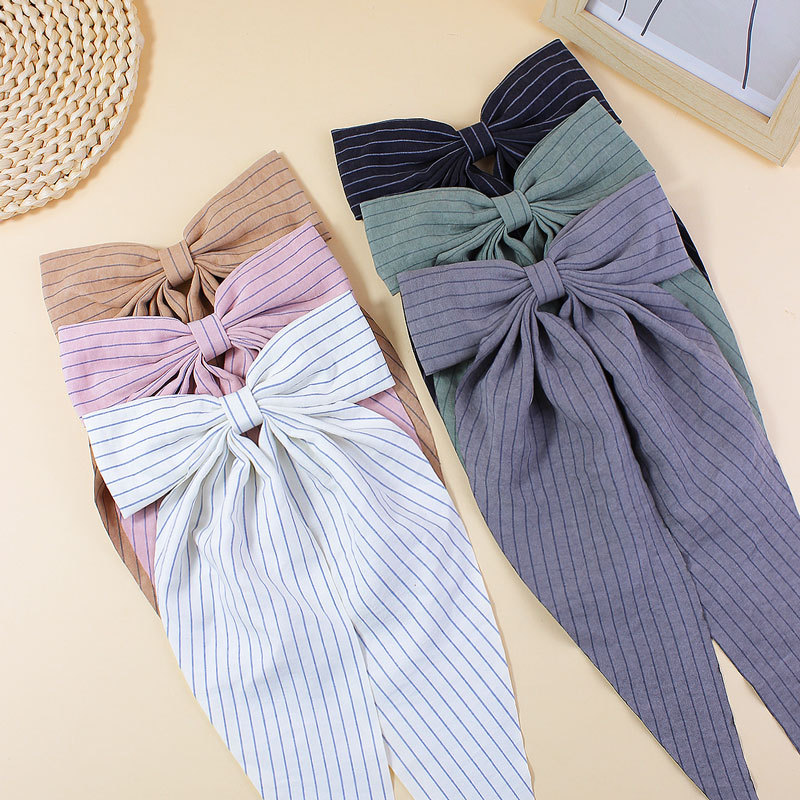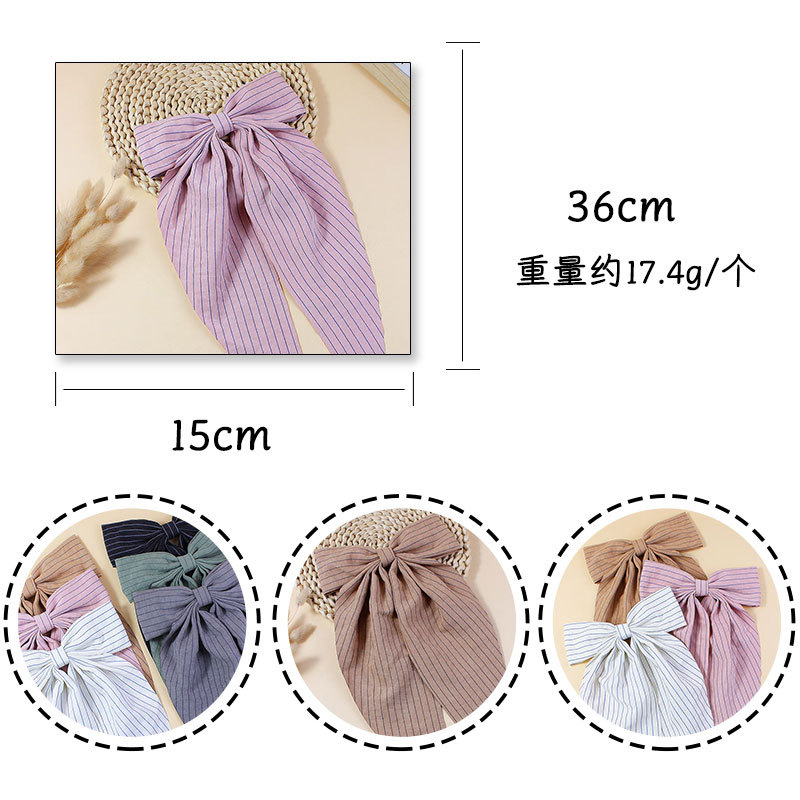 【名称】新款简约条纹布艺飘角蝴蝶结发夹儿童成人长飘发卡后脑勺头饰发饰