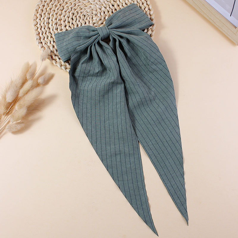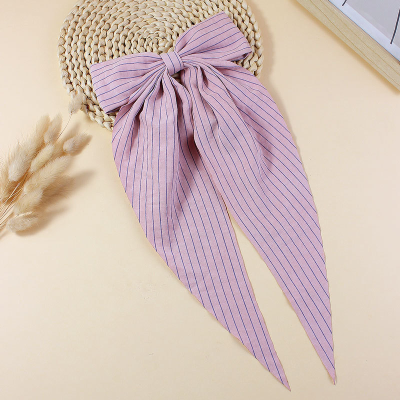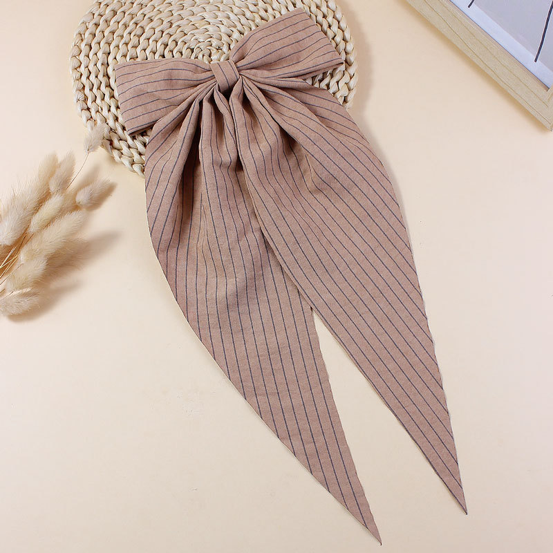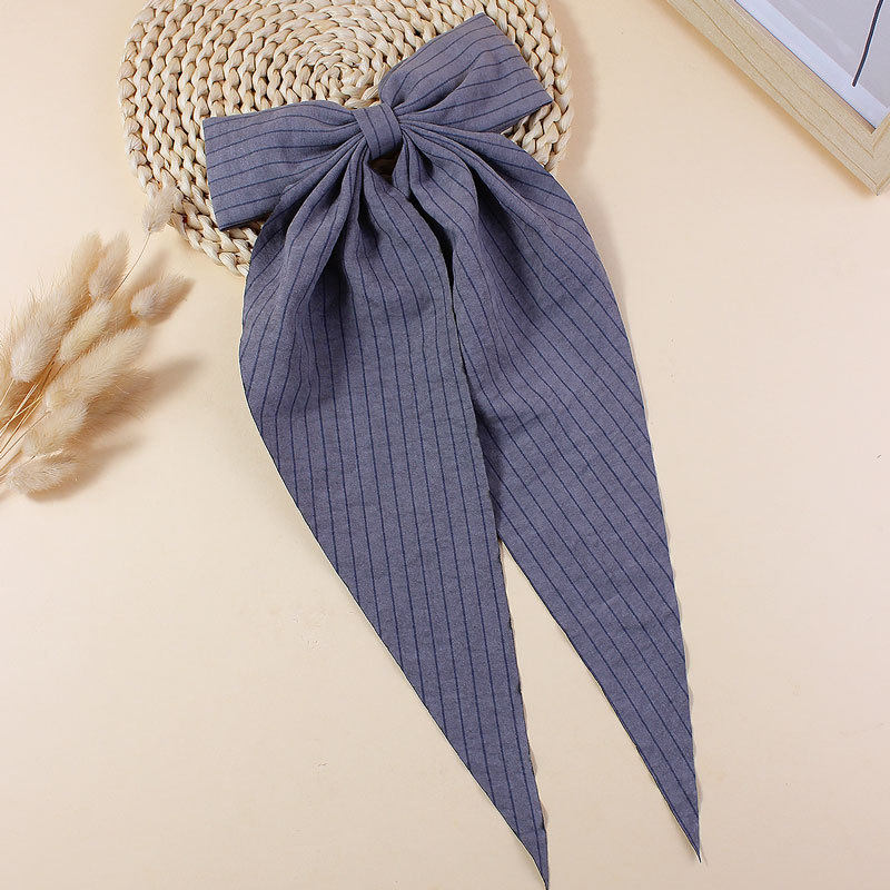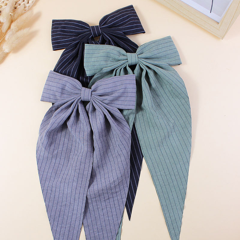 【名称】新款简约条纹布艺飘角蝴蝶结发夹儿童成人长飘发卡后脑勺头饰发饰