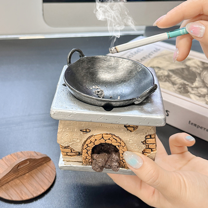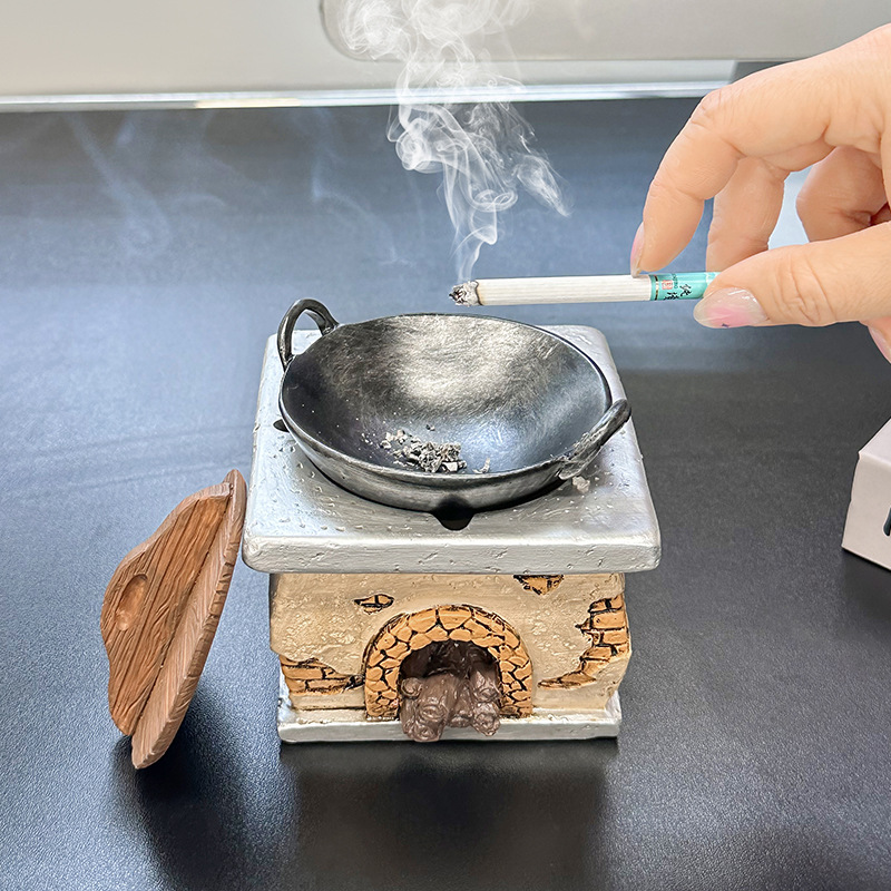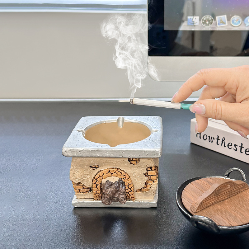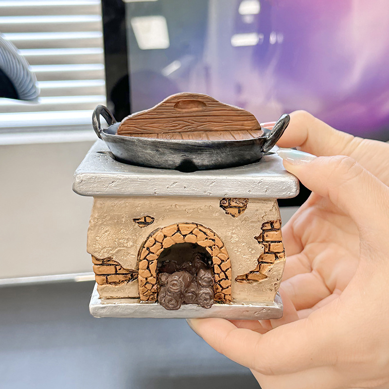 创意复古灶台烟灰缸家居客厅茶几办公室防飞灰桌面装饰品树脂摆件