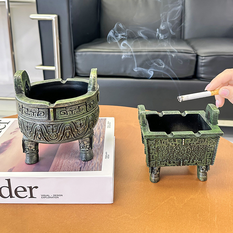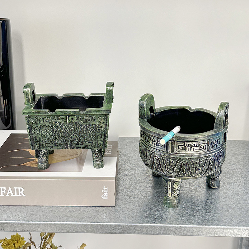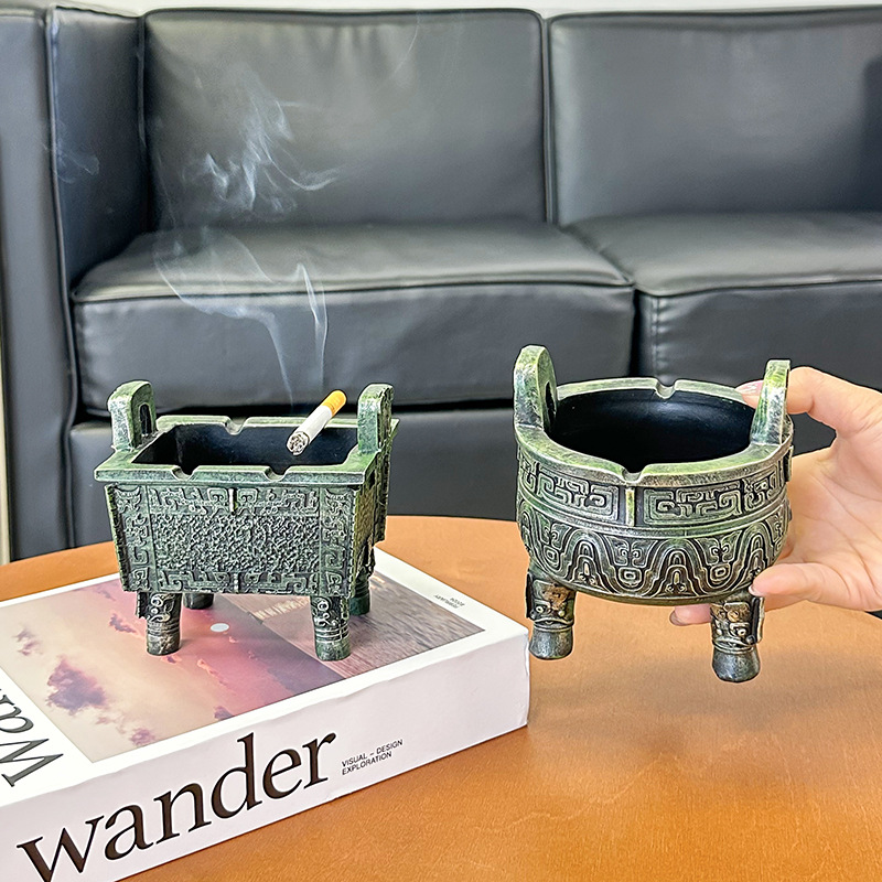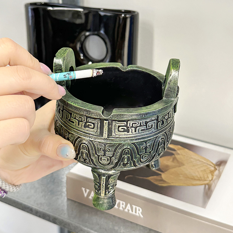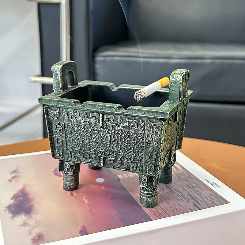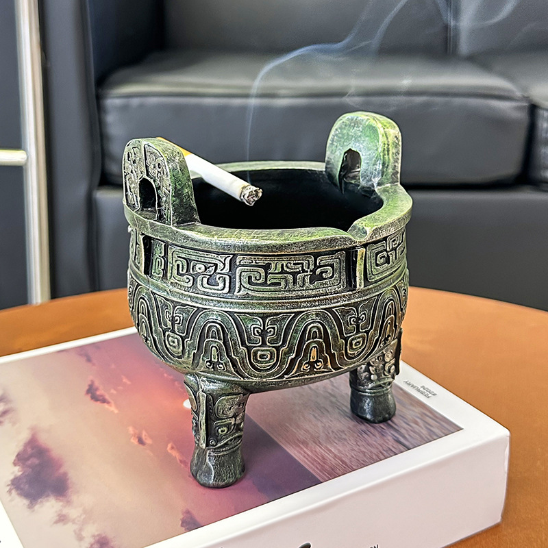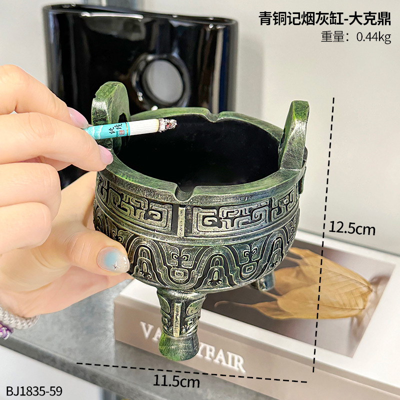 中式复古青铜器烟灰缸客厅办公室书房桌面防飞灰感家居装饰品摆件 English | 投诉