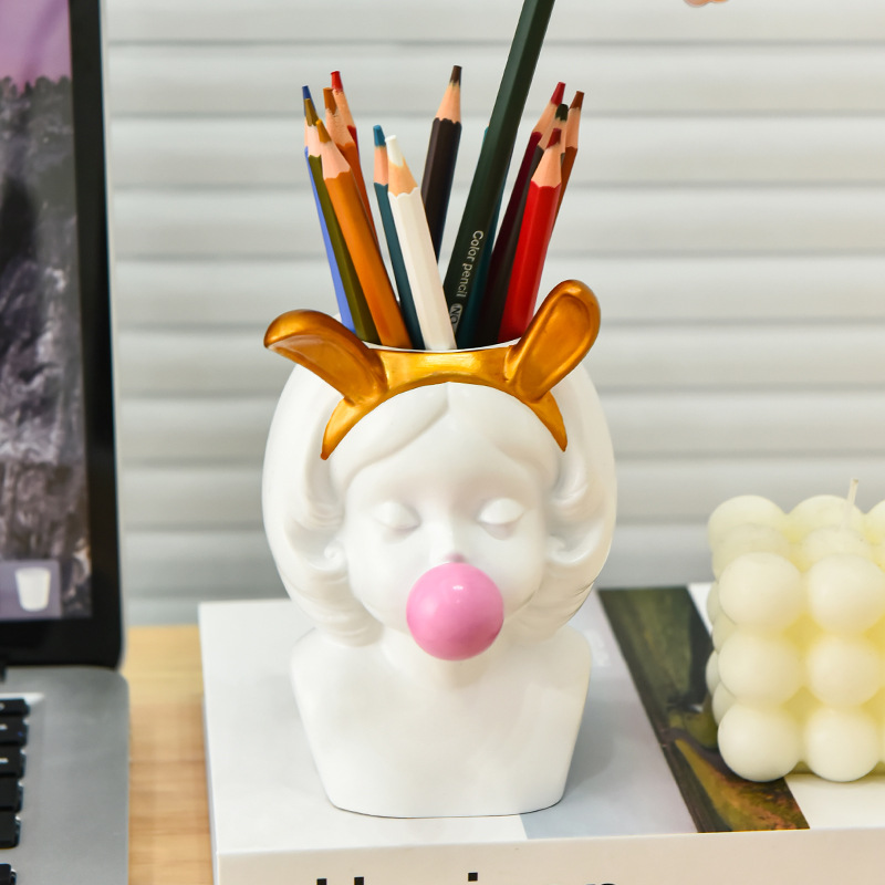 北欧风泡泡女孩多功能收纳笔筒学生办公室桌面高级感文具收纳桶 English | 投诉
