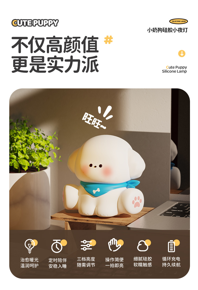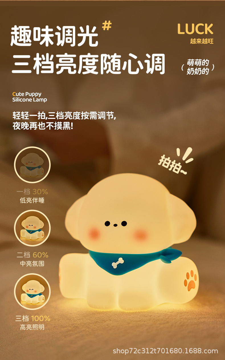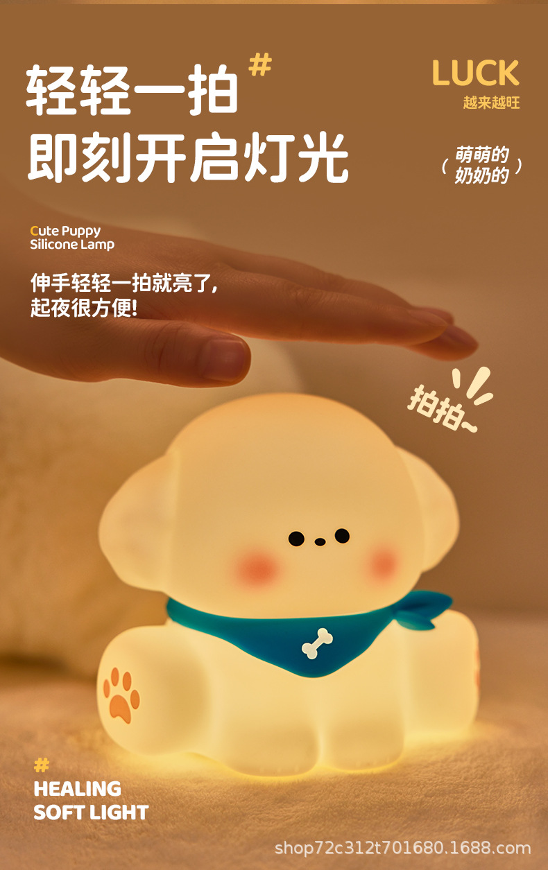 跨境爆款小狗拍拍小夜灯硅胶拍拍灯充电款睡眠床头灯小台灯氛围灯 English | 投诉