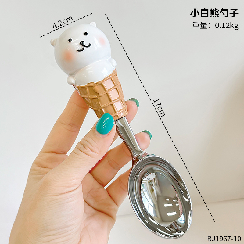 创意可爱史迪仔勺子高颜值家用小白熊汤勺冰淇淋挖勺甜品西瓜勺 English | 投诉