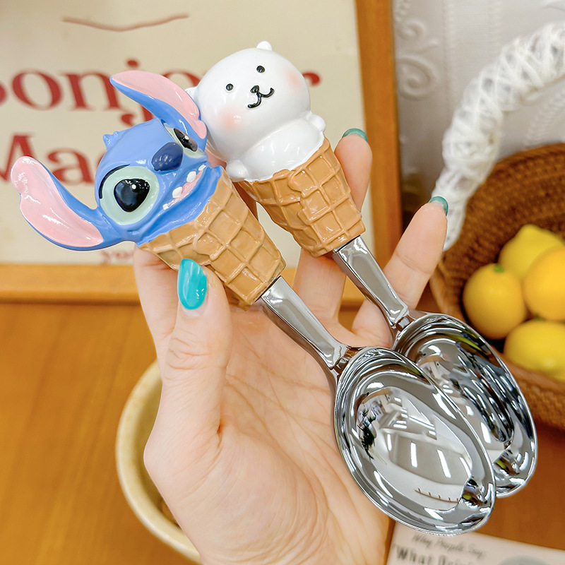 创意可爱史迪仔勺子高颜值家用小白熊汤勺冰淇淋挖勺甜品西瓜勺