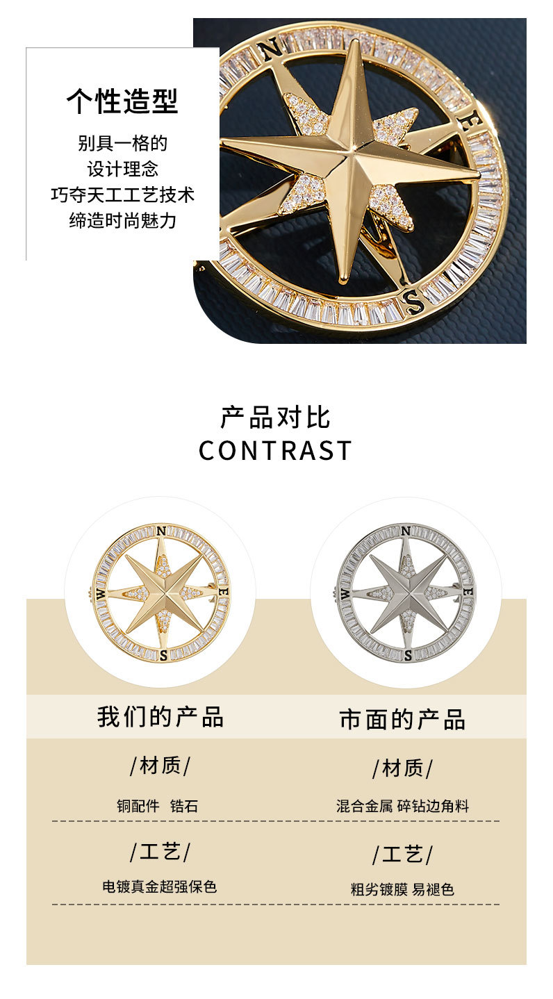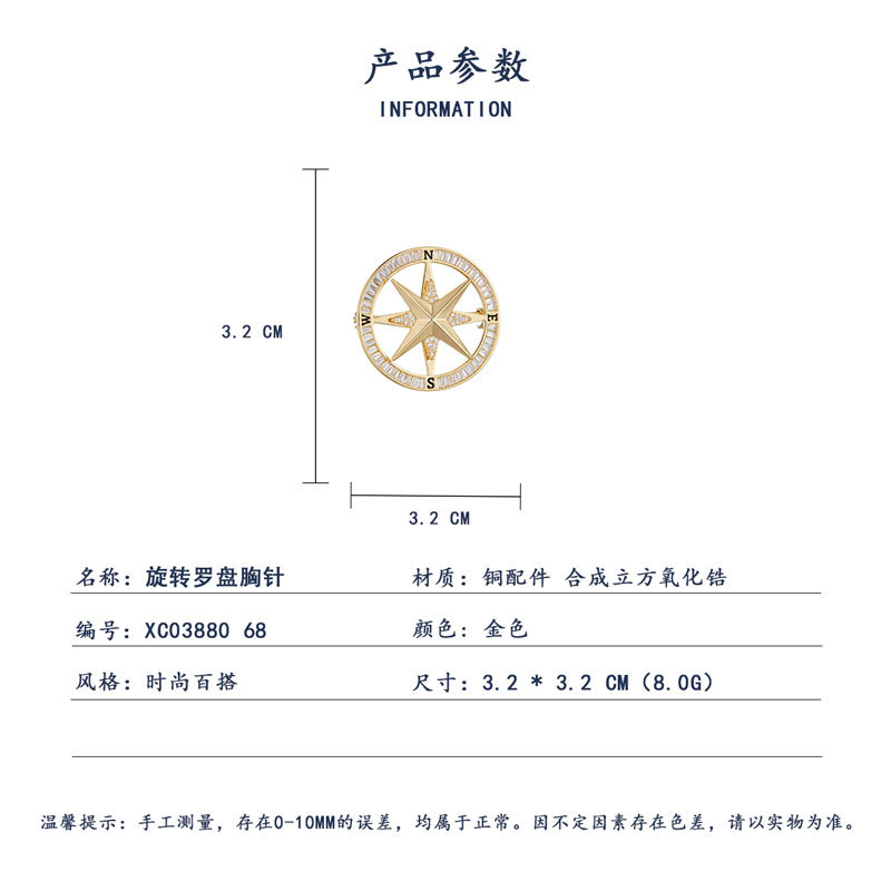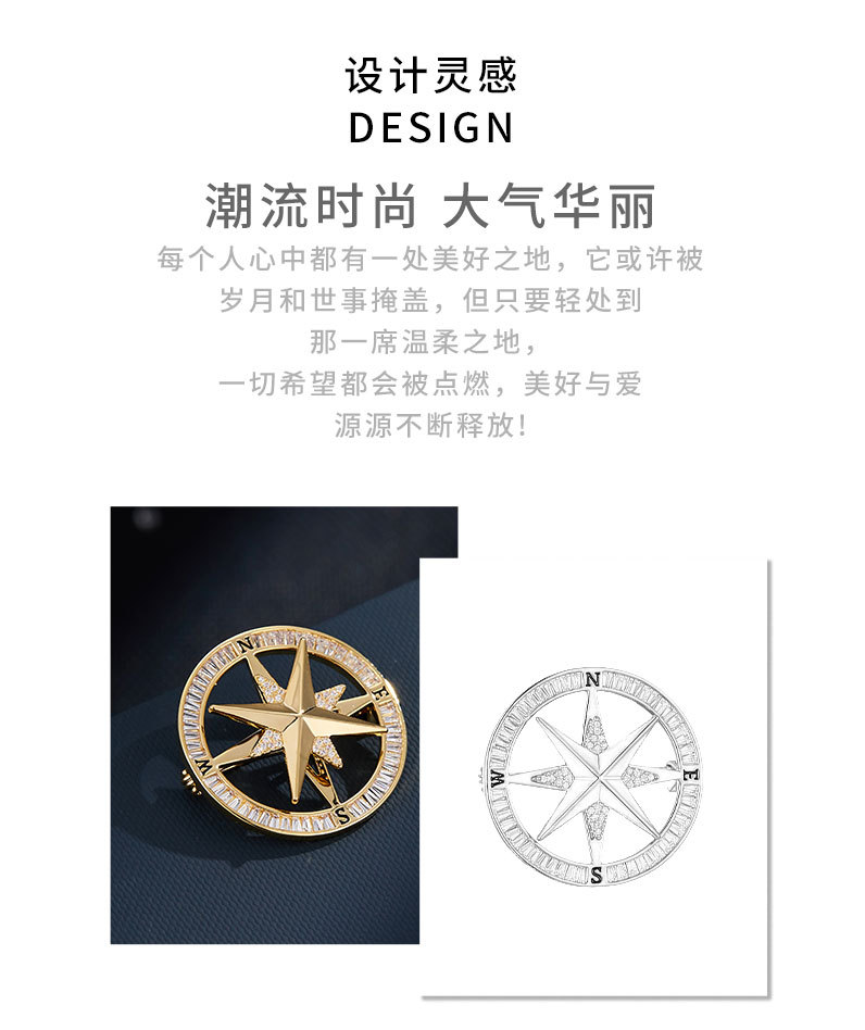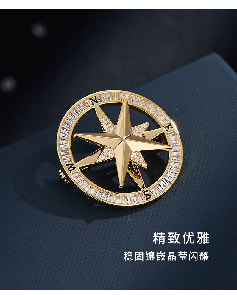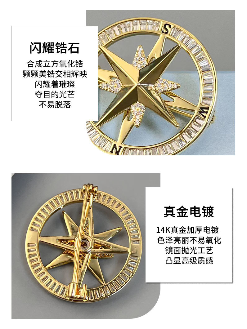 时来运转旋转罗盘胸针男女微镶高级感指南针胸花时尚轻奢新款别针 投诉