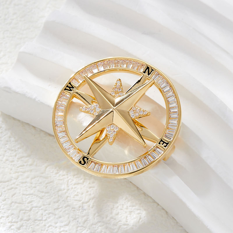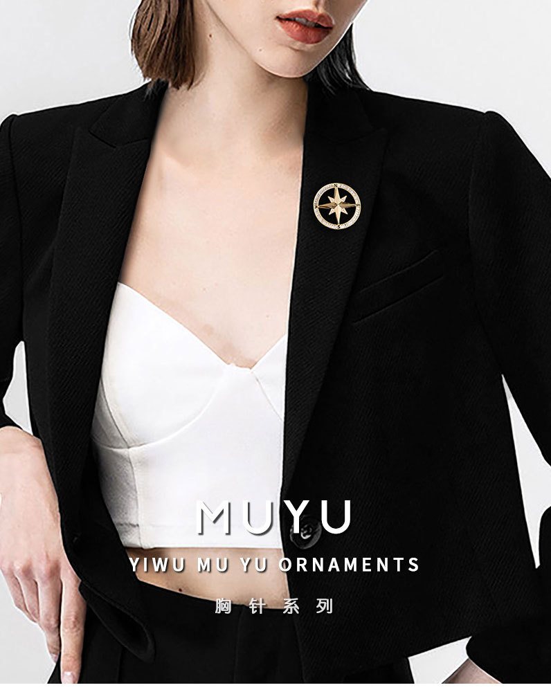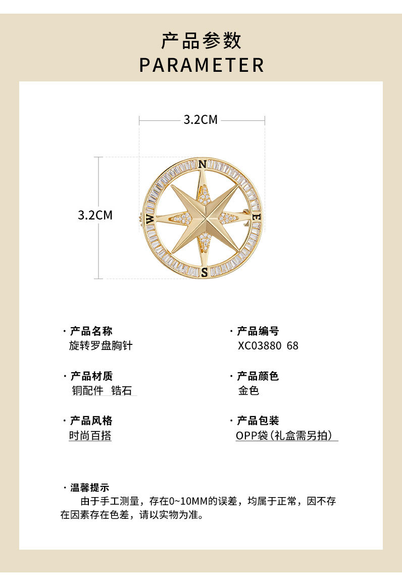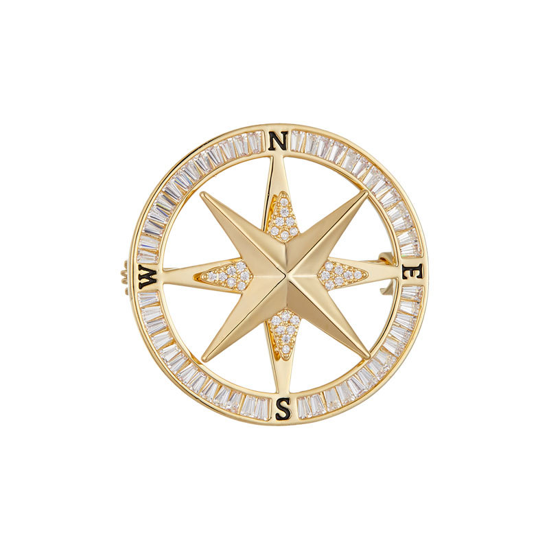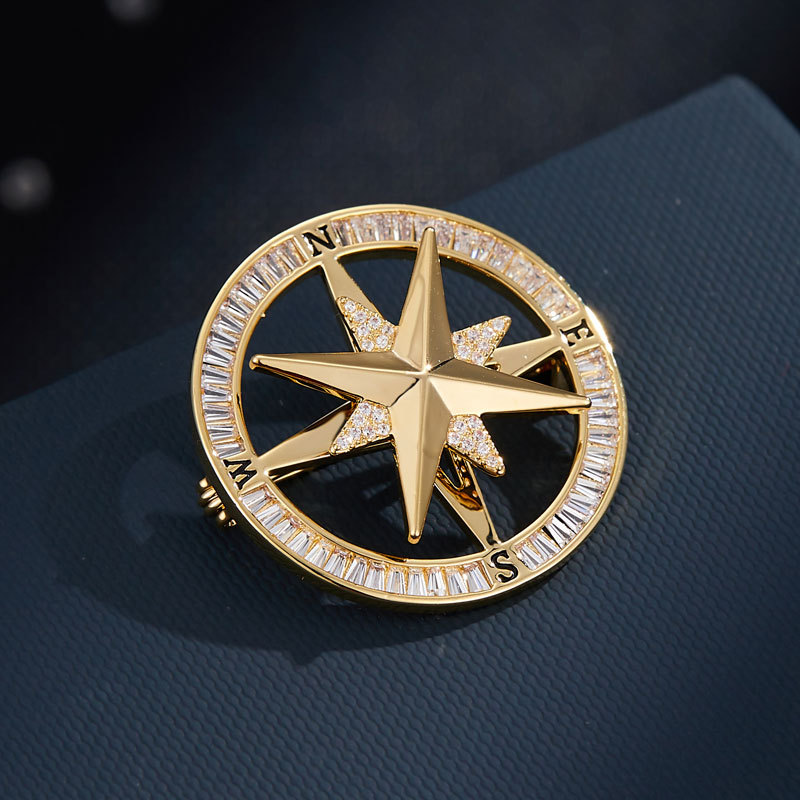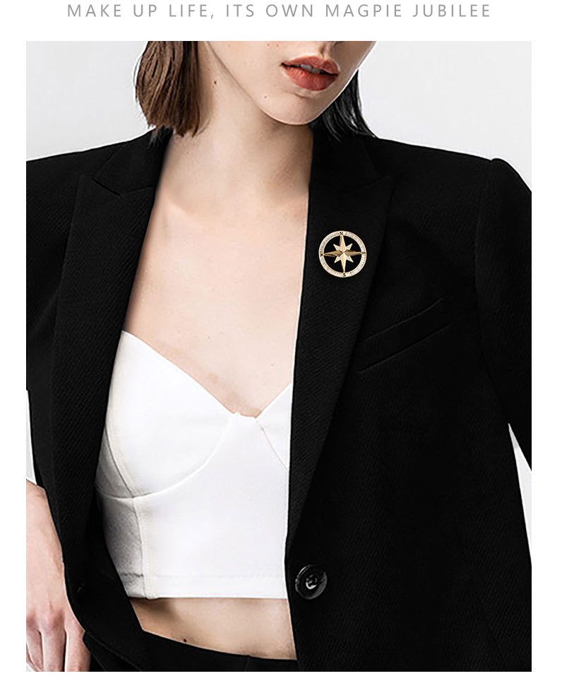 时来运转旋转罗盘胸针男女微镶高级感指南针胸花时尚轻奢新款别针 投诉