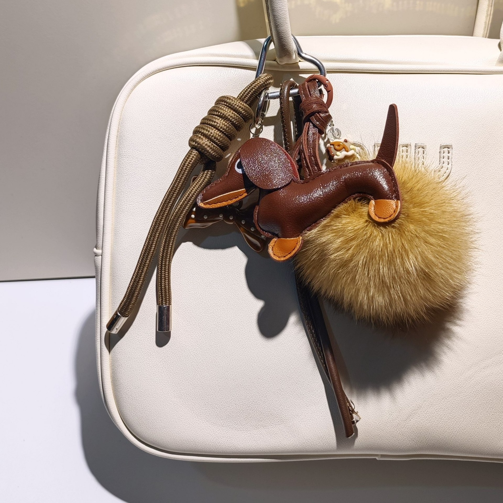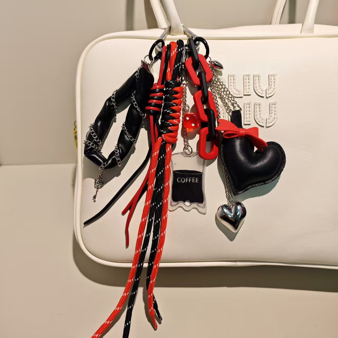 新款miu系包挂复古皮革鱼叉骨挂饰木牌星星编织绳爱心包包挂件