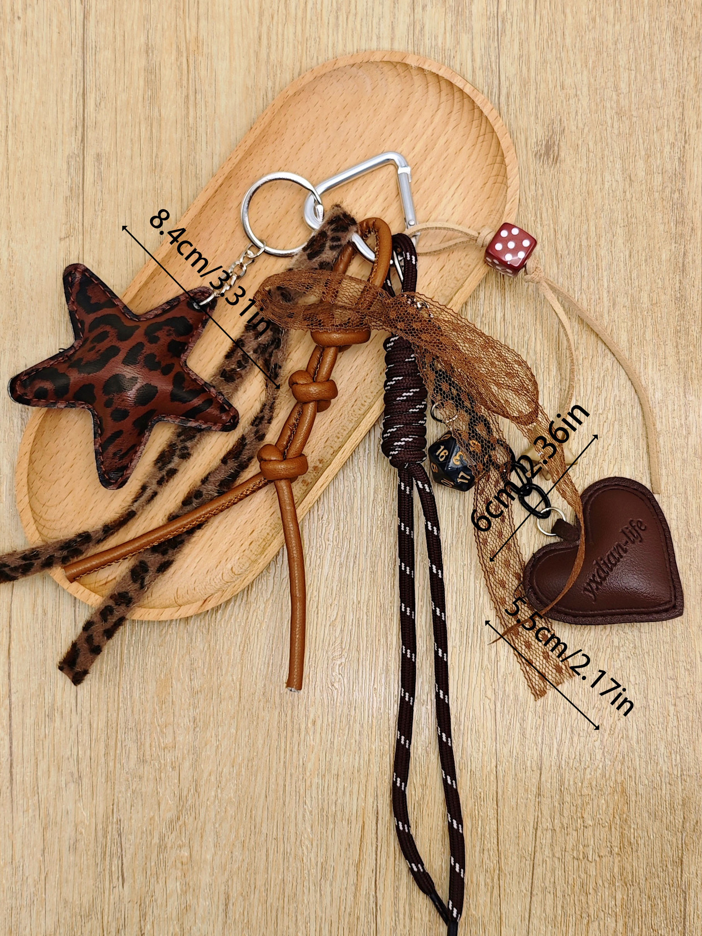 新款miu系包挂复古皮革鱼叉骨挂饰木牌星星编织绳爱心包包挂件 English | 投诉
