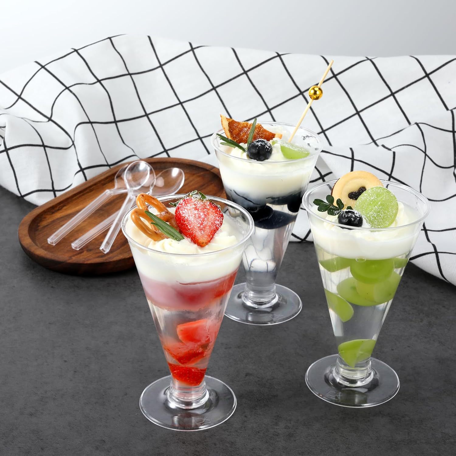 跨境工厂一次性香槟杯透明布丁杯塑料杯子高脚红酒杯慕斯杯甜品杯