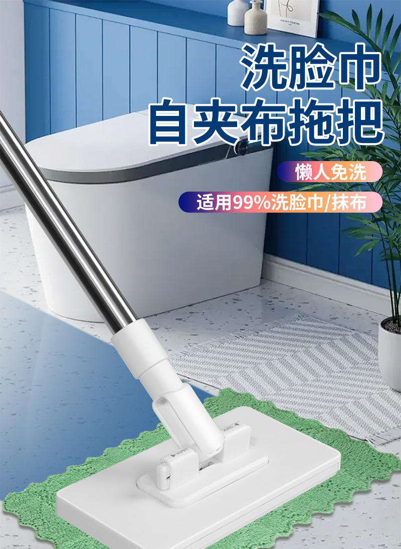 家用洗脸巾拖把家用自夹布免手洗懒人擦地拖布干湿两用夹布拖把