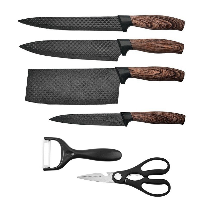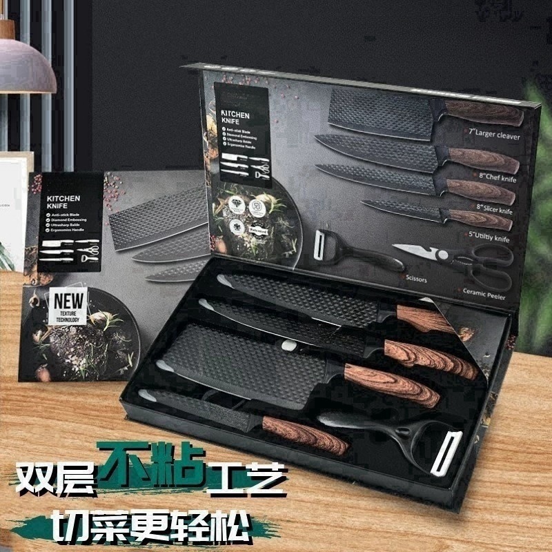 跨境新款六星纹披覆六星纹六件套厨房不锈钢用具刀具套装礼品彩盒