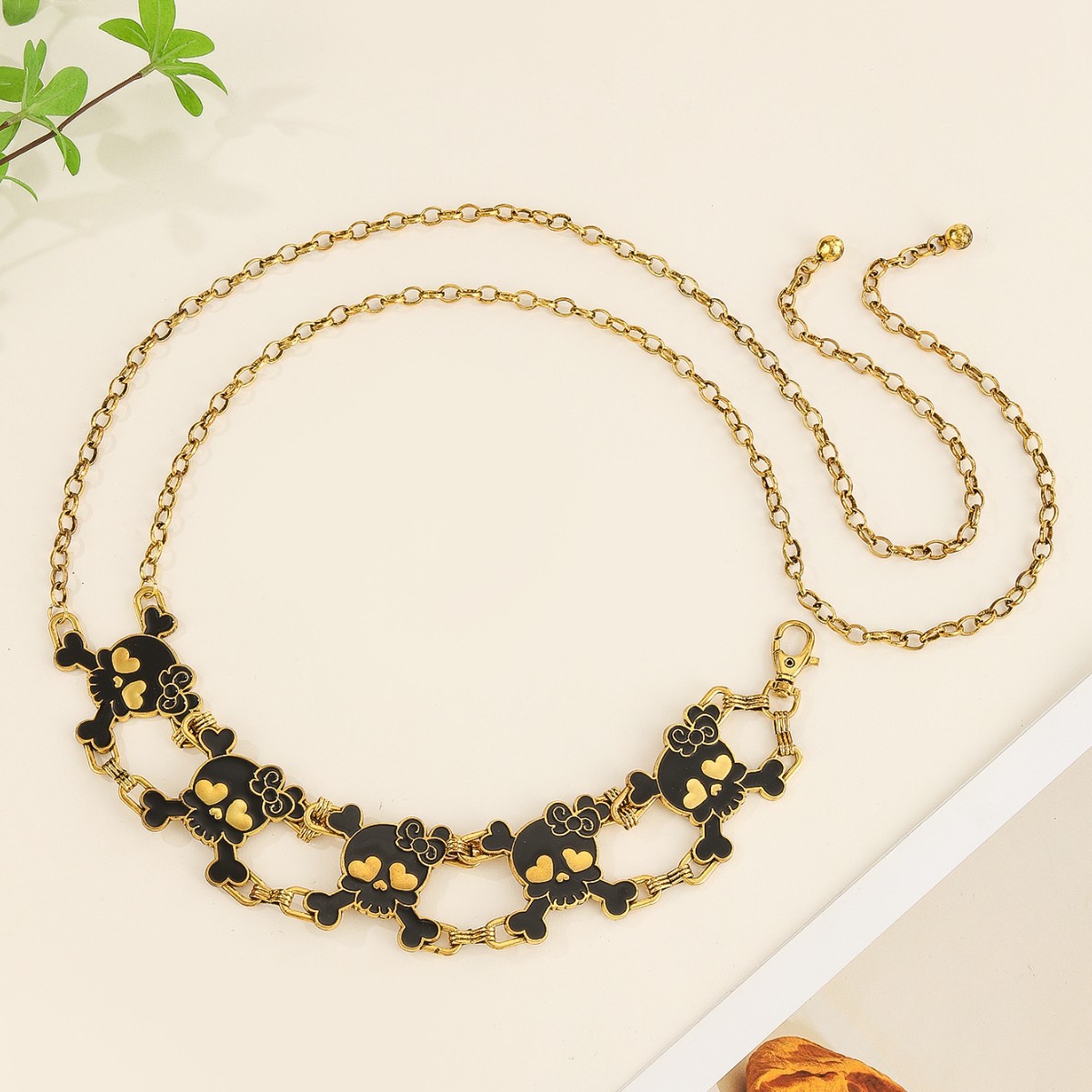 金色花边骷髅头可穿腰链精致金线刺绣水溶花朵DIY手工配饰刺绣