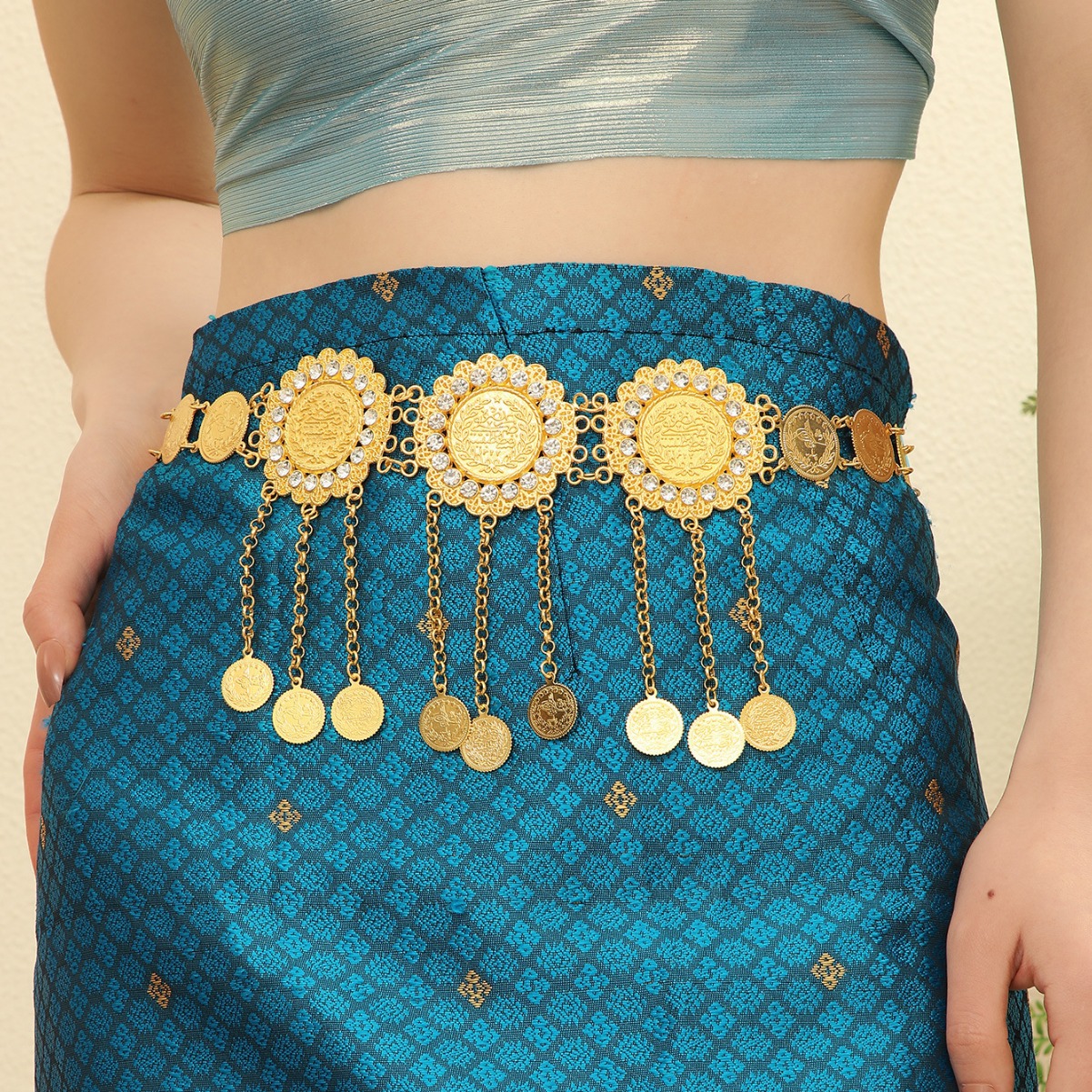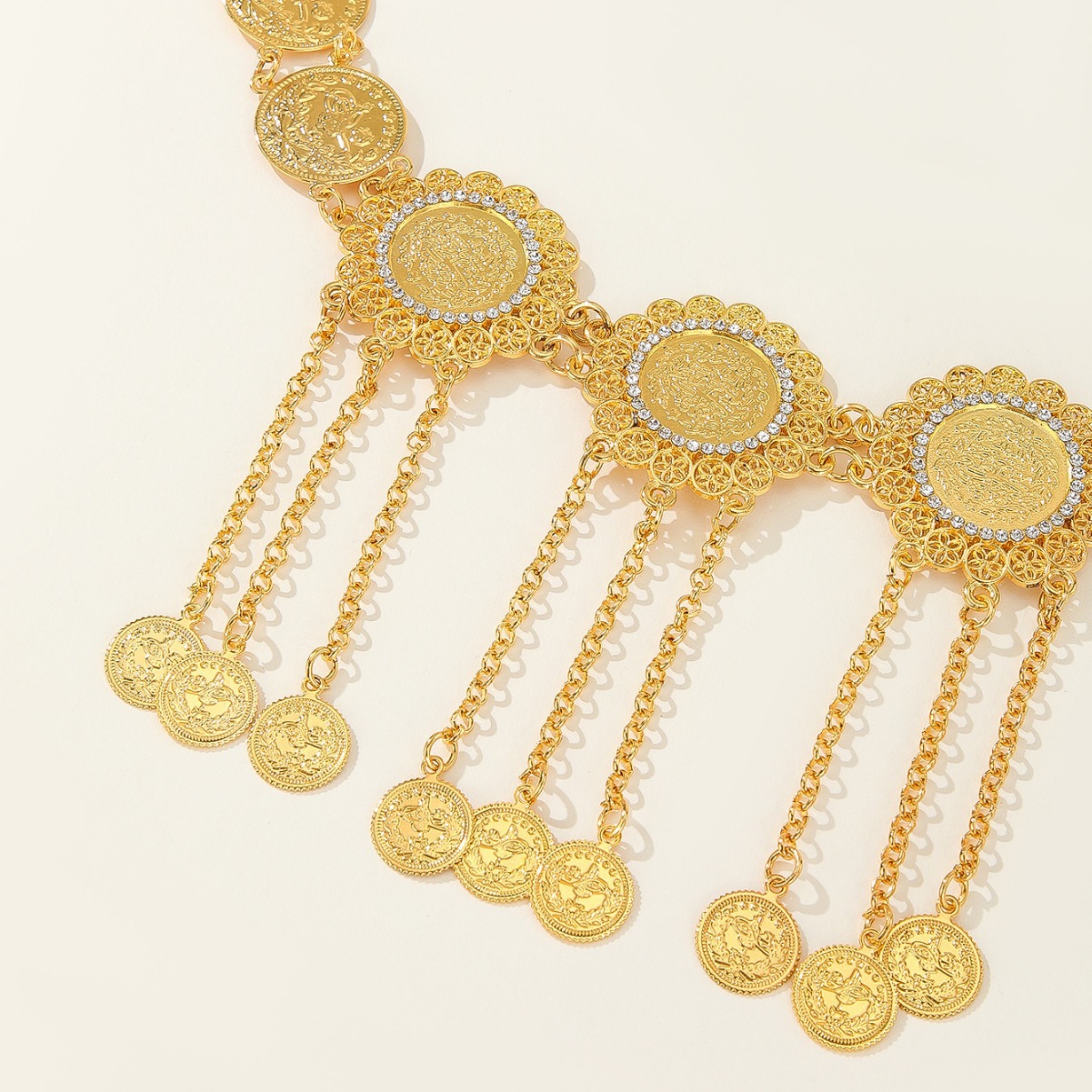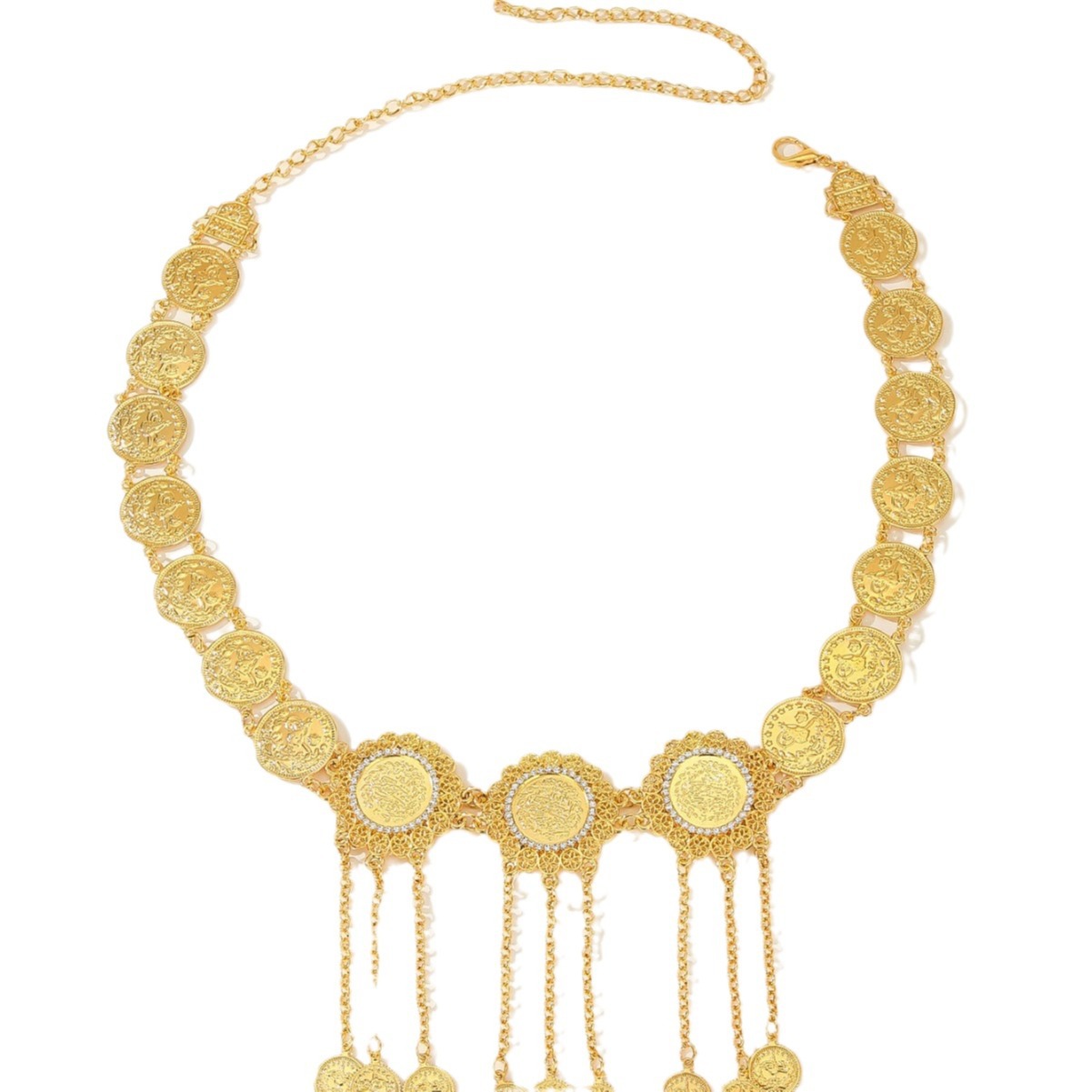跨境欧美金属腰链镶钻雕花流苏腰带连衣裙短裙服装配饰腰链批发 English | 投诉