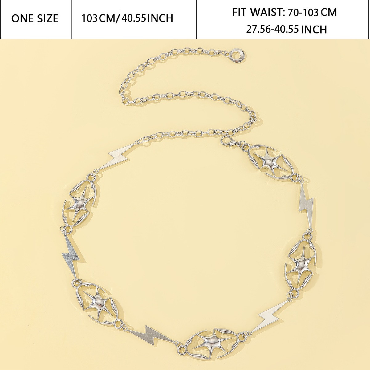 跨境热卖个性金属腰链 六芒星闪电腰饰 服装搭配金属腰封厂家批发 English | 投诉