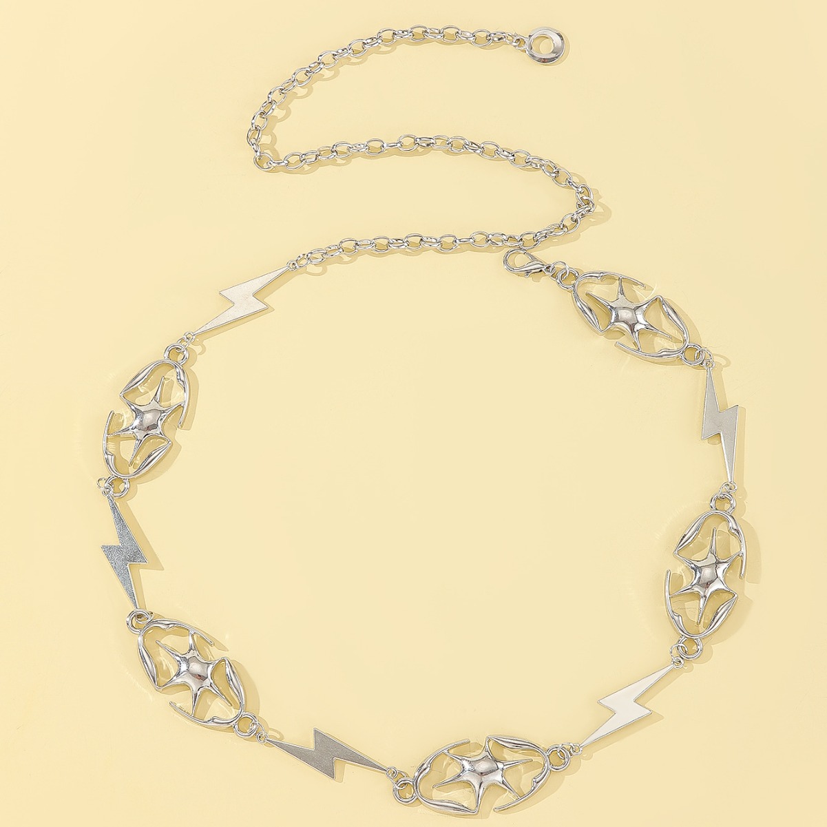 跨境热卖个性金属腰链 六芒星闪电腰饰 服装搭配金属腰封厂家批发
