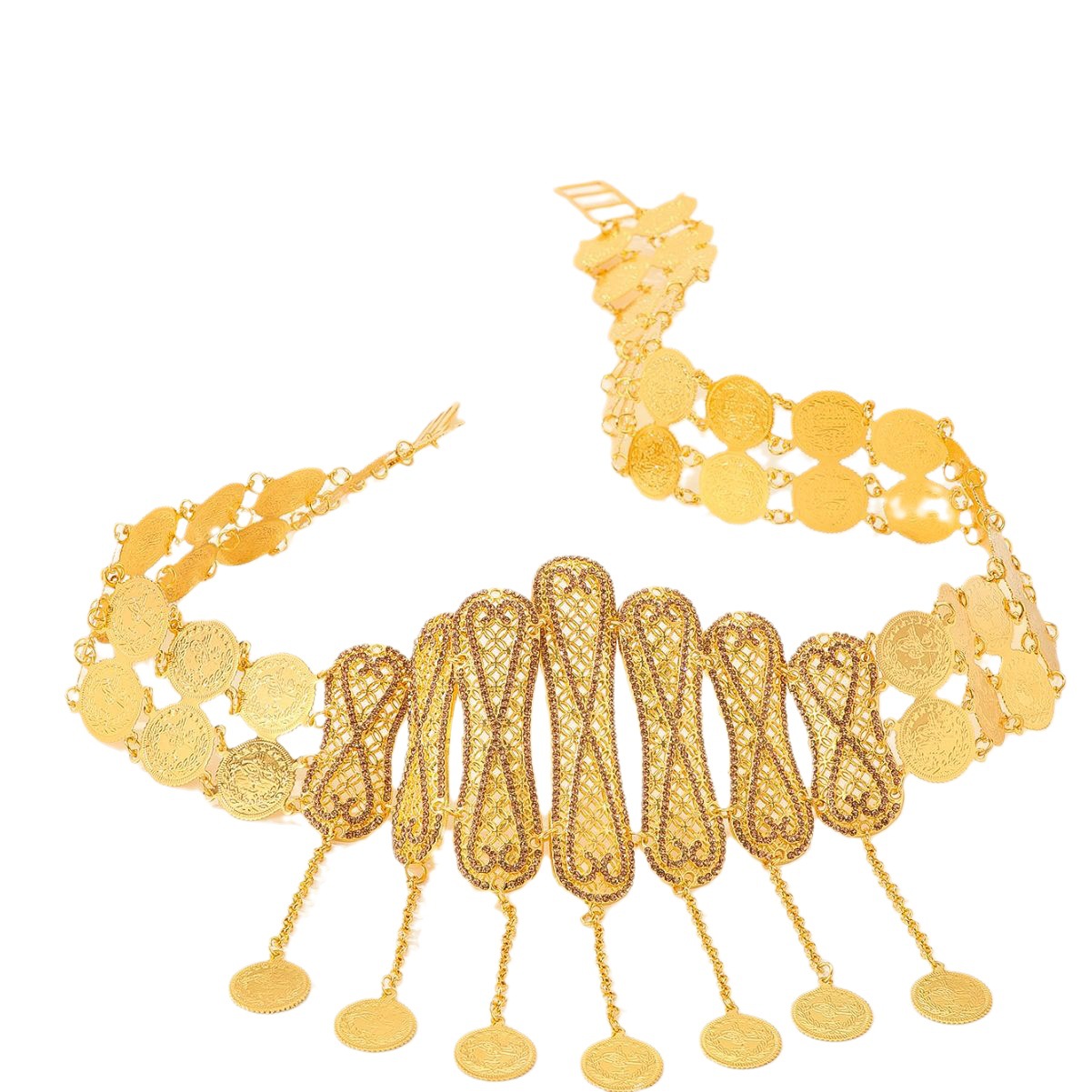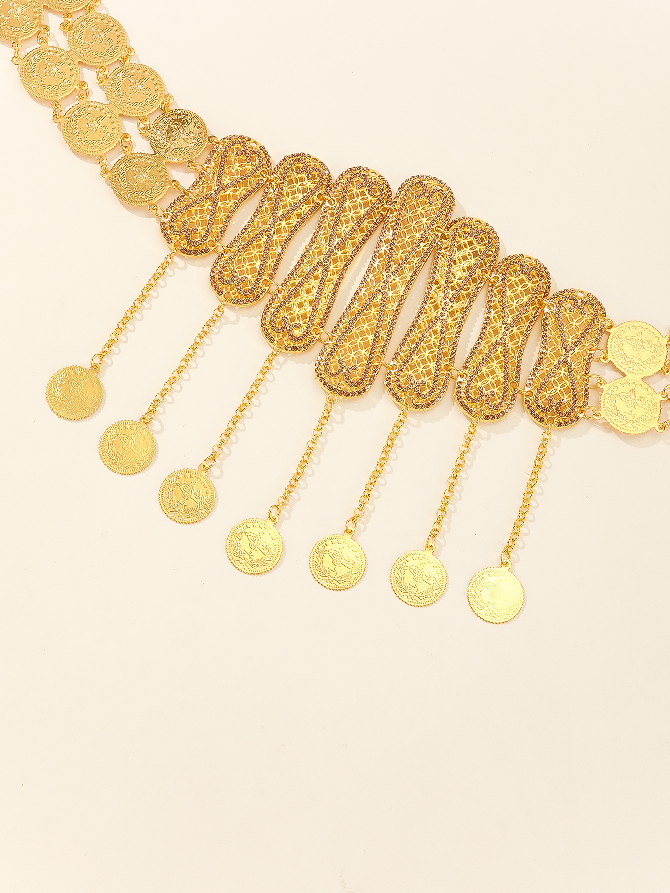 厂家直供配饰金色金属腰带钱币挂坠几何流苏腰饰印度舞表演配饰 English | 投诉