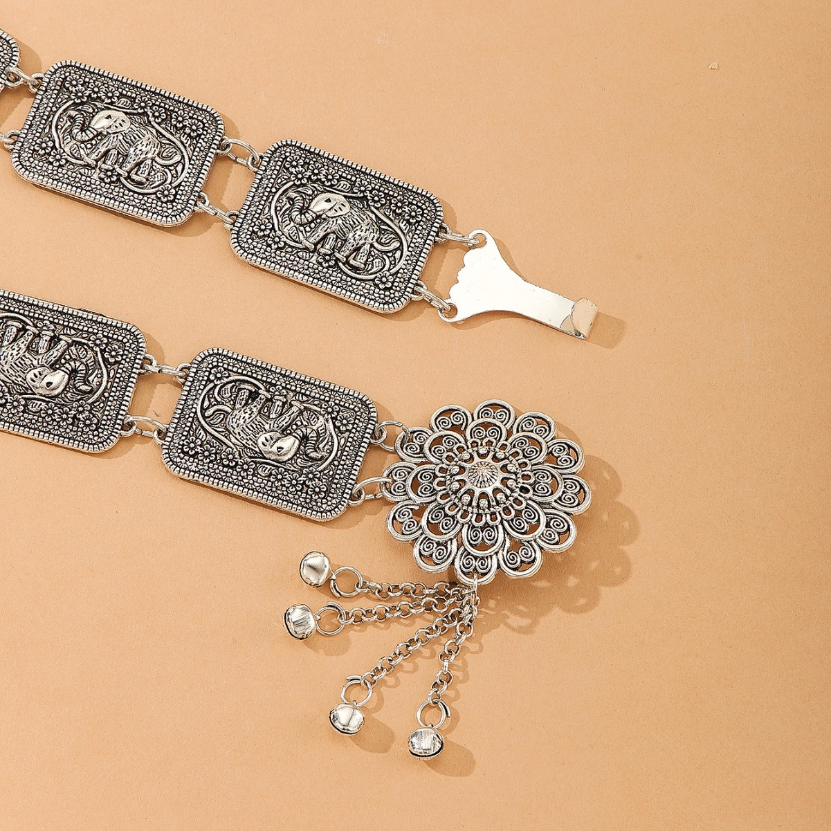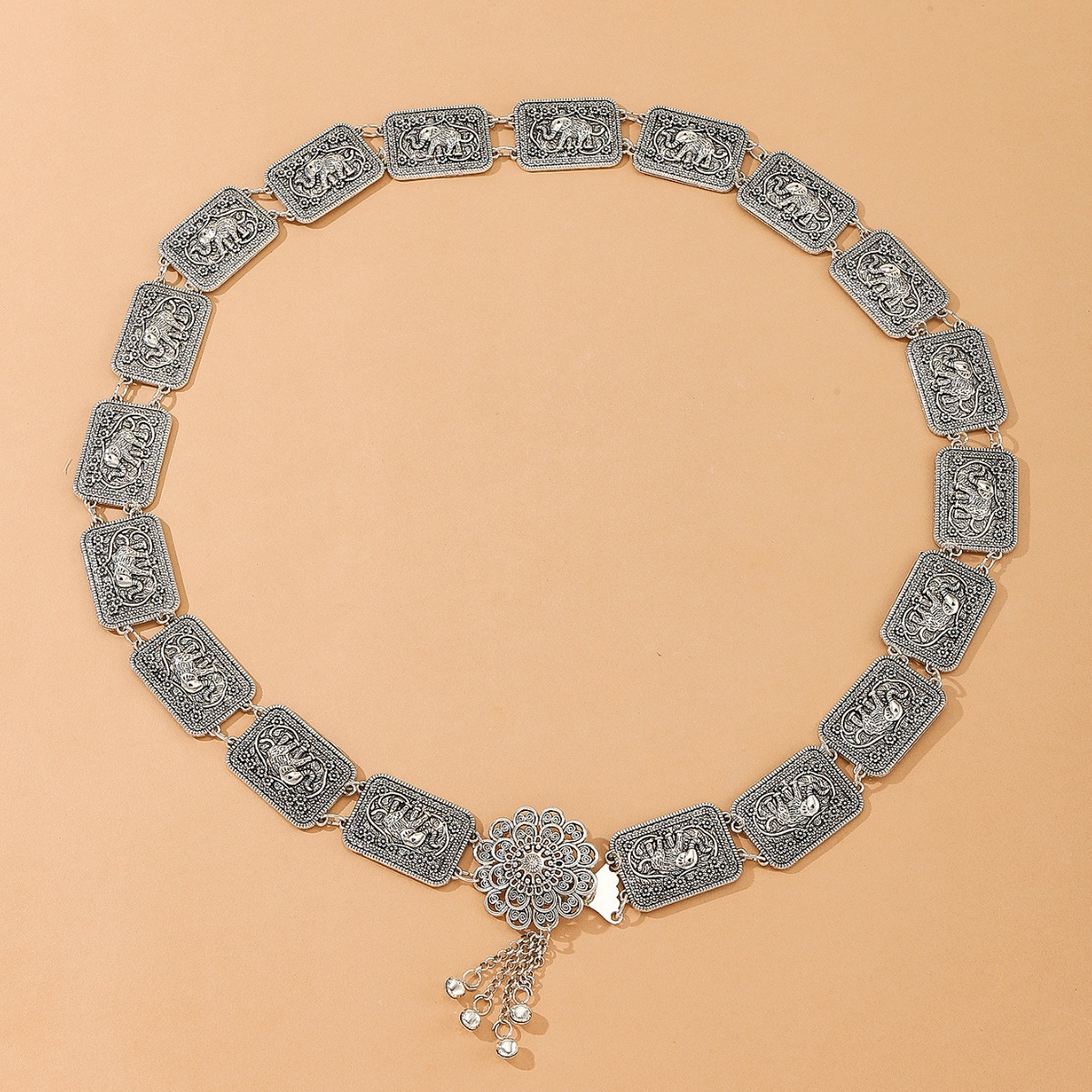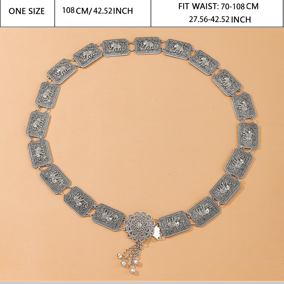 民族风金属腰链欧美跨境风腰饰方牌拼接大象花纹身体腰链傣族批发 English | 投诉