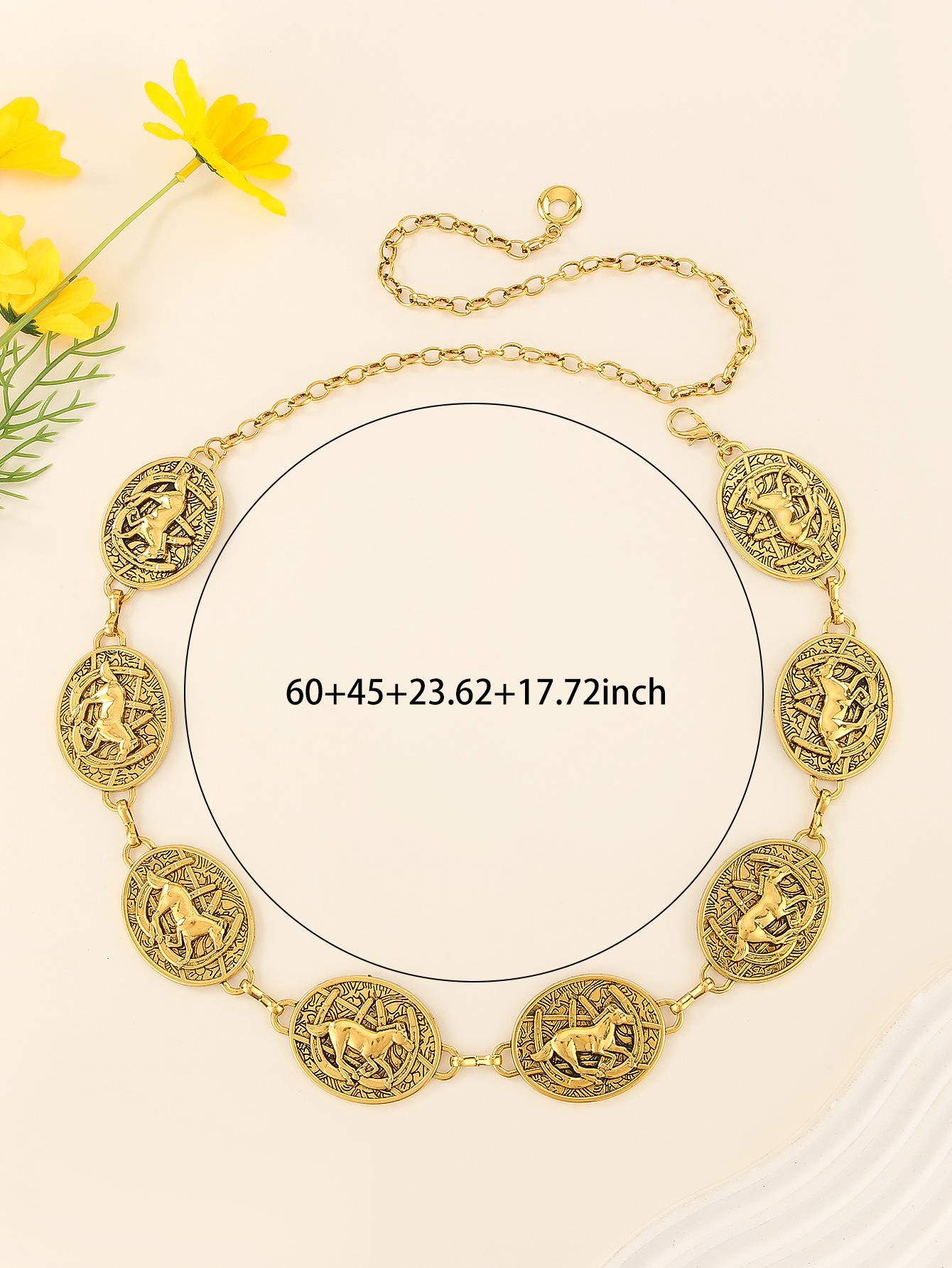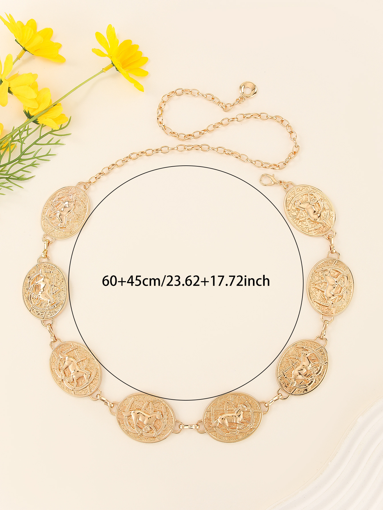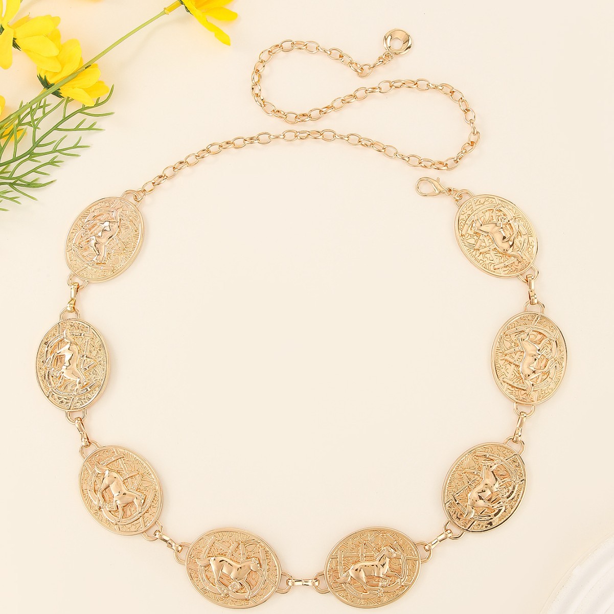 欧美腰链时尚百搭配饰品腰链腰链带链条女细金属马图形腰链装饰 English | 投诉
