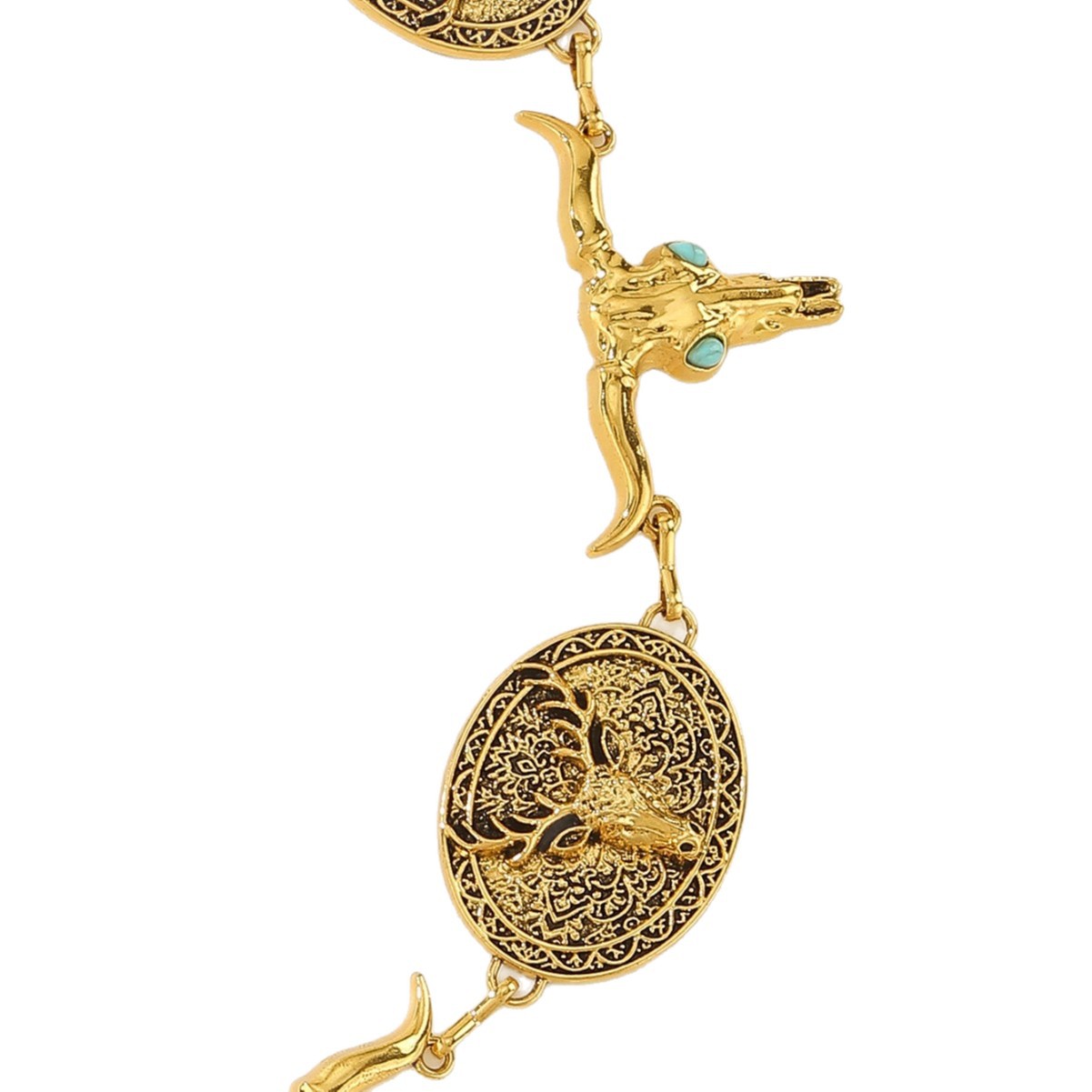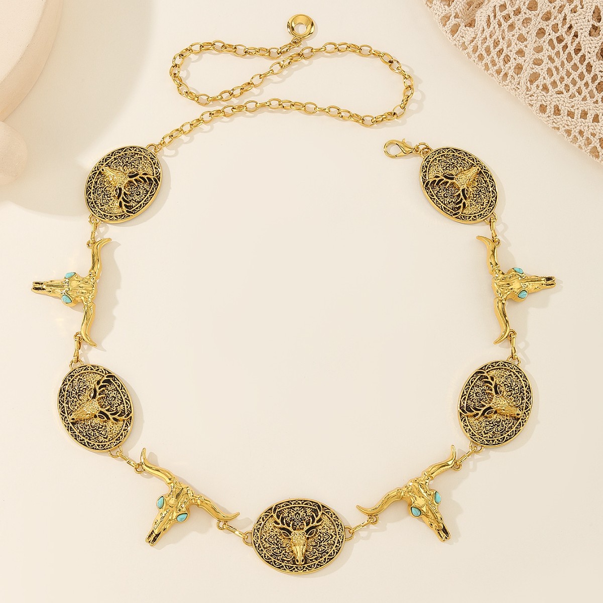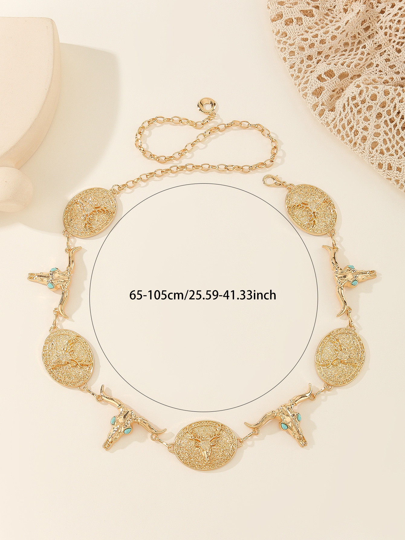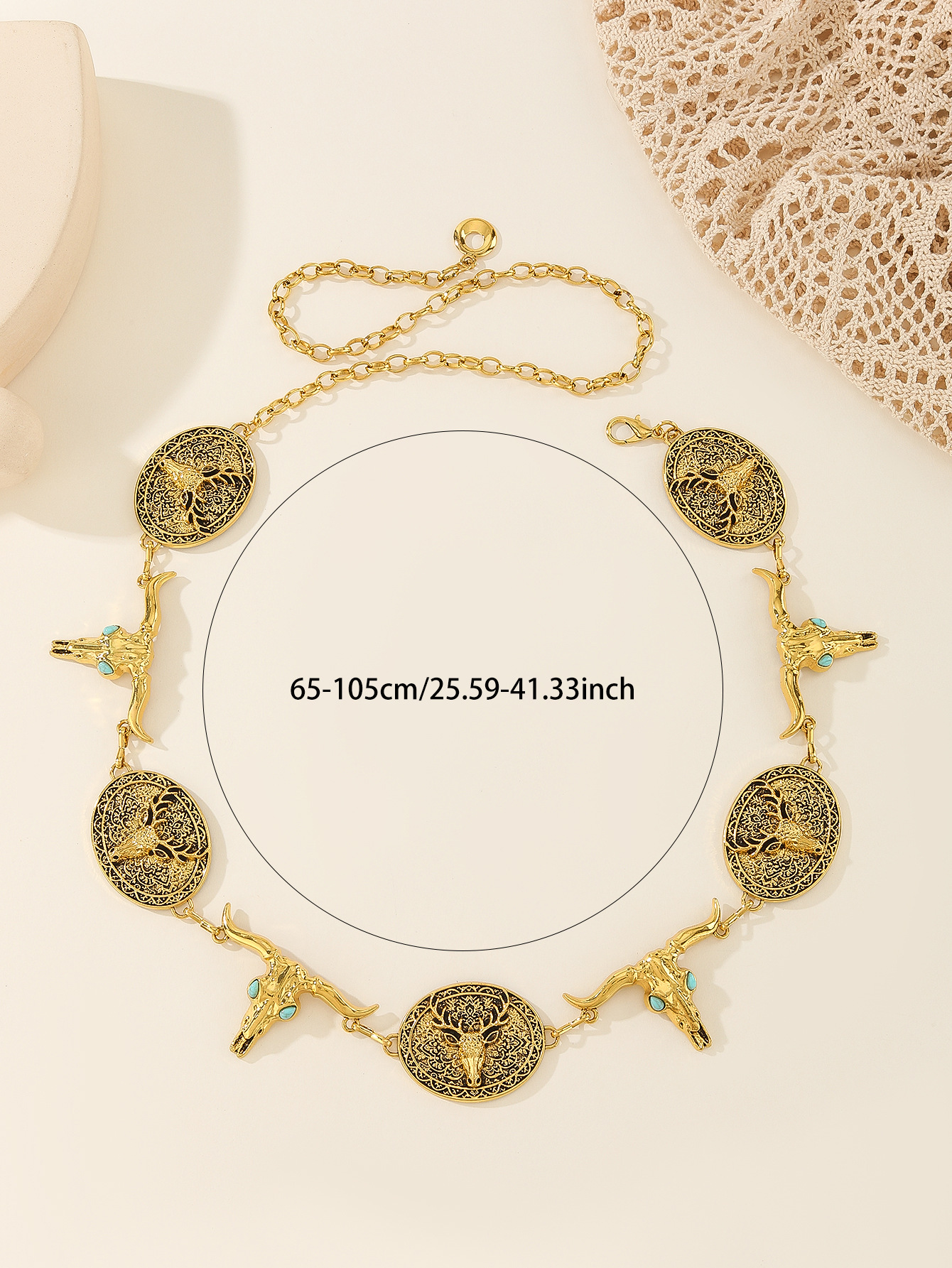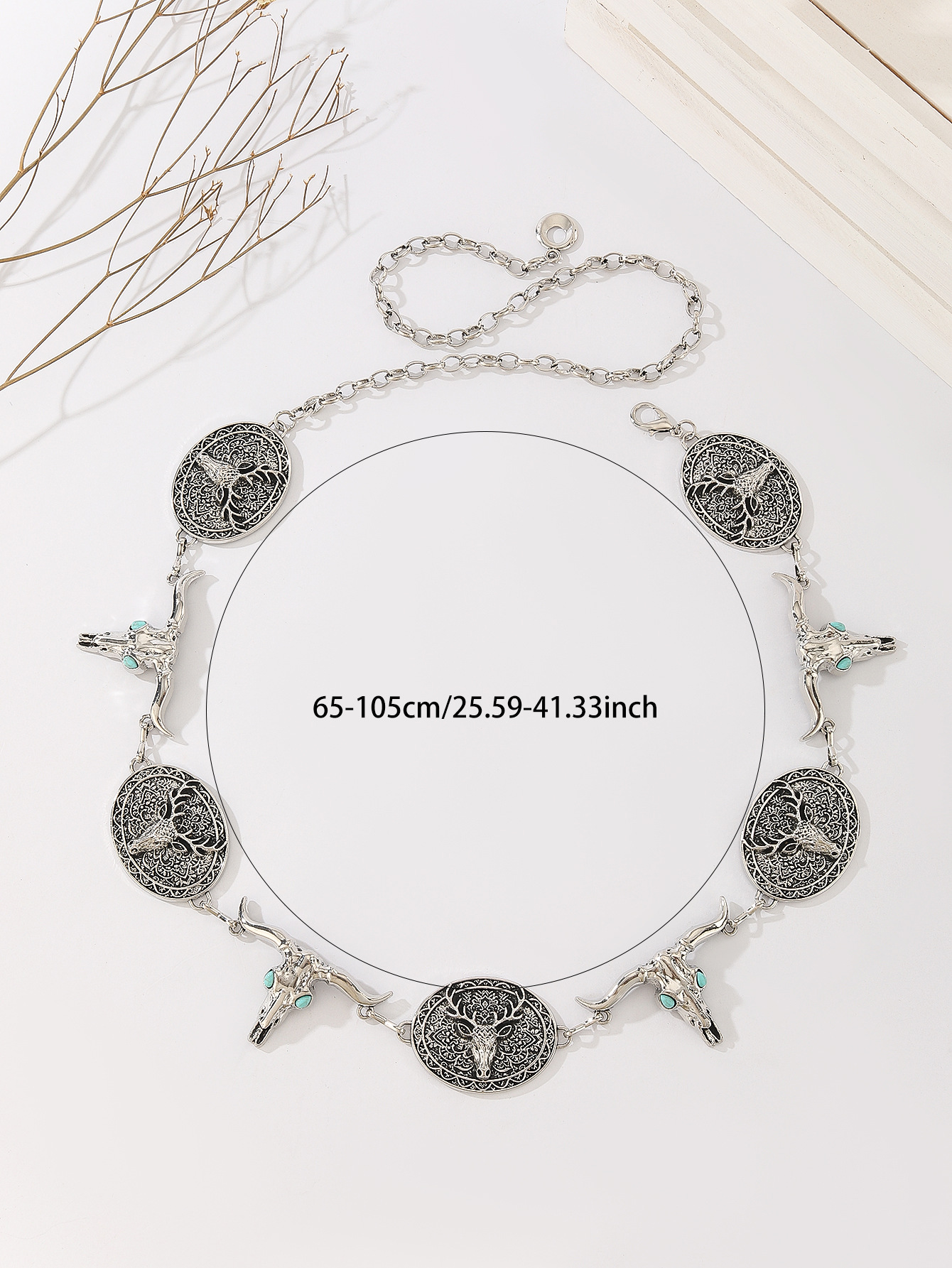 时尚百搭女金属腰链女银色雕花镶嵌松花石腰带民族风压花复古链条 English | 投诉