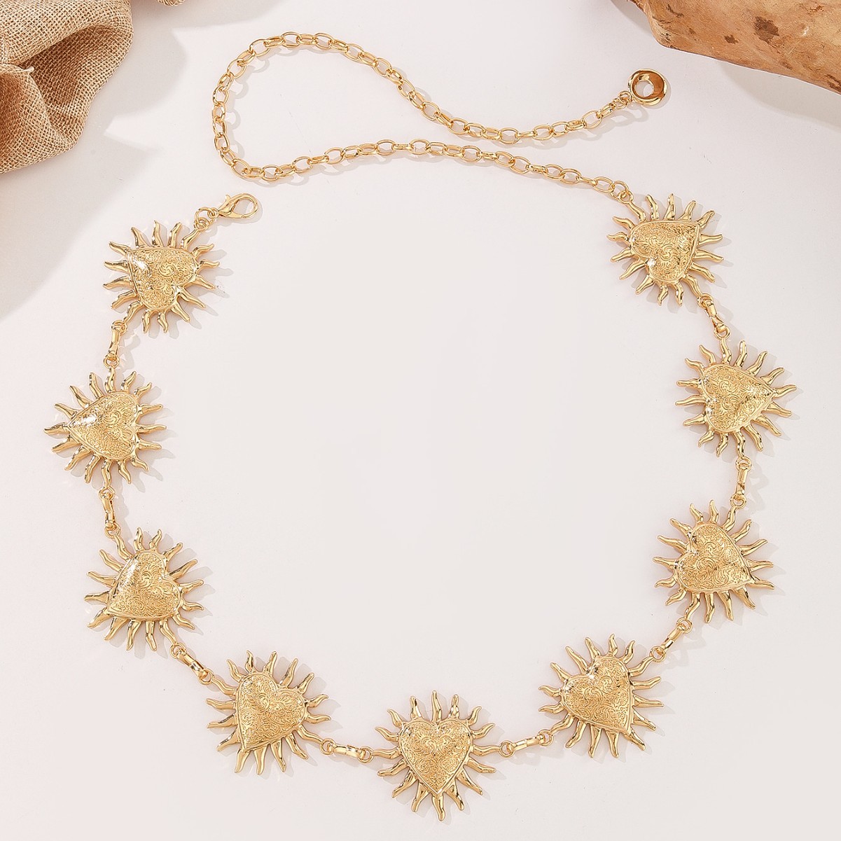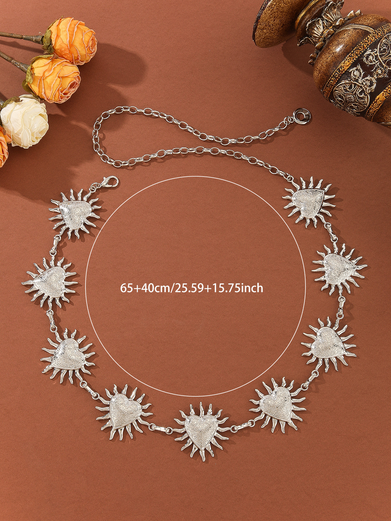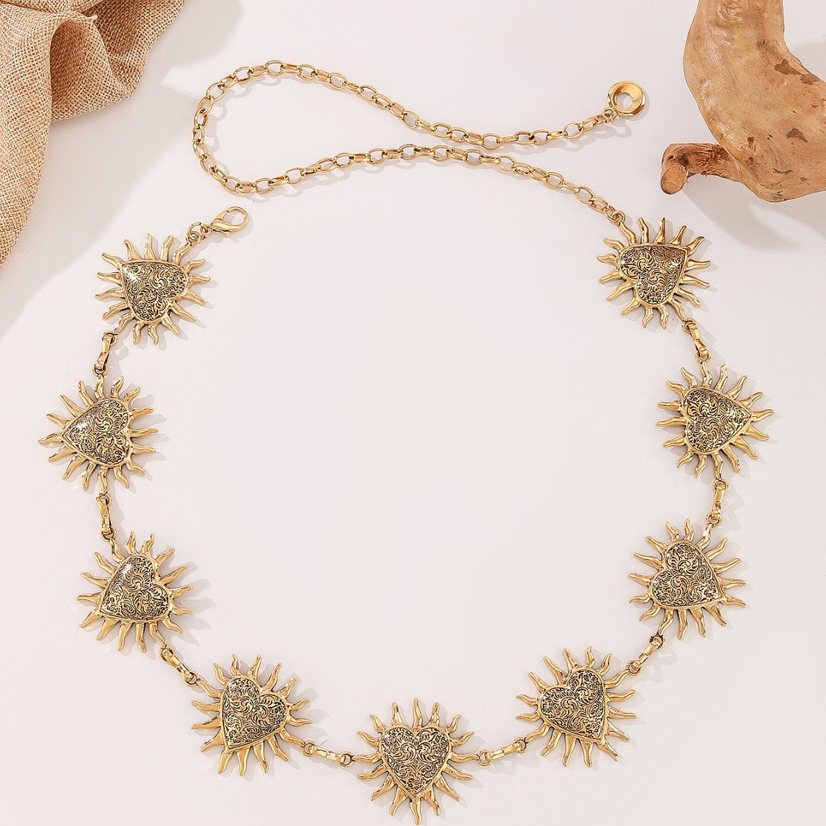 跨境金属复古爱心烈焰花纹腰链优雅装饰身体链连衣裙腰带链条女 English | 投诉