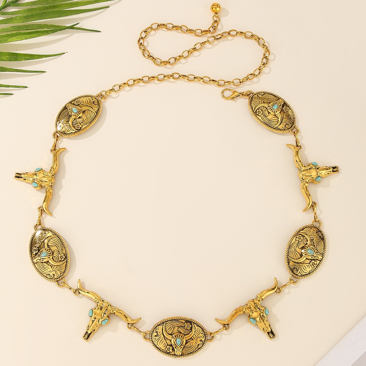 欧美跨境新款腰链 创意时尚复古高级感雕花牛头腰链身体链腰饰