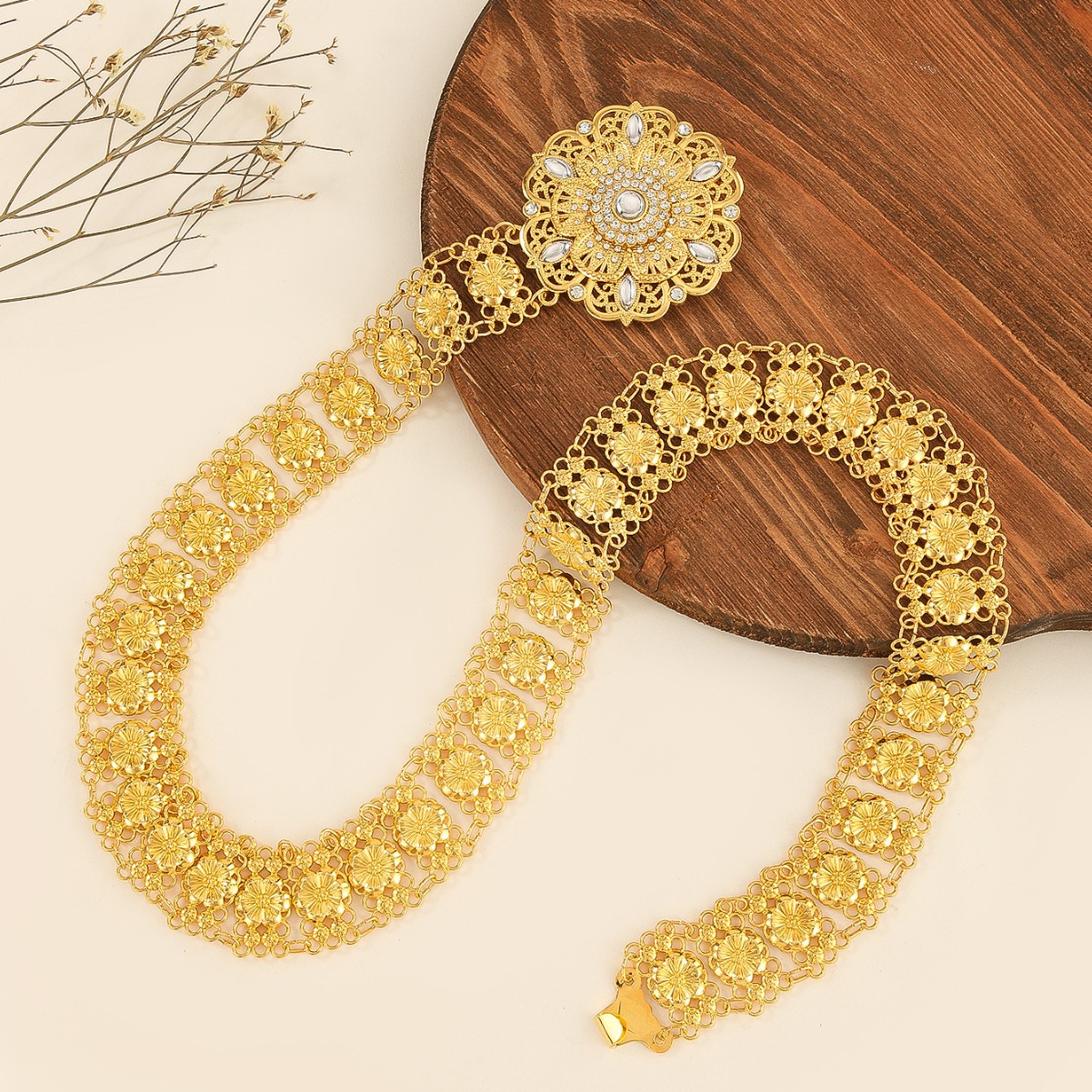 夏季亮金色镂空花纹宽腰链夸张合金流苏身体链少数民族旅拍腰饰女 English | 投诉