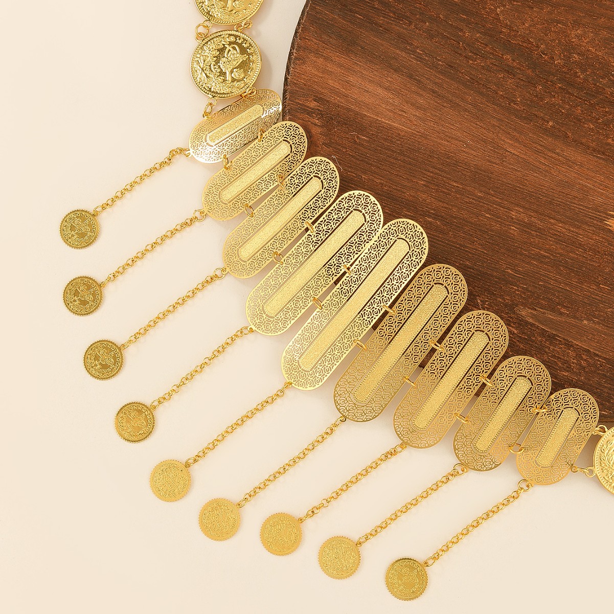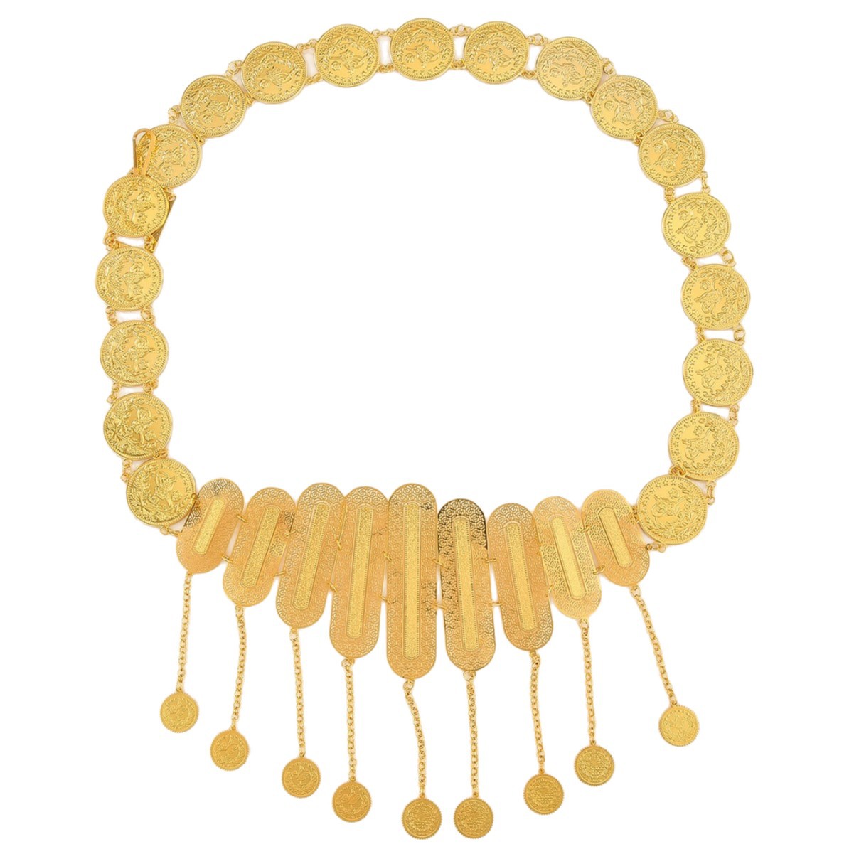 新款复古镂空合金腰链民族风钱币腰饰百搭连衣裙收腰配饰异域风 English | 投诉