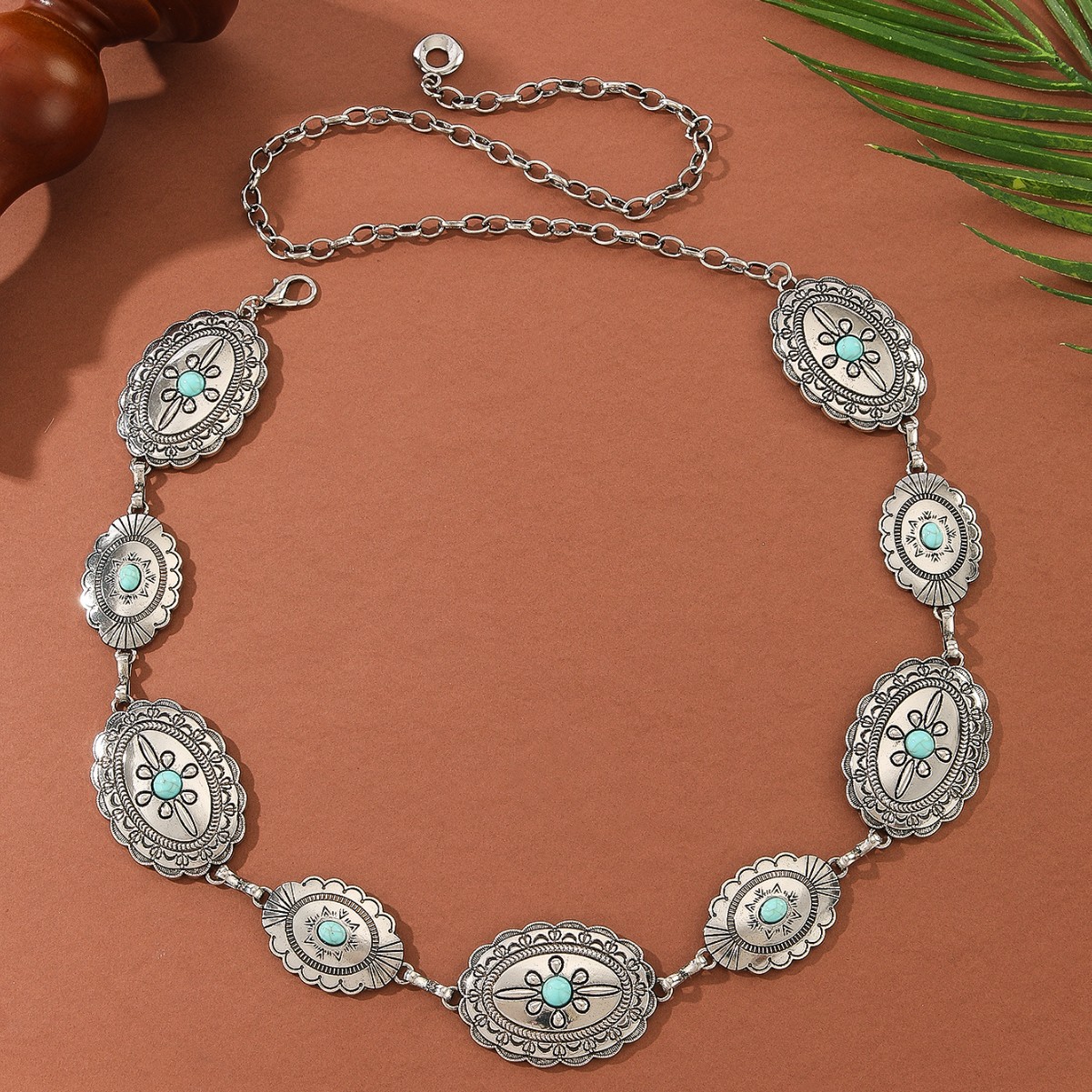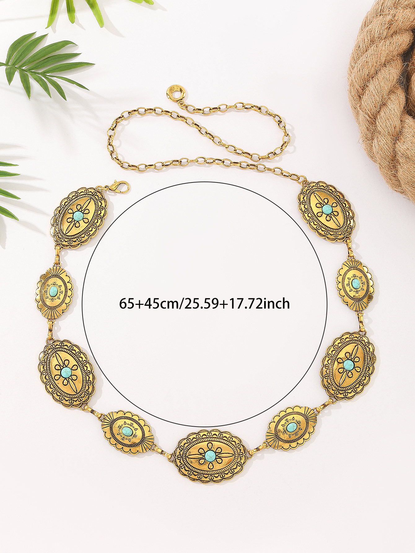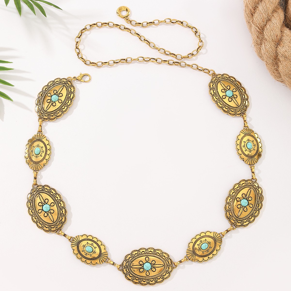 复古民族风腰链女款绿松石镶嵌个性潮流装饰时尚百搭金属链条腰带 English | 投诉