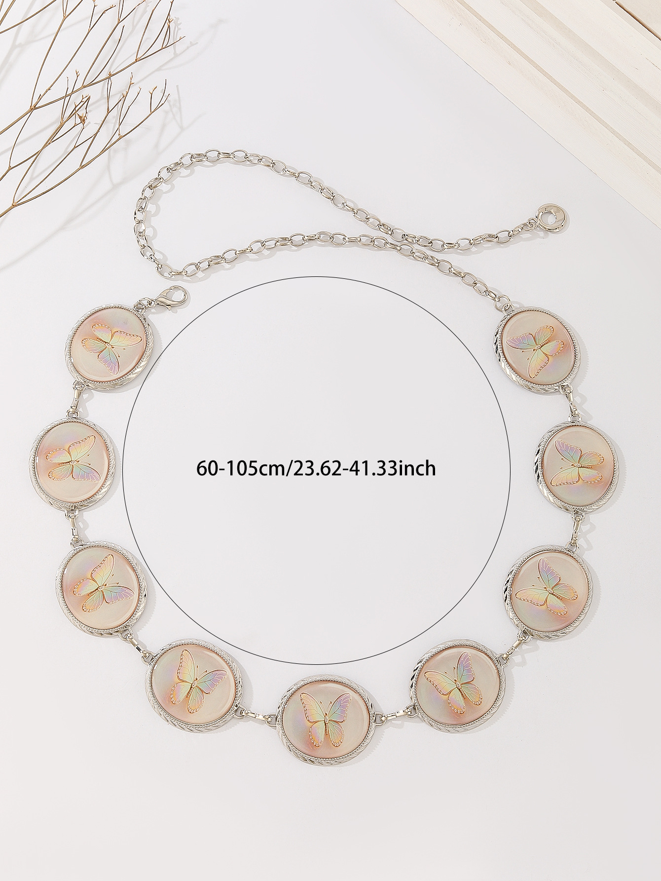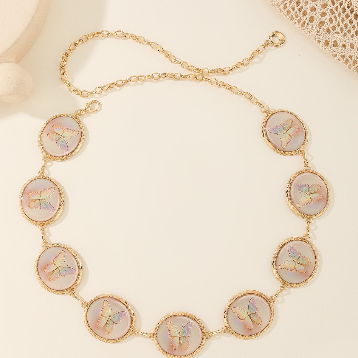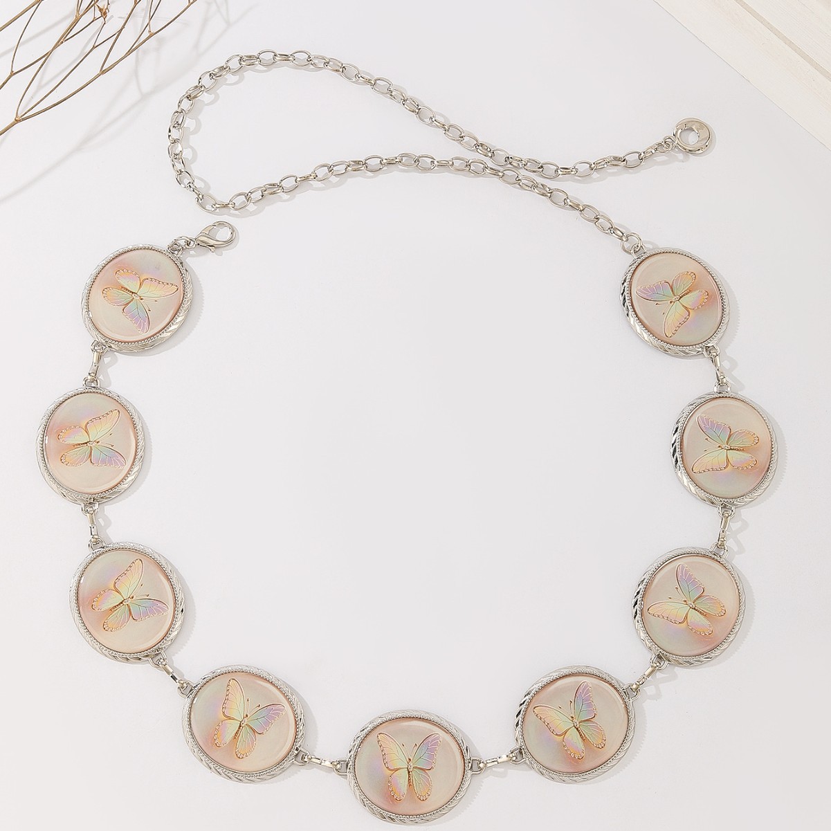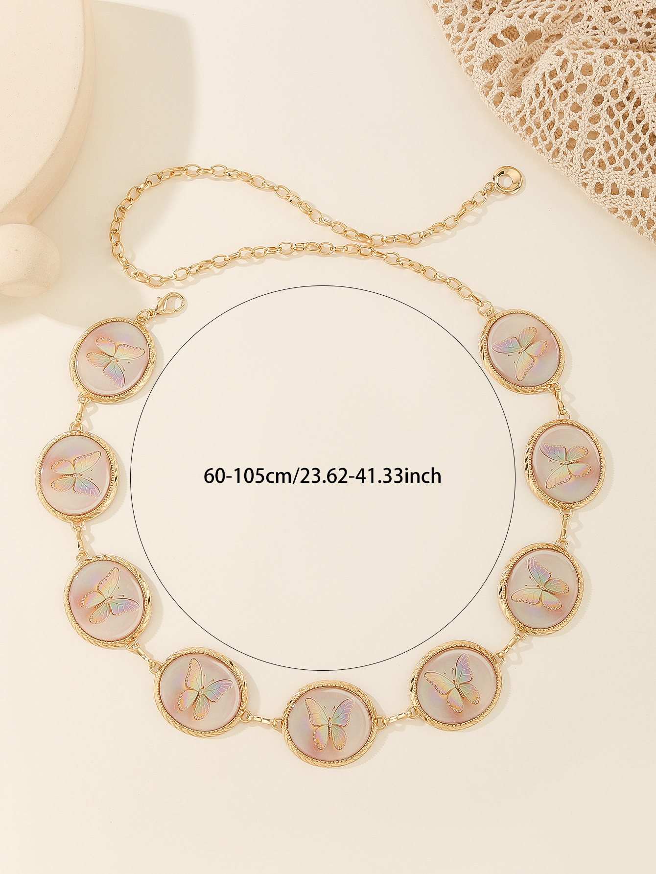 跨境金属腰女链椭圆雕刻蝴蝶复古花纹装饰身体链连衣裙腰带链条 English | 投诉