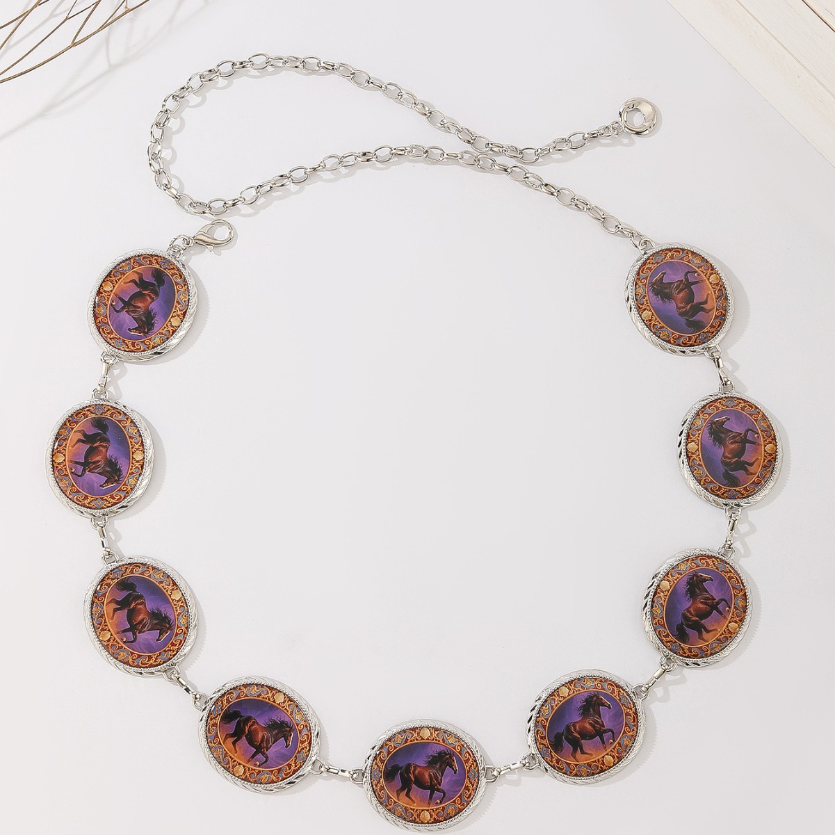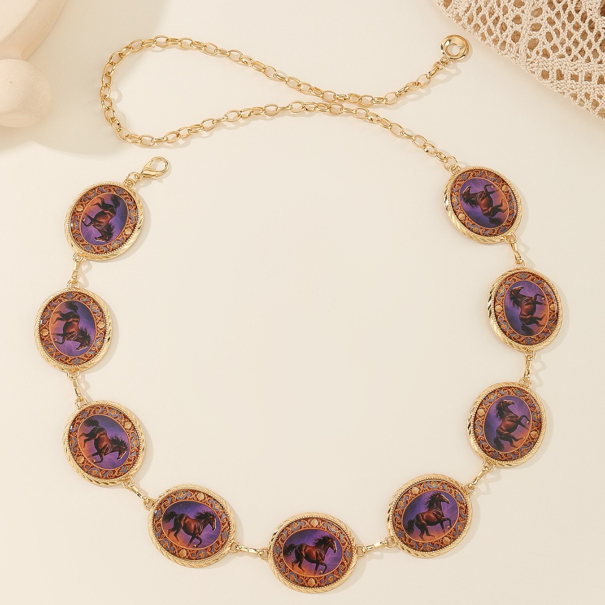 欧美跨境复古晕染色马图案宝石腰链女 气质ins金属链条流苏身体链 English | 投诉