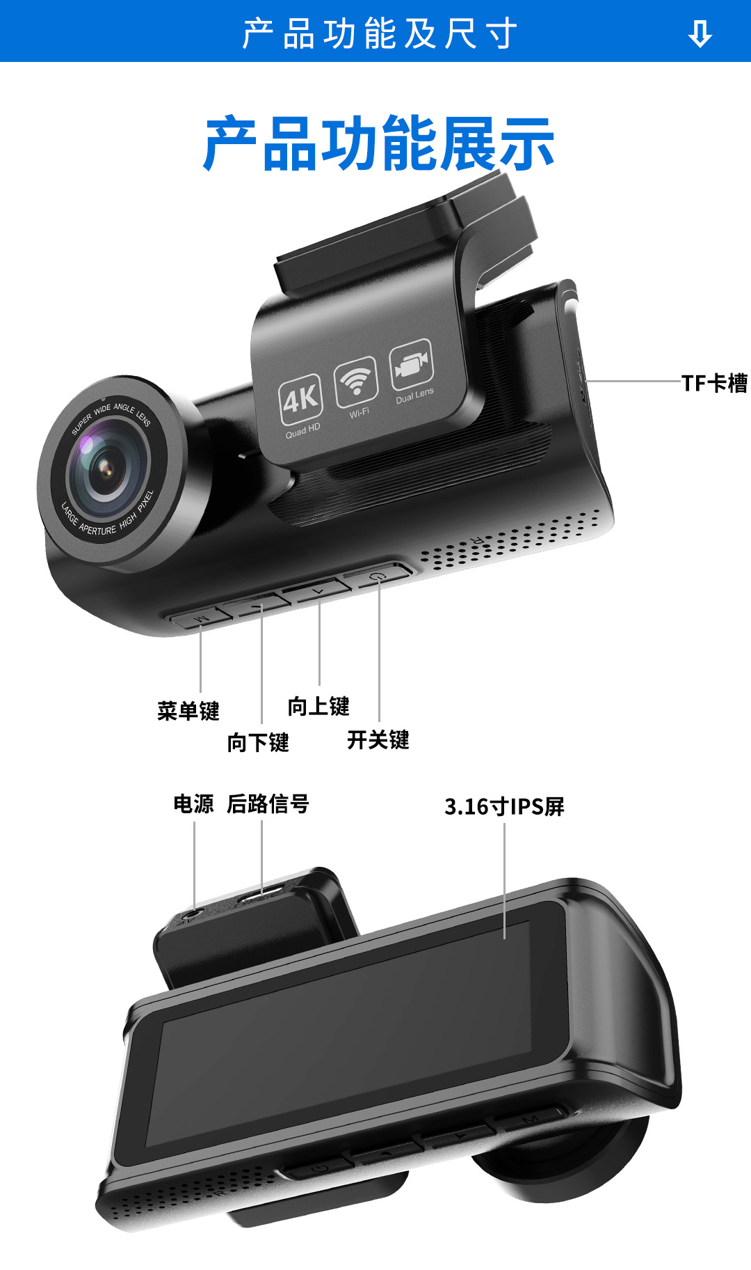 高清360行车记录仪跨境一体手机专用外双摄车内车行车汽车记录仪 English | 投诉