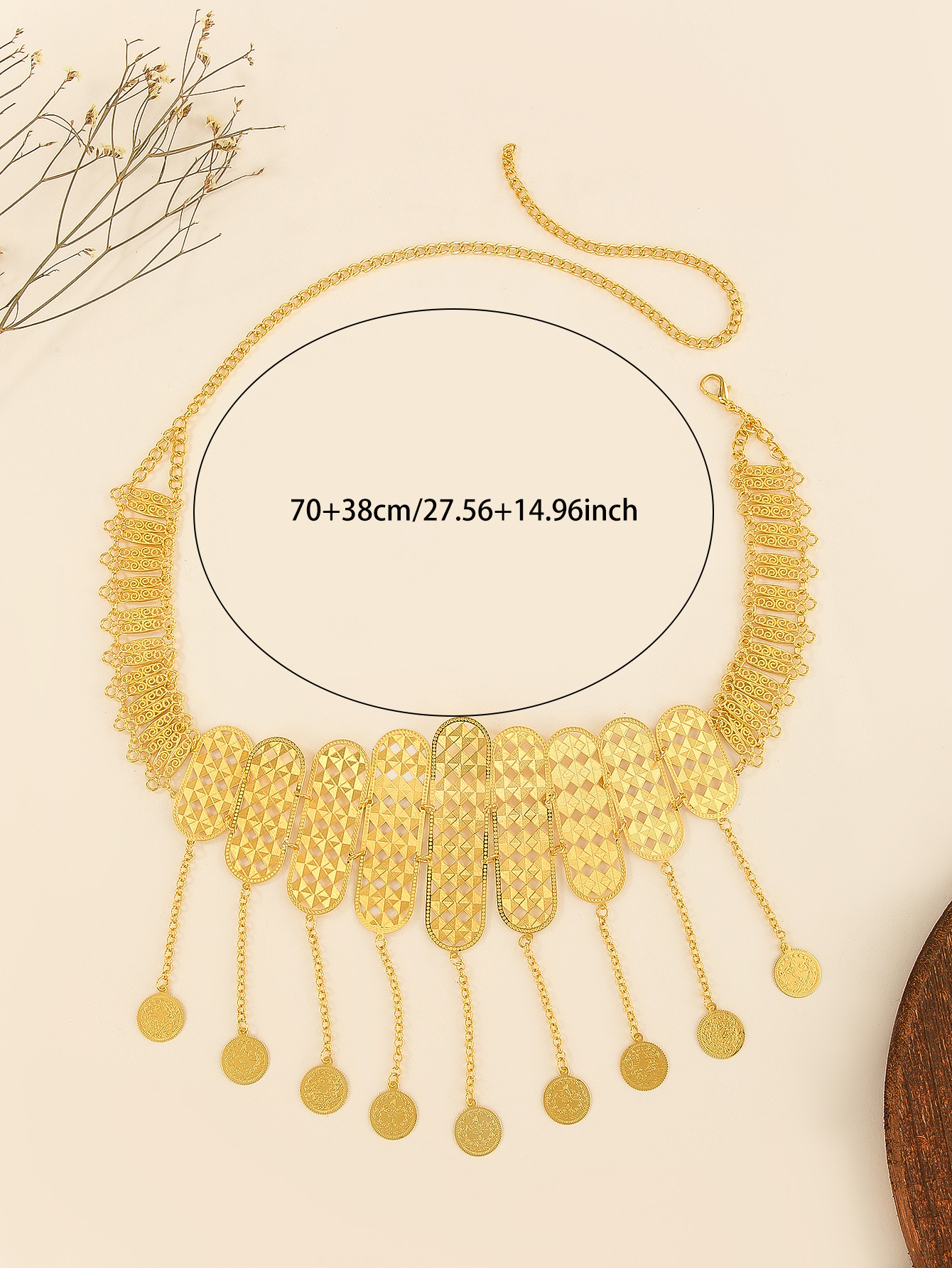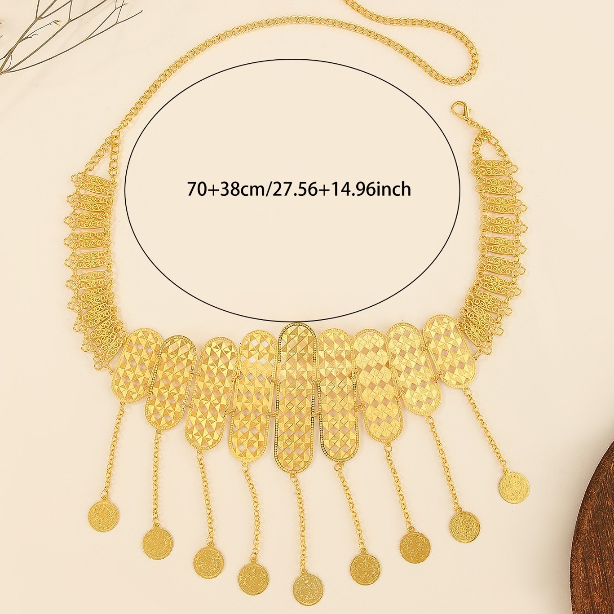 欧美新款腰链舞蹈腰饰批发民族风镂空流苏钱币汉服配饰舞会派对 English | 投诉