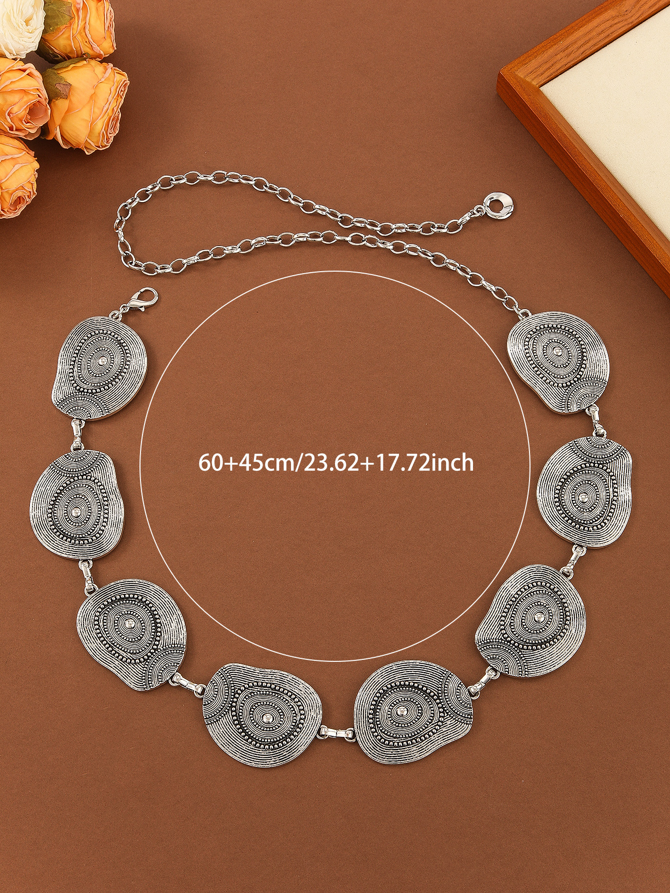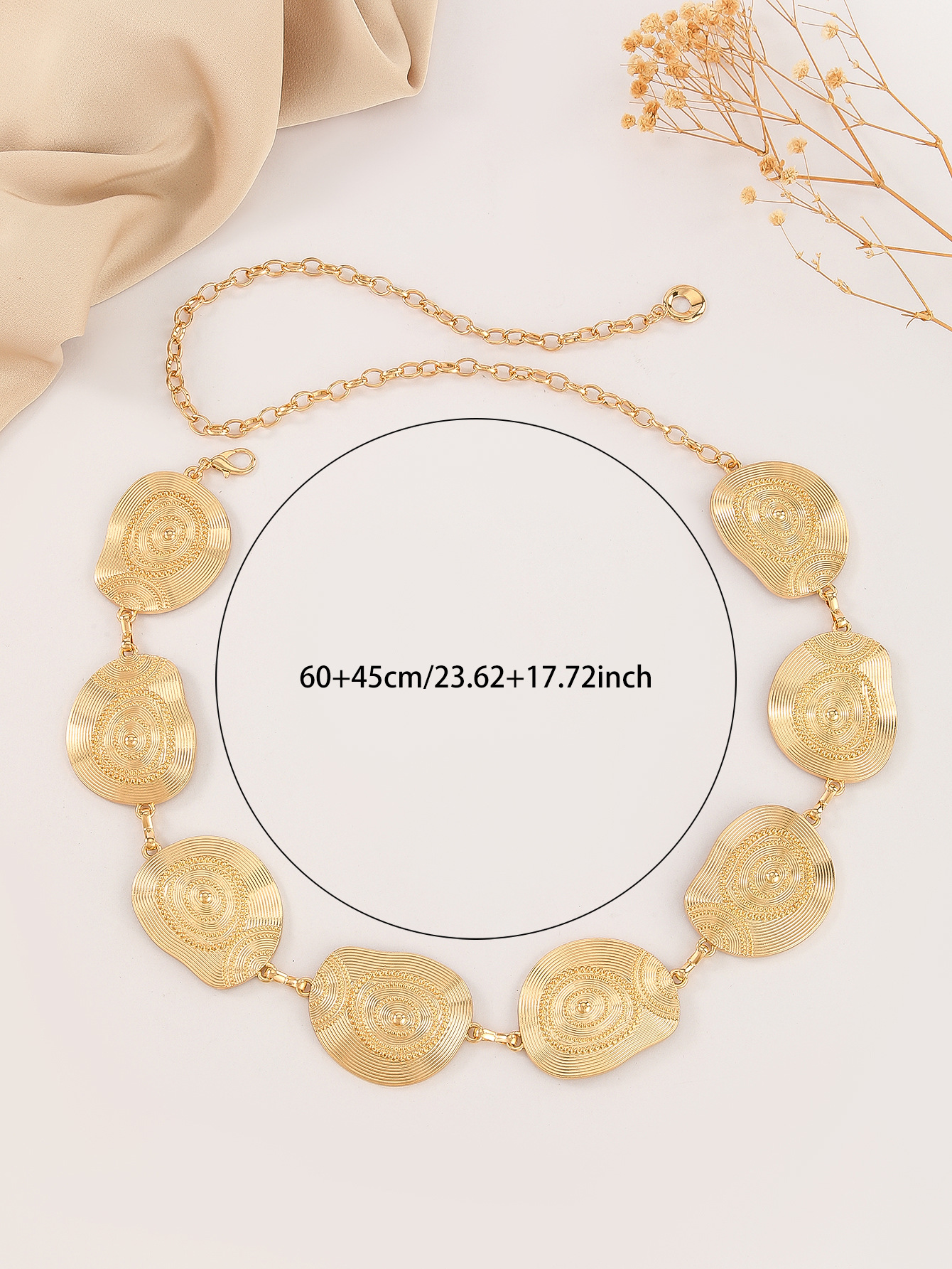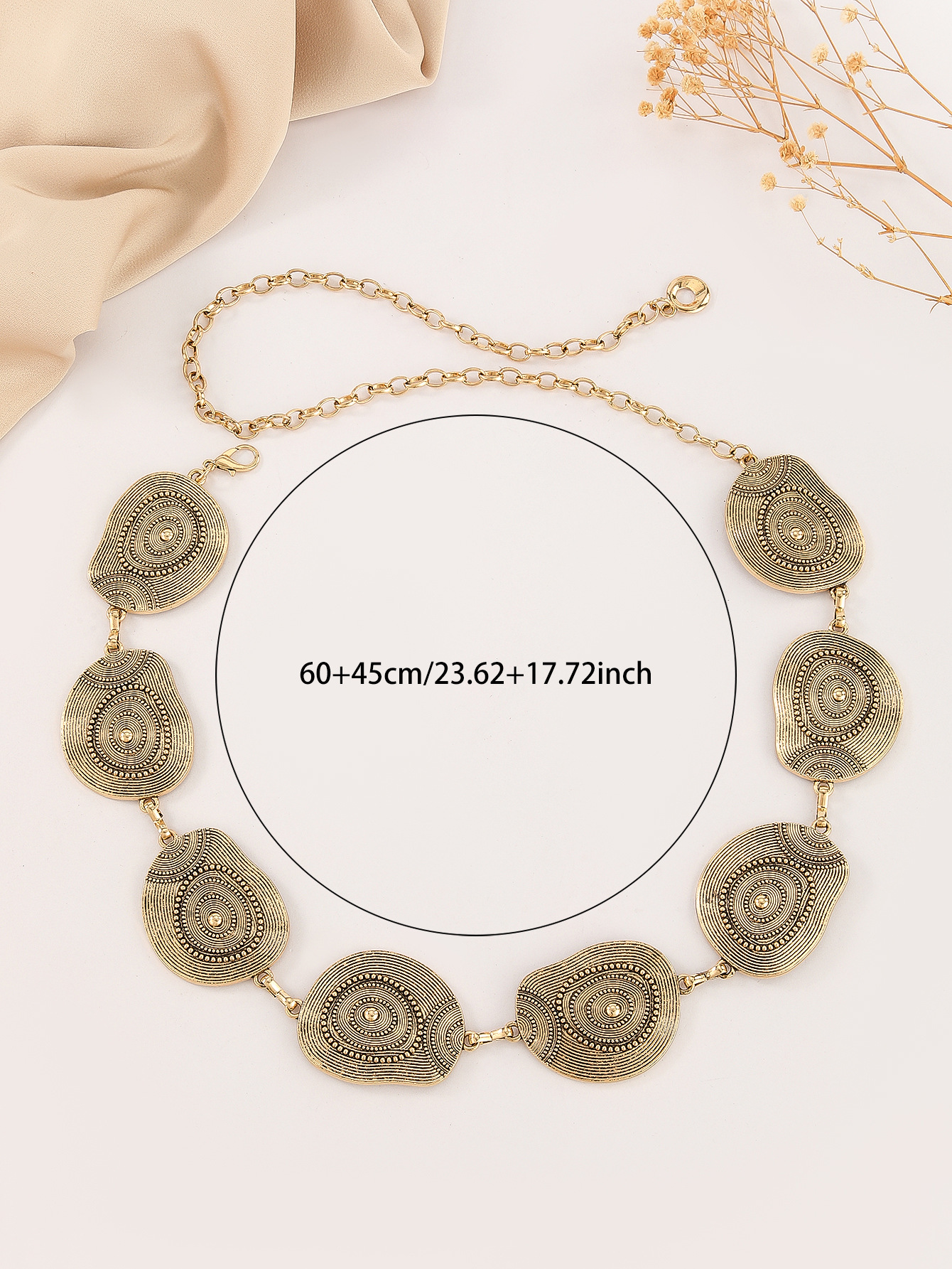 高级感百搭金属腰链女复古简约收腰配饰民族风圆圈链条百搭连衣裙 English | 投诉