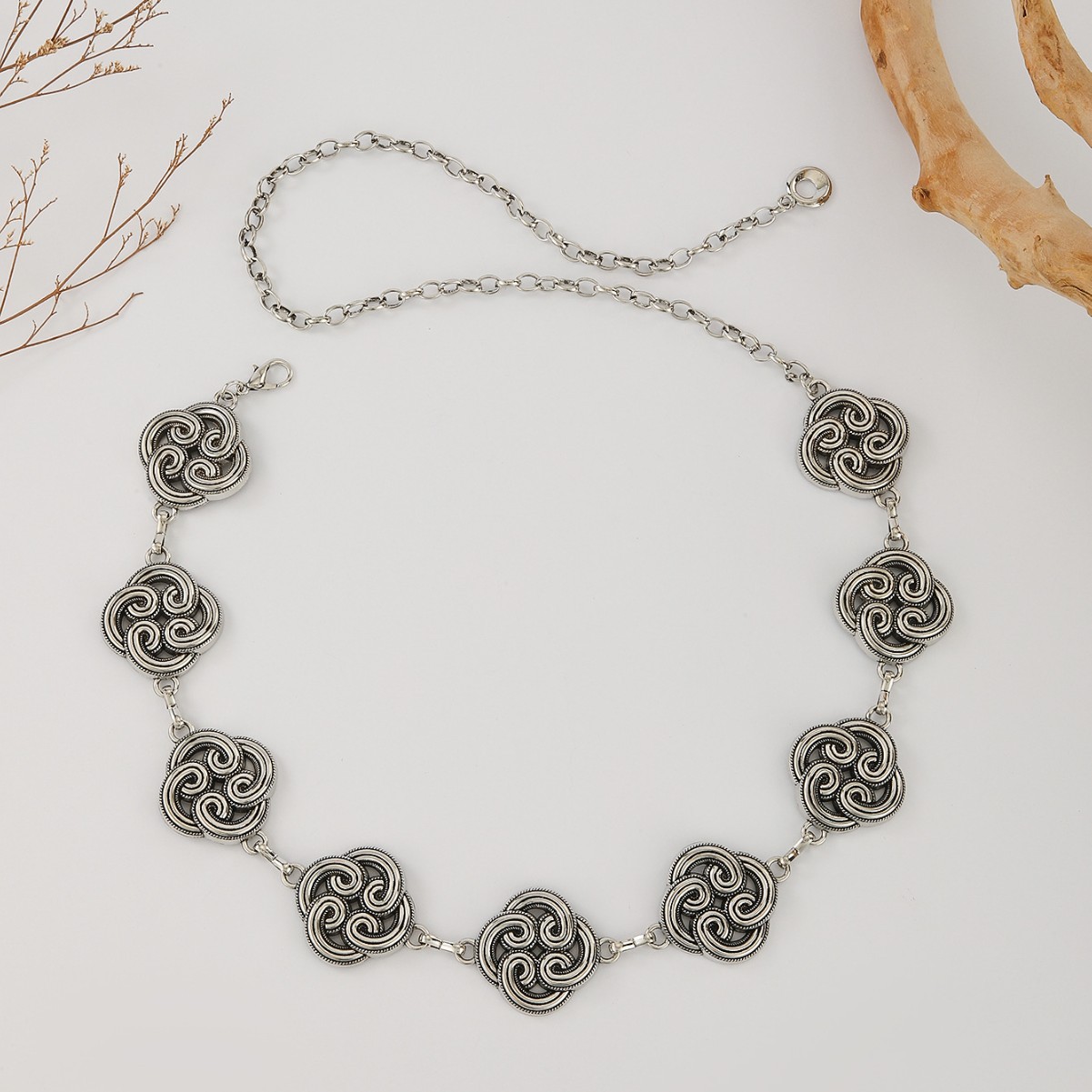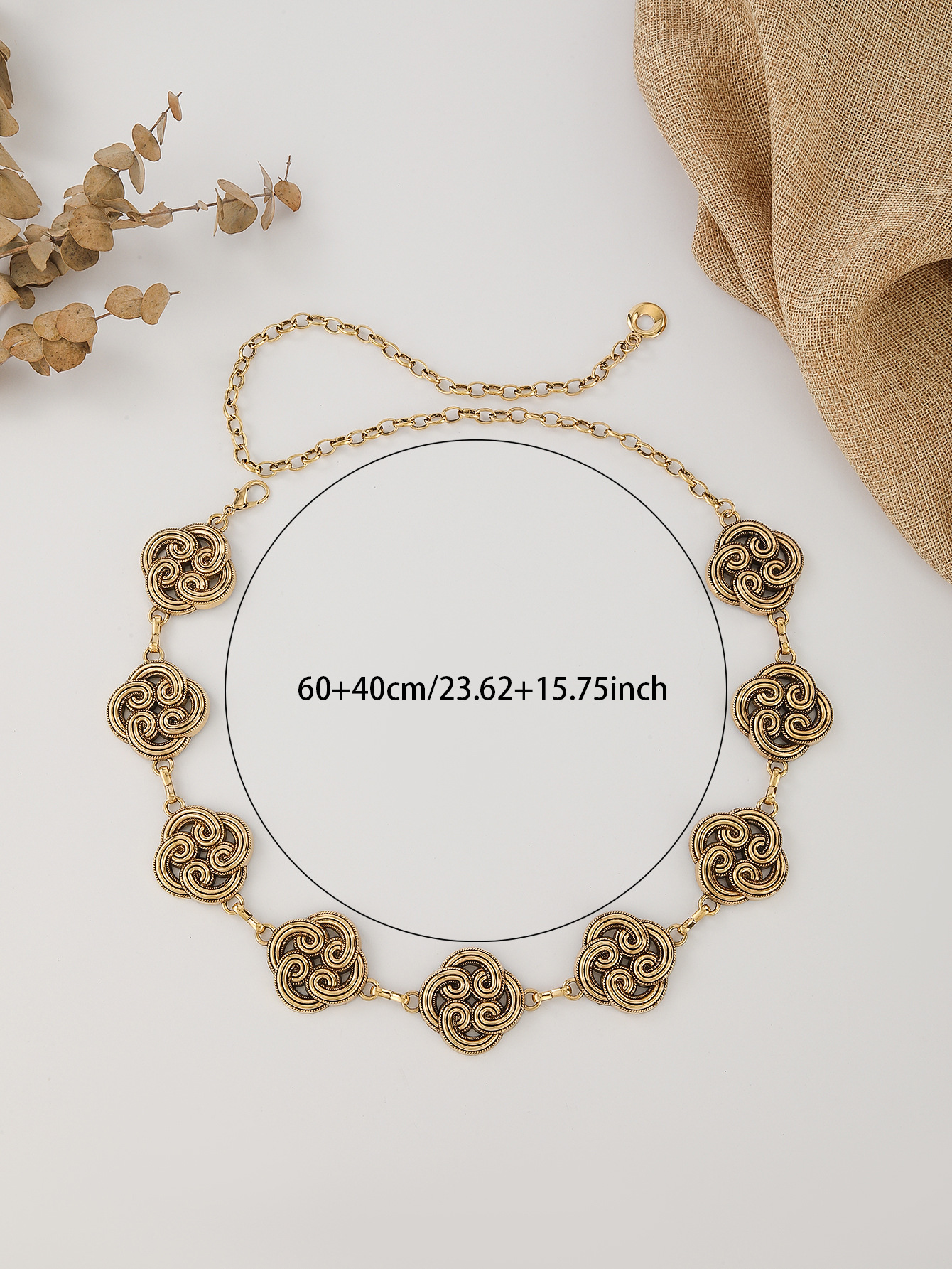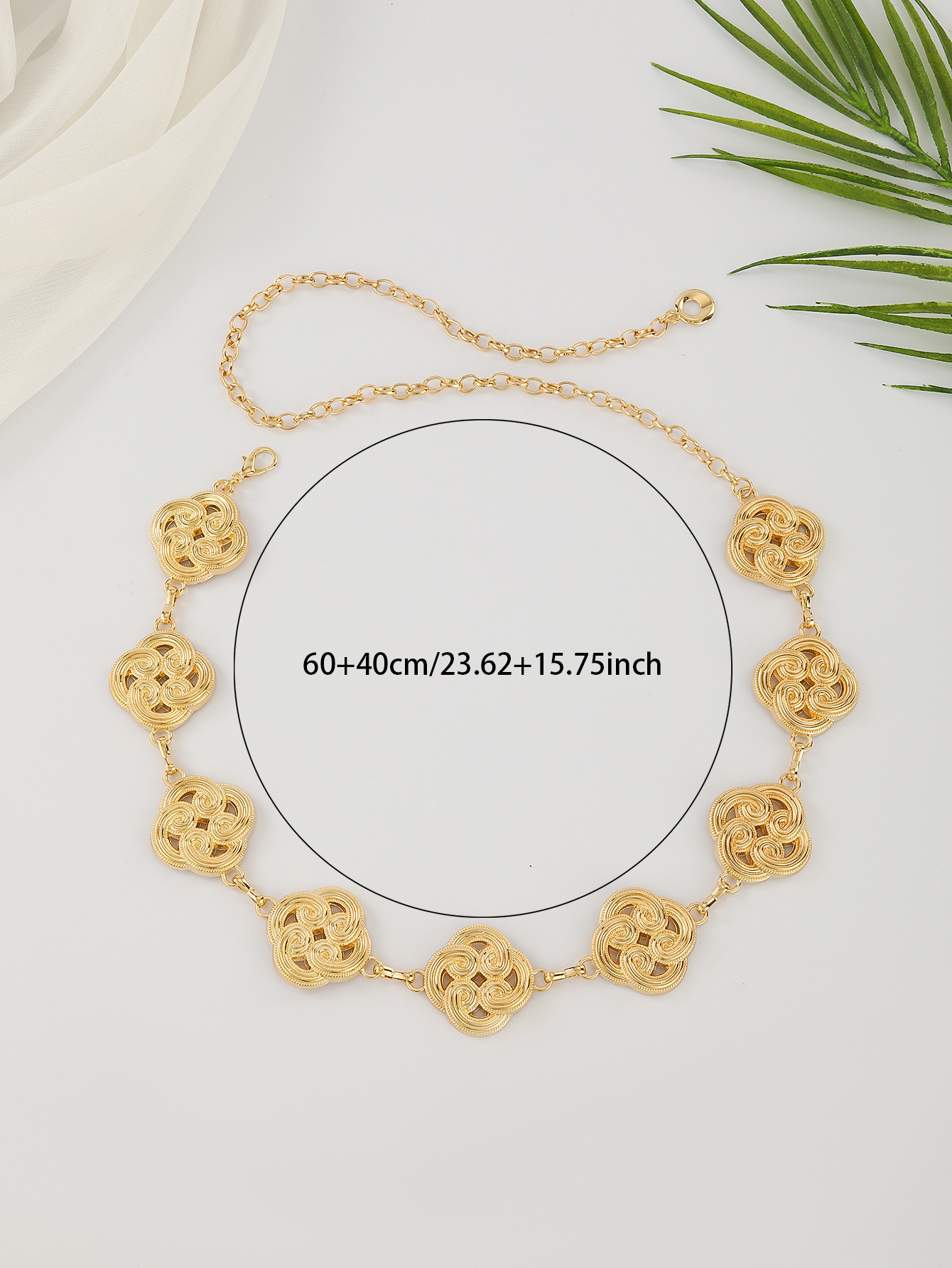 跨境欧美连衣裙腰链女士金属树叶挂钩链条简约百搭装饰细腰带批发 English | 投诉