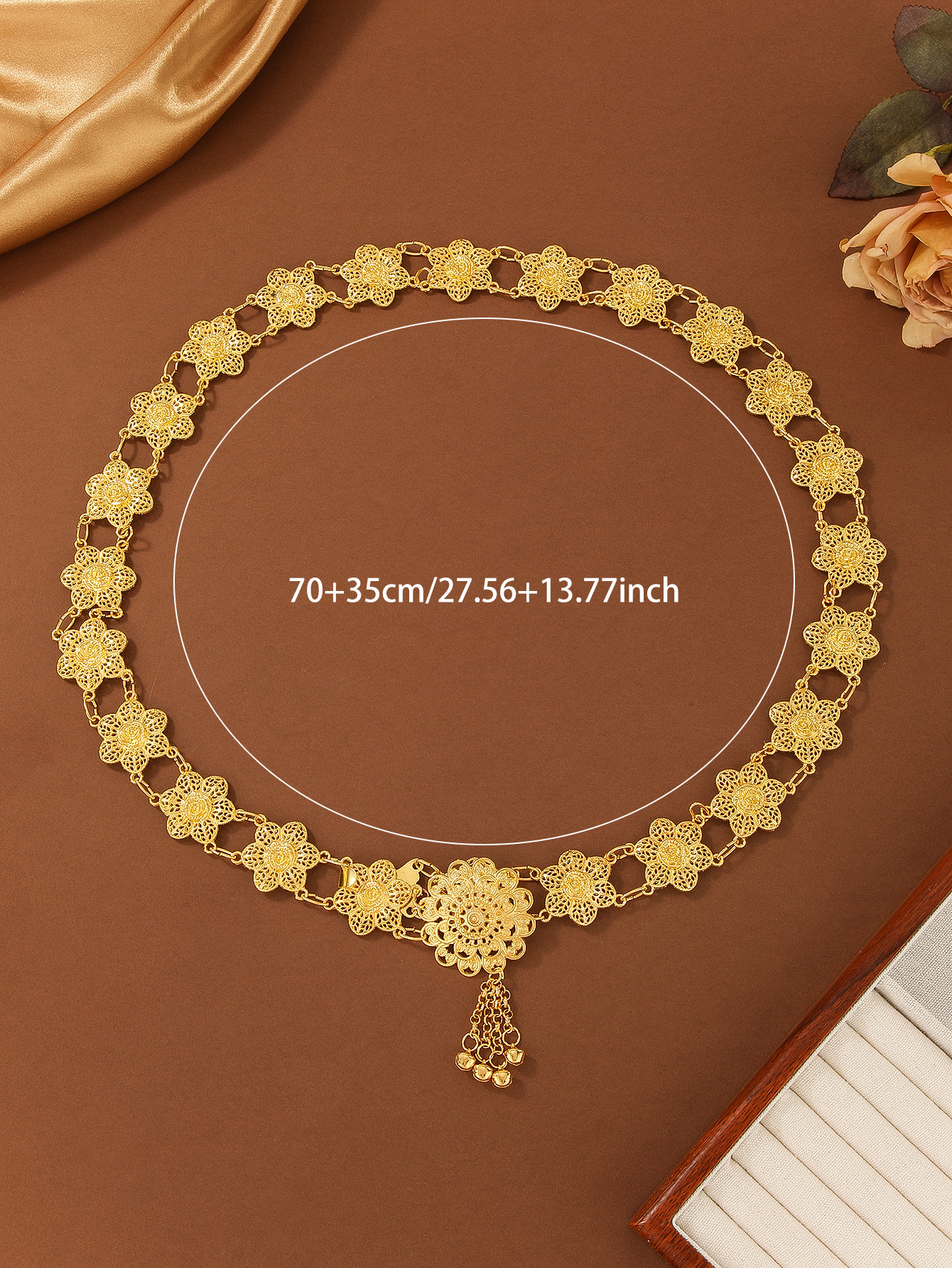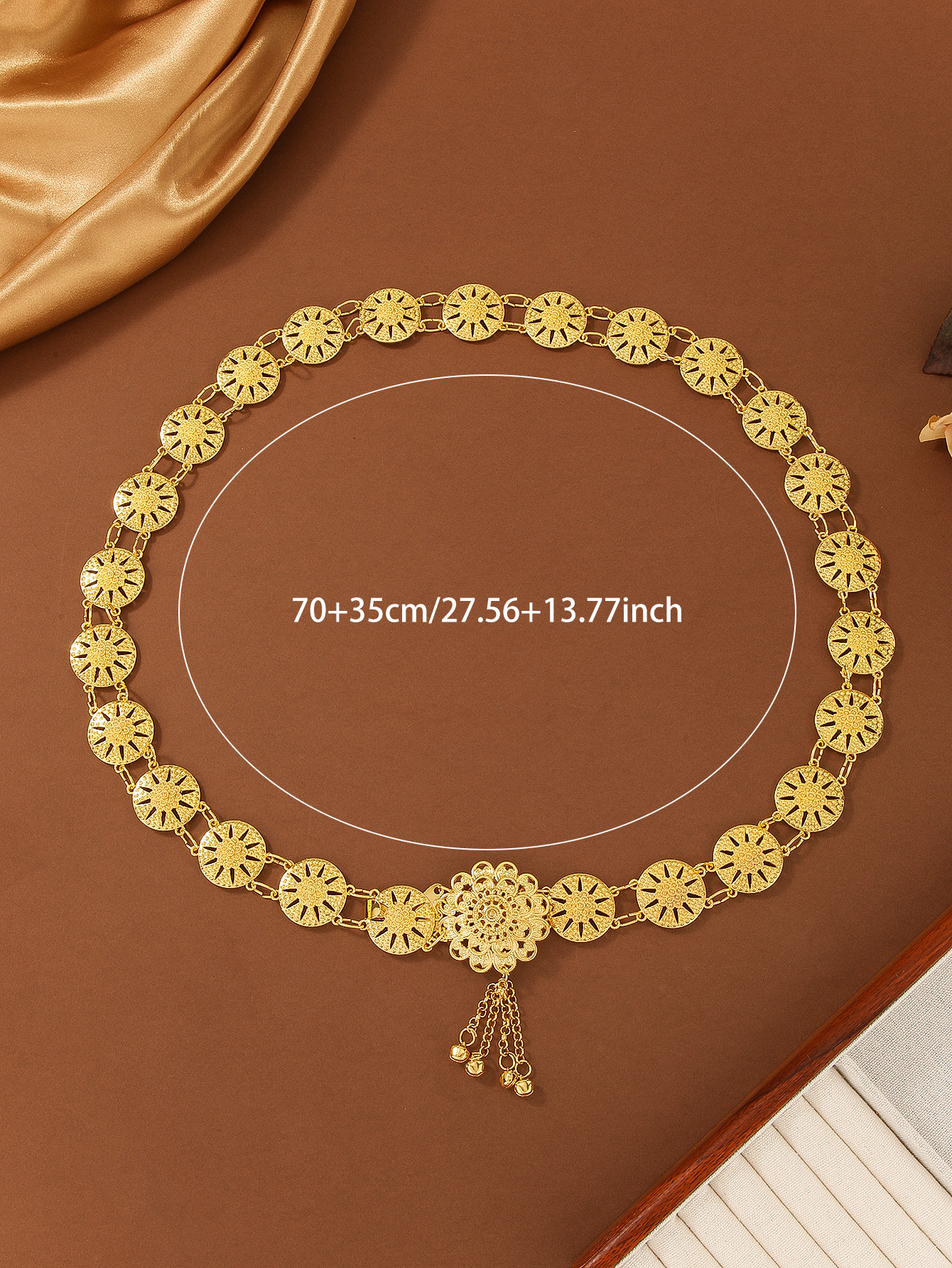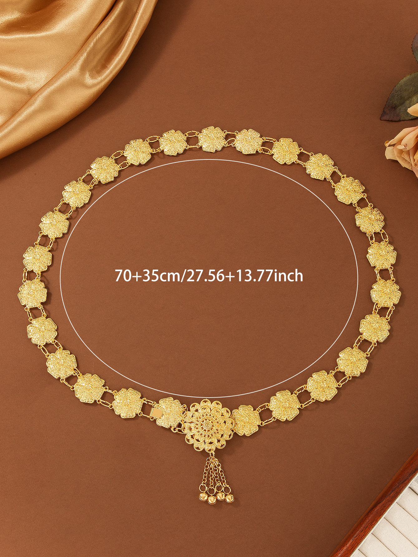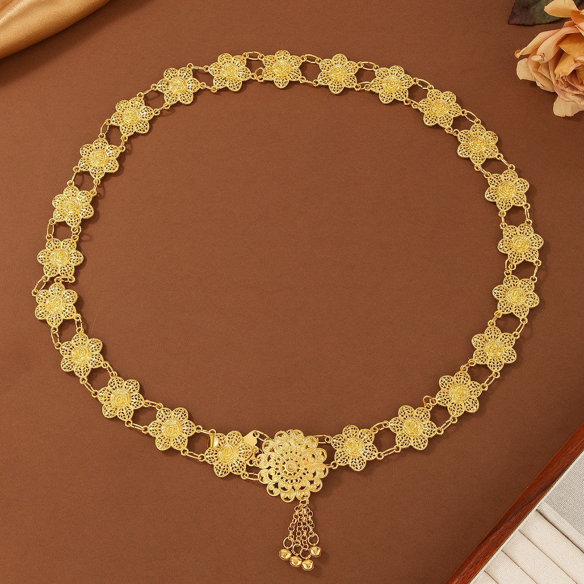 欧美复古民族风合金铃铛流苏镂空拼接花朵单圈身体链腰链 English | 投诉