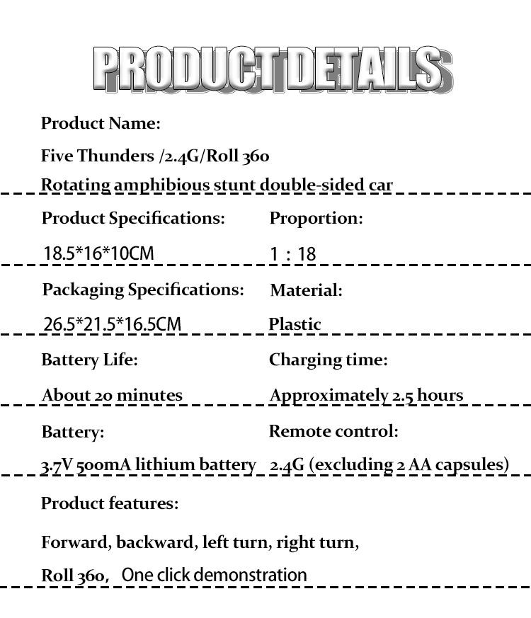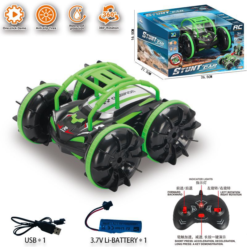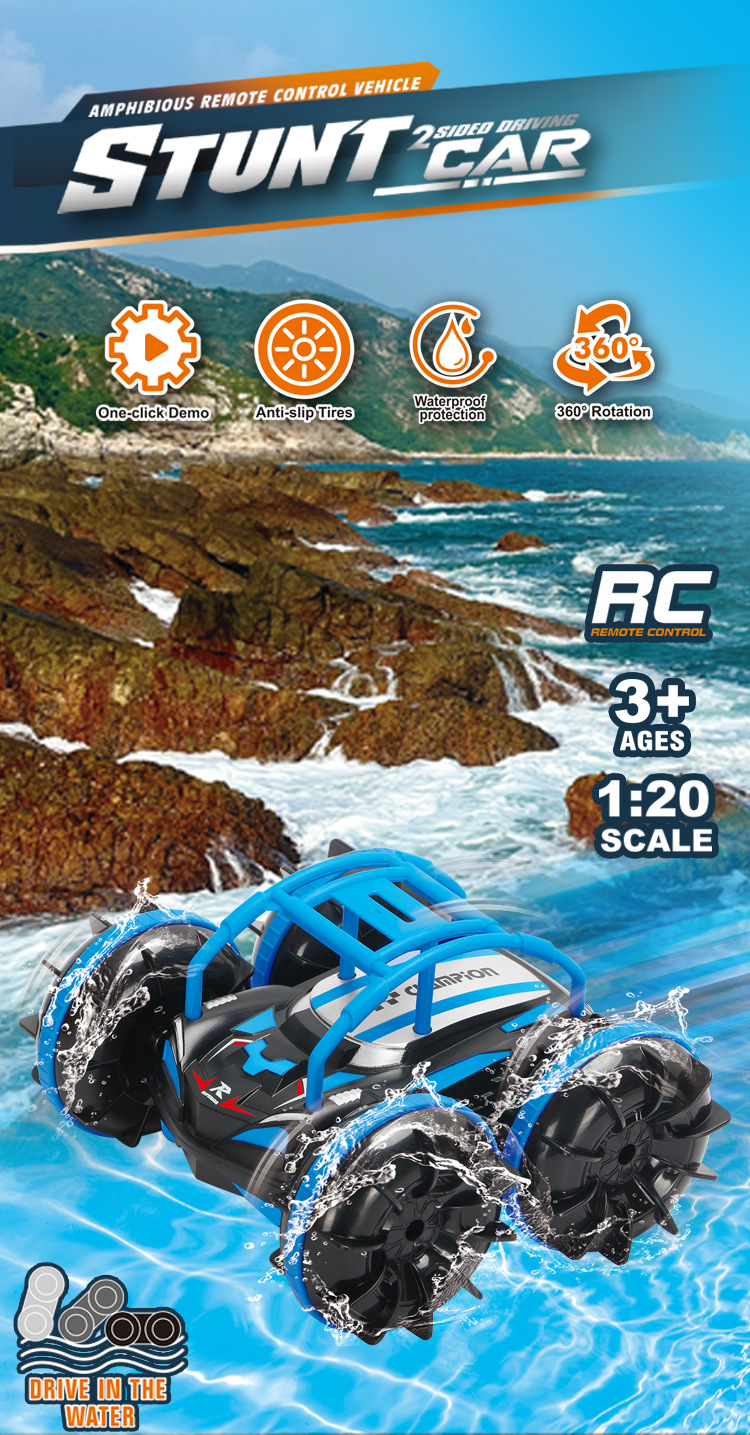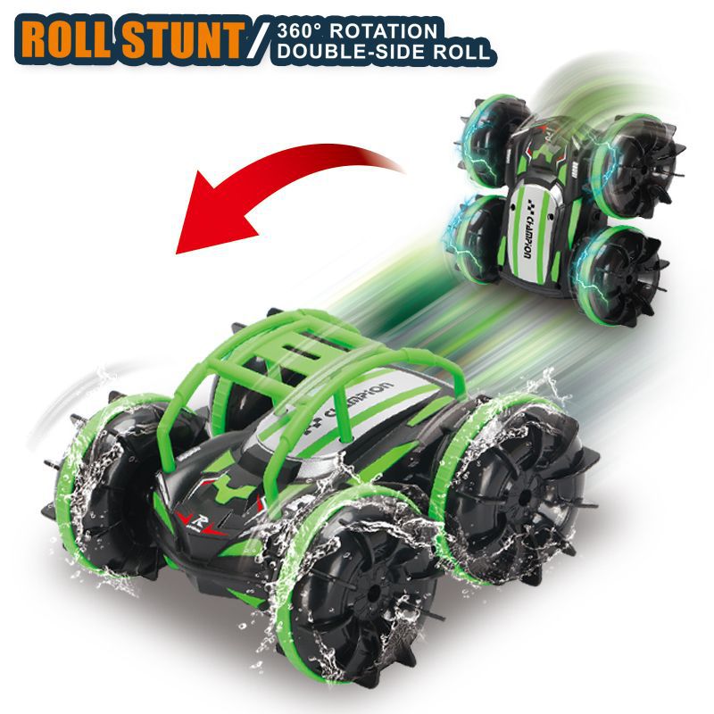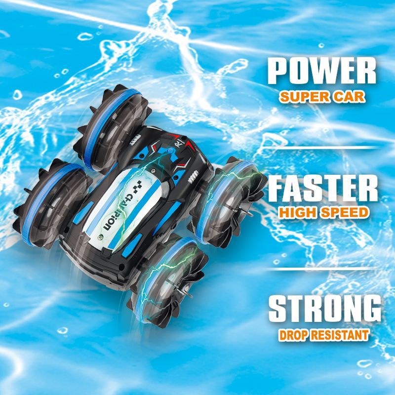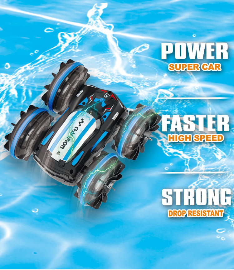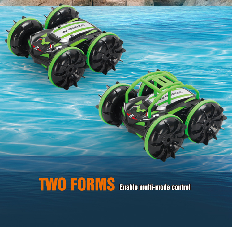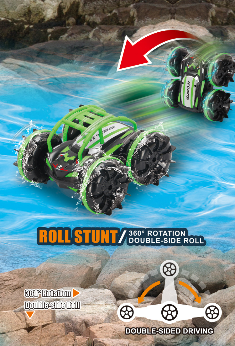 产品名:五通2.4G水陆二合一灯光翻滚360旋转水陆特技车