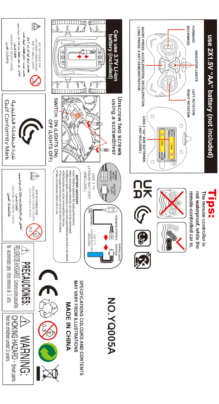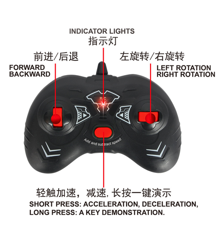 备注:车身是3.7V500毫安锂电池,遥控器是2粒AA。充电2.5小时单款两色混装