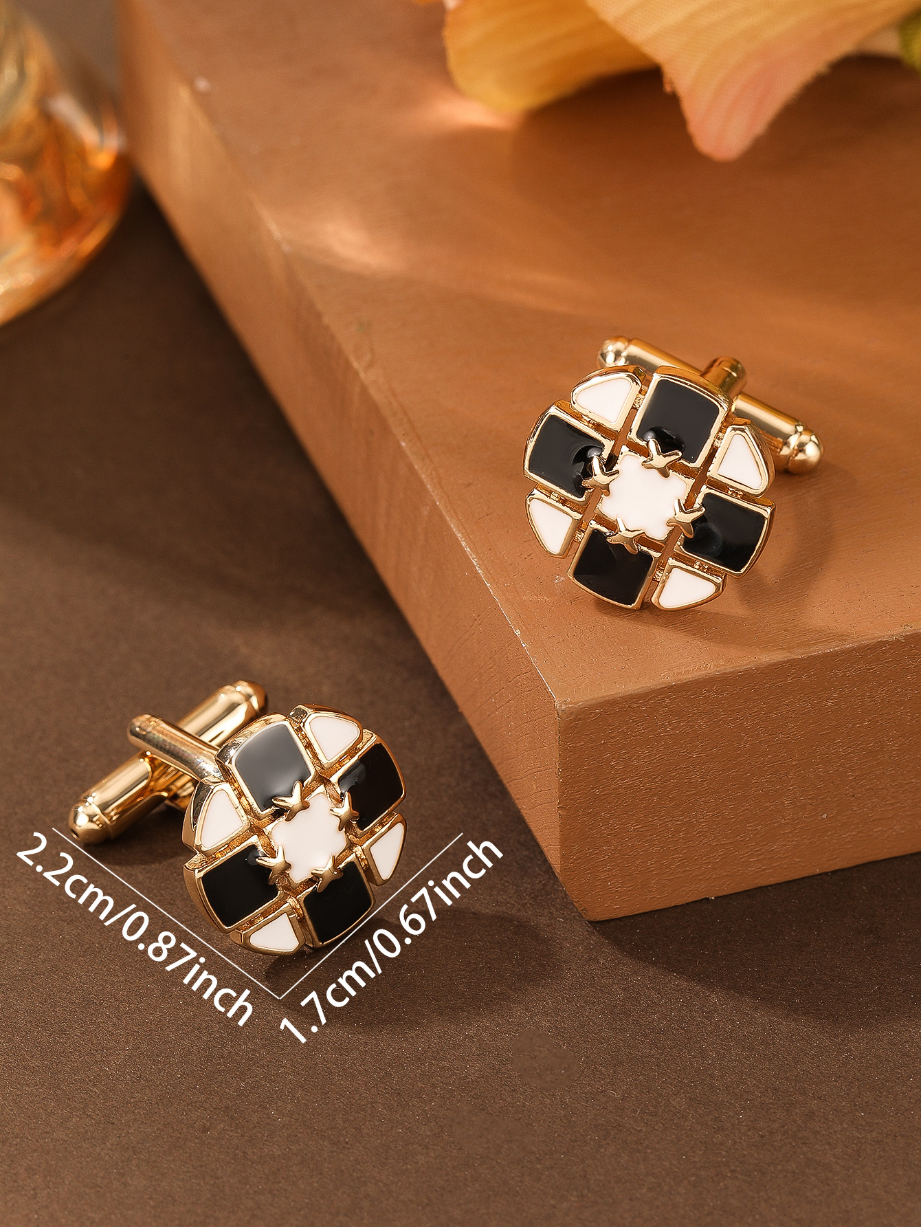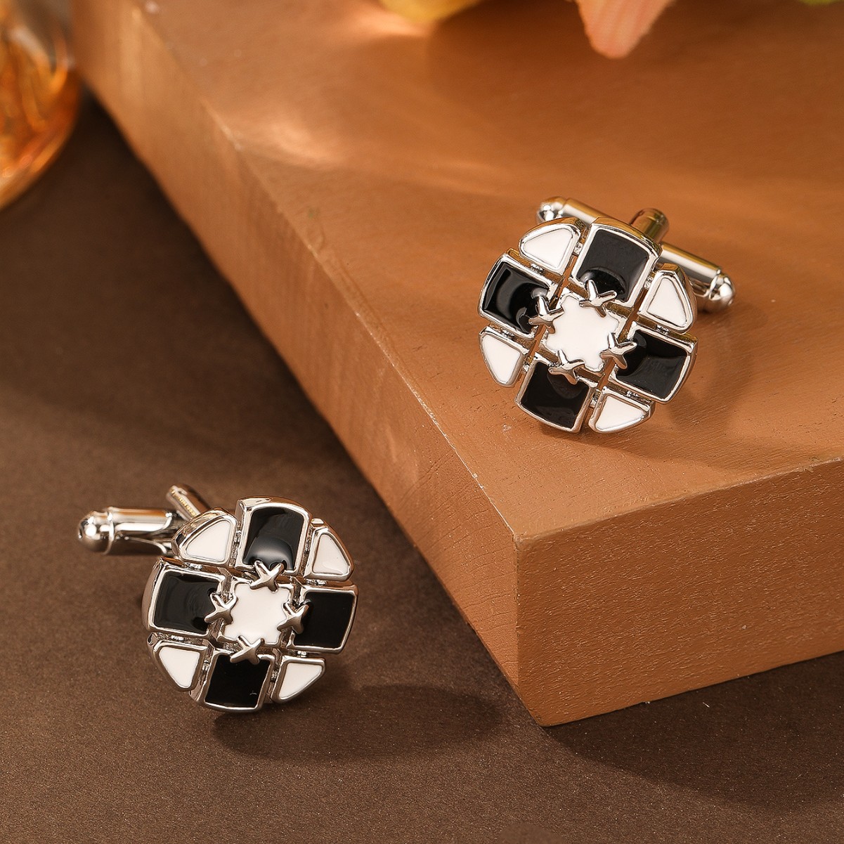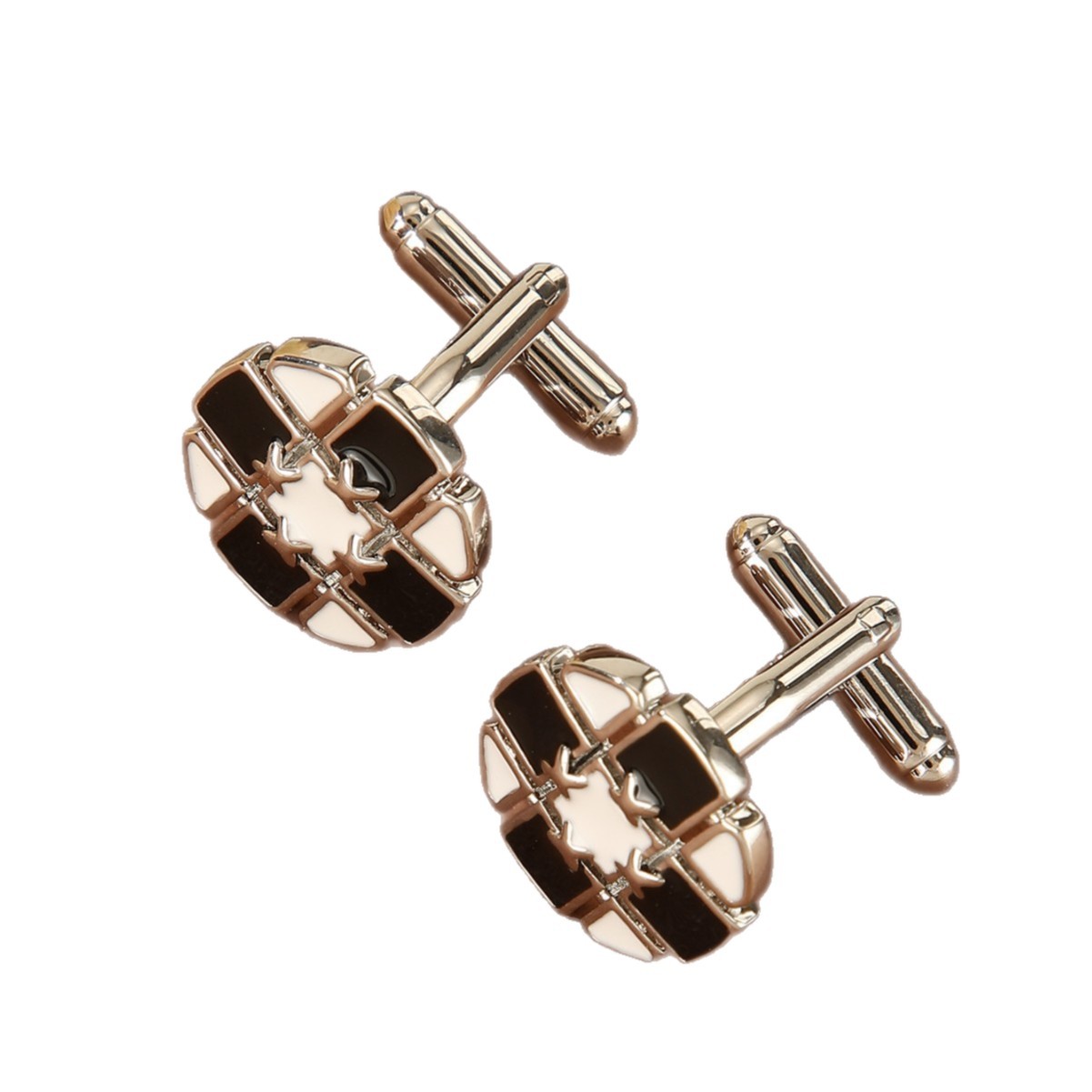 跨境简约时尚黑白相间创意设计圆形金色铜男士衬衫袖扣袖钉批发