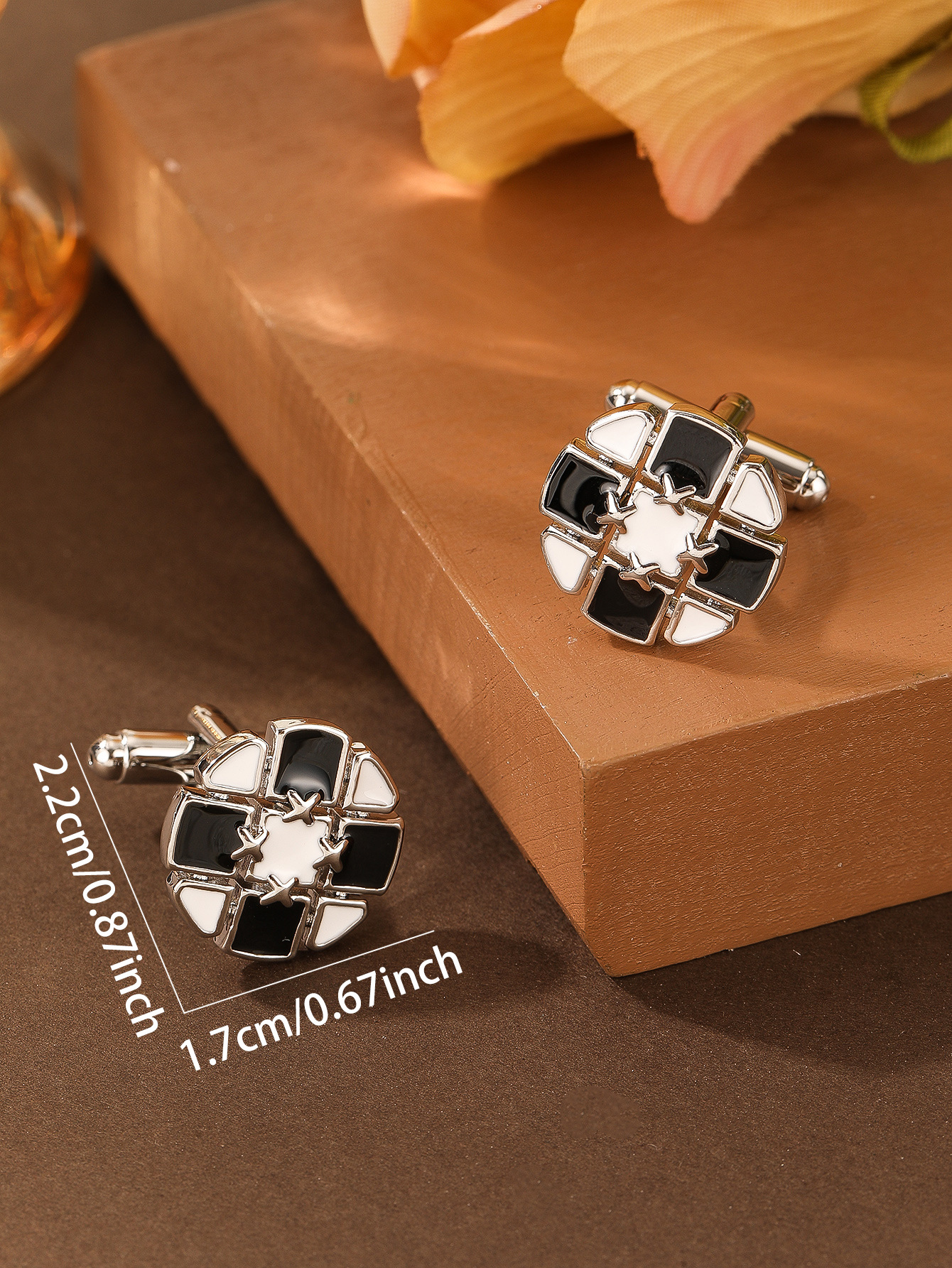 跨境简约时尚黑白相间创意设计圆形金色铜男士衬衫袖扣袖钉批发 English | 投诉