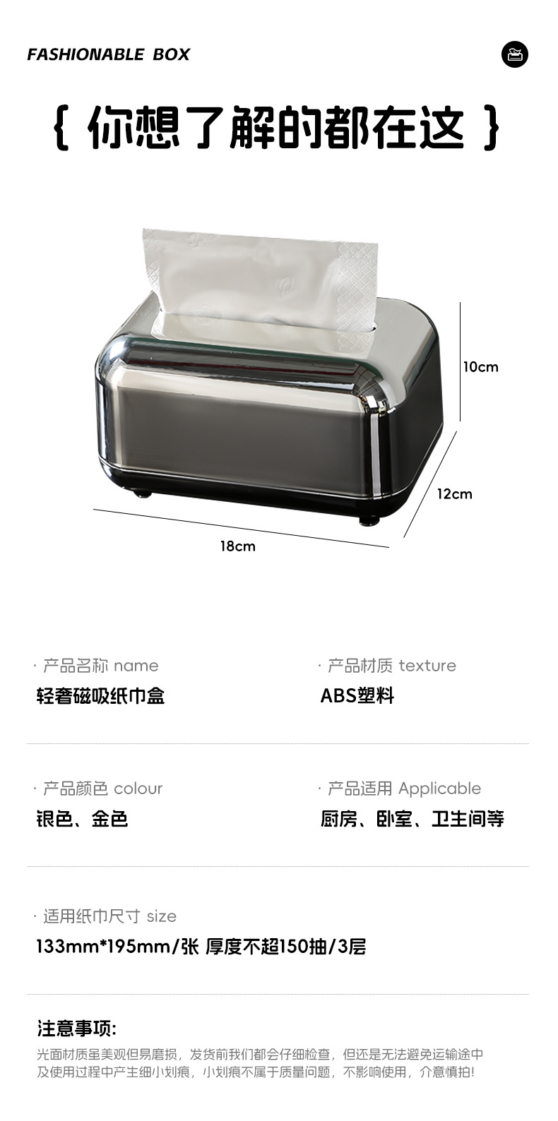 品名:轻奢磁吸纸巾盒