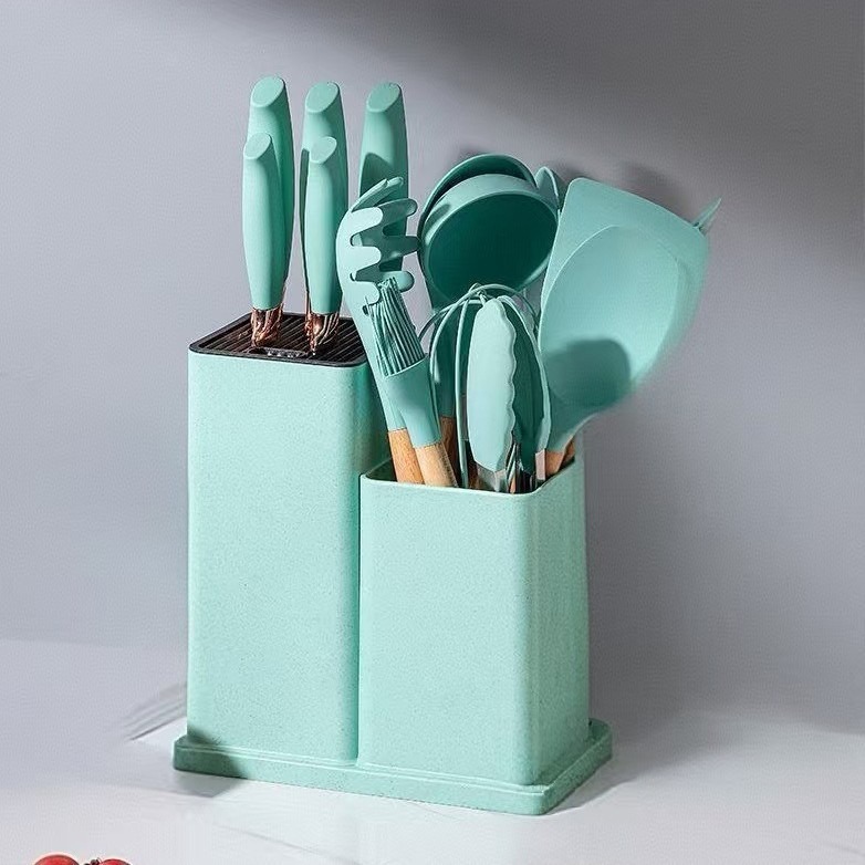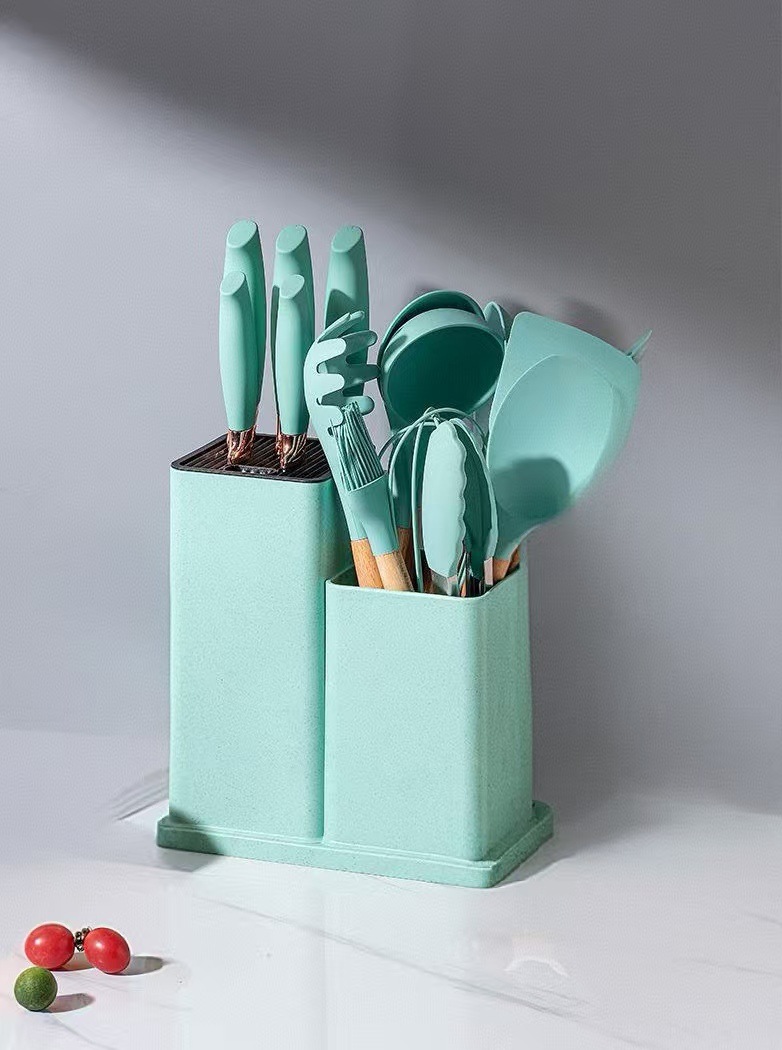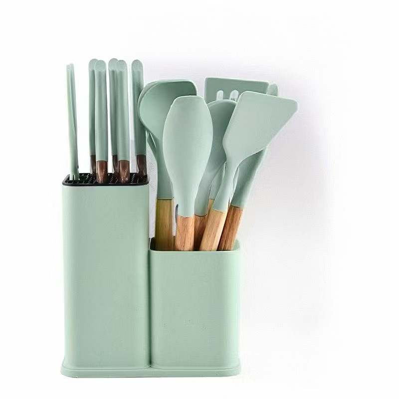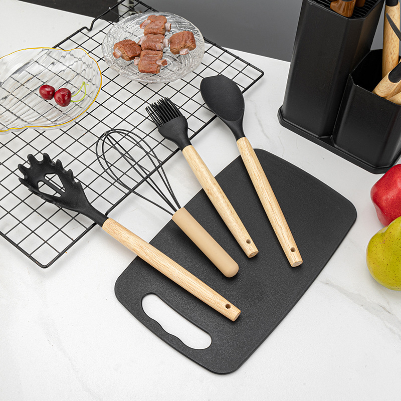不粘锅硅胶厨具19件套装食品级木柄厨具厨房工具刀具套装厂家现货