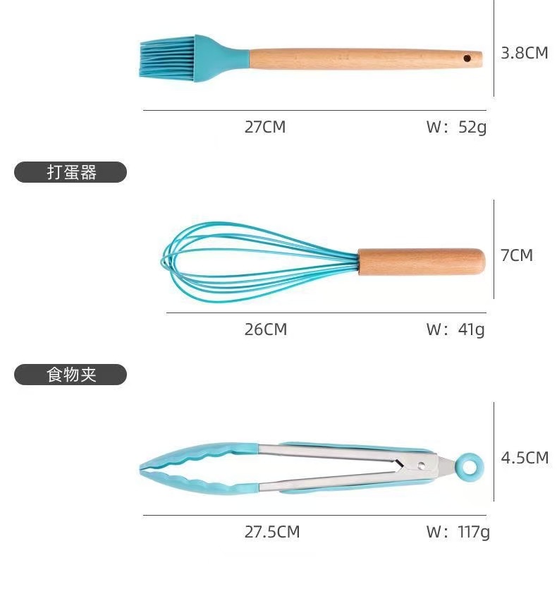 不粘锅硅胶厨具19件套装食品级木柄厨具厨房工具刀具套装厂家现货 投诉