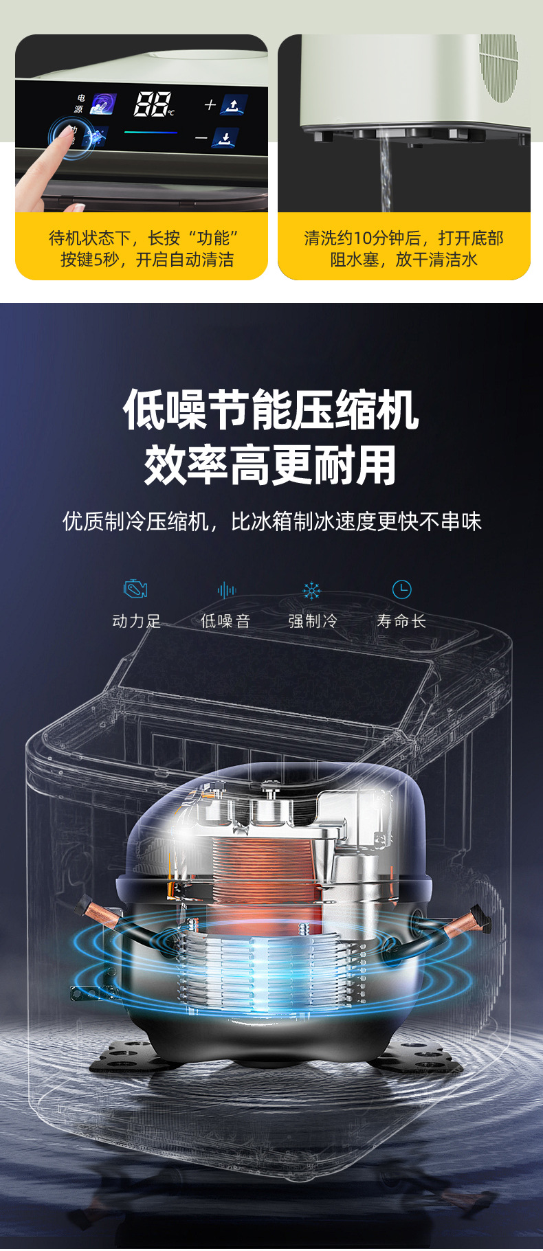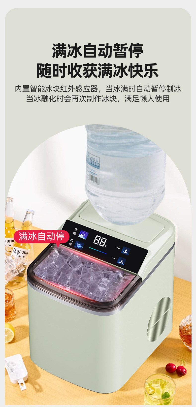 操作功能;电源 冰满提示 缺水提示 自动清洗
