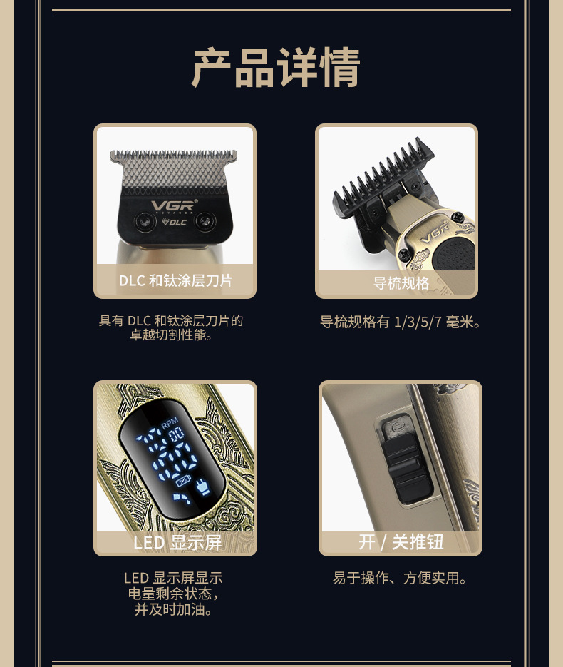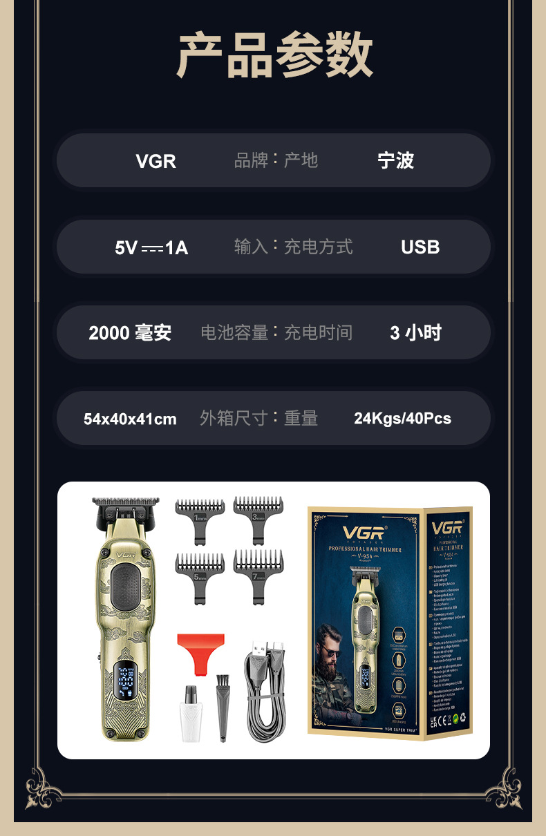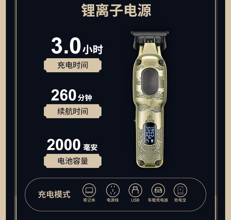VGR954跨境数显理发器油头推剪专业发廊充电式男士金属电动推子 投诉