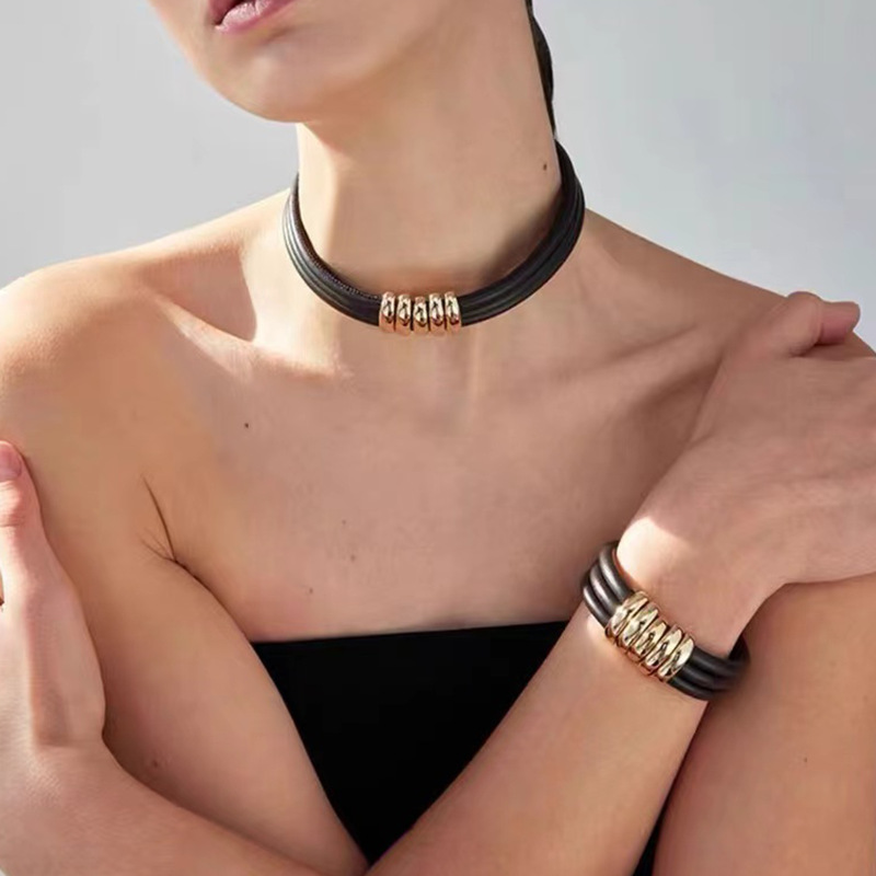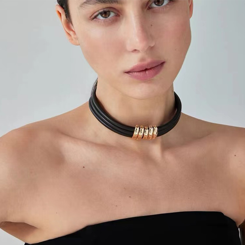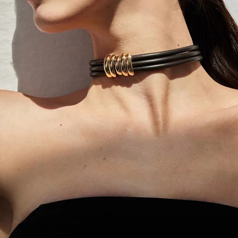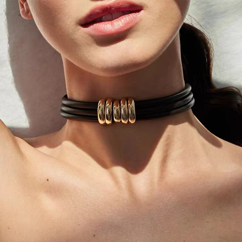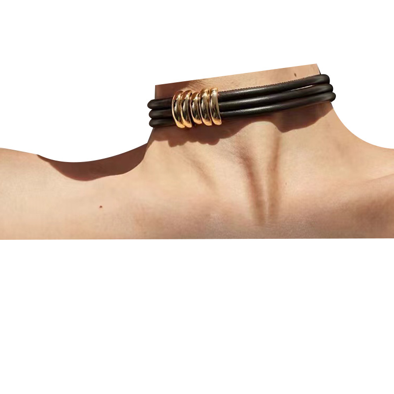 真牛皮项圈现货大气冷淡风锁骨链欧美跨境个性高级感时尚颈圈项链