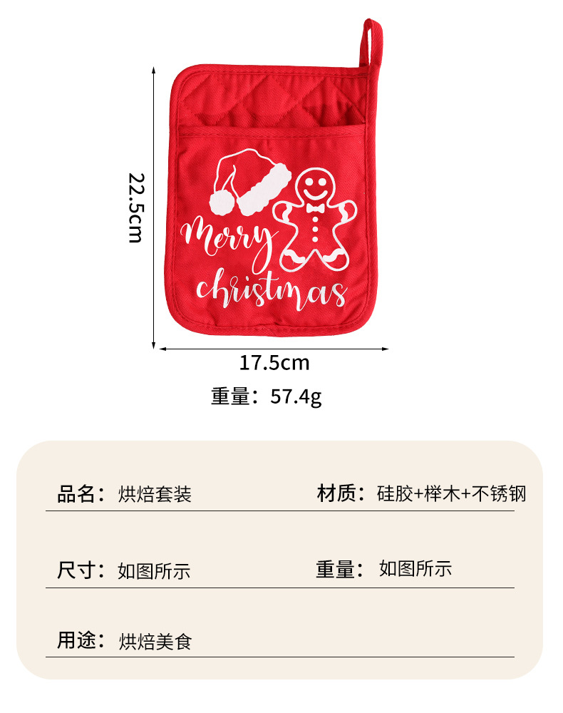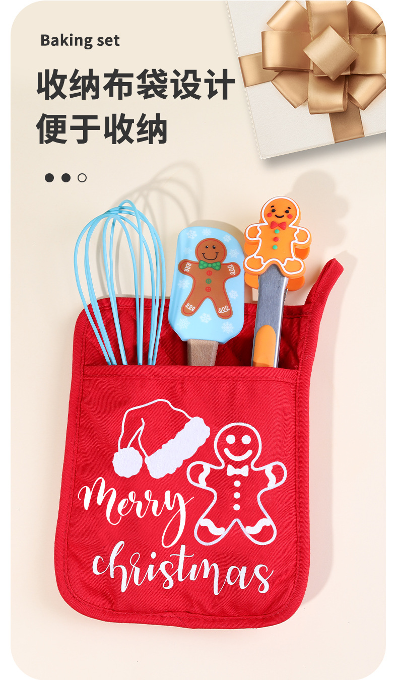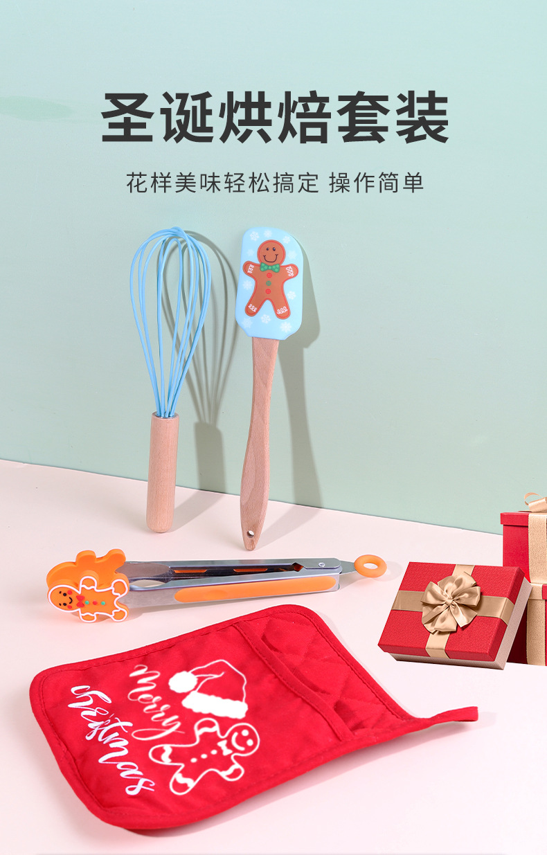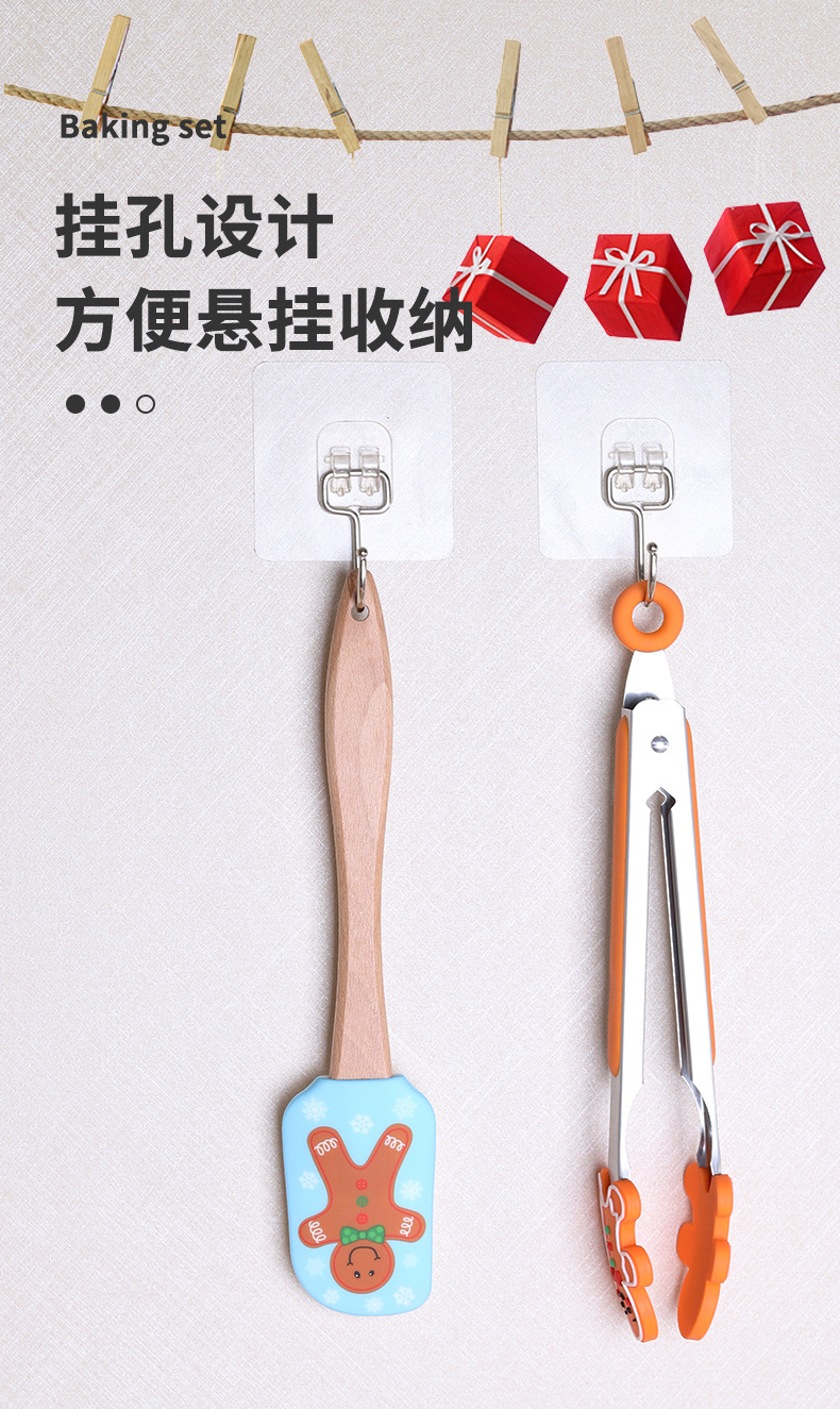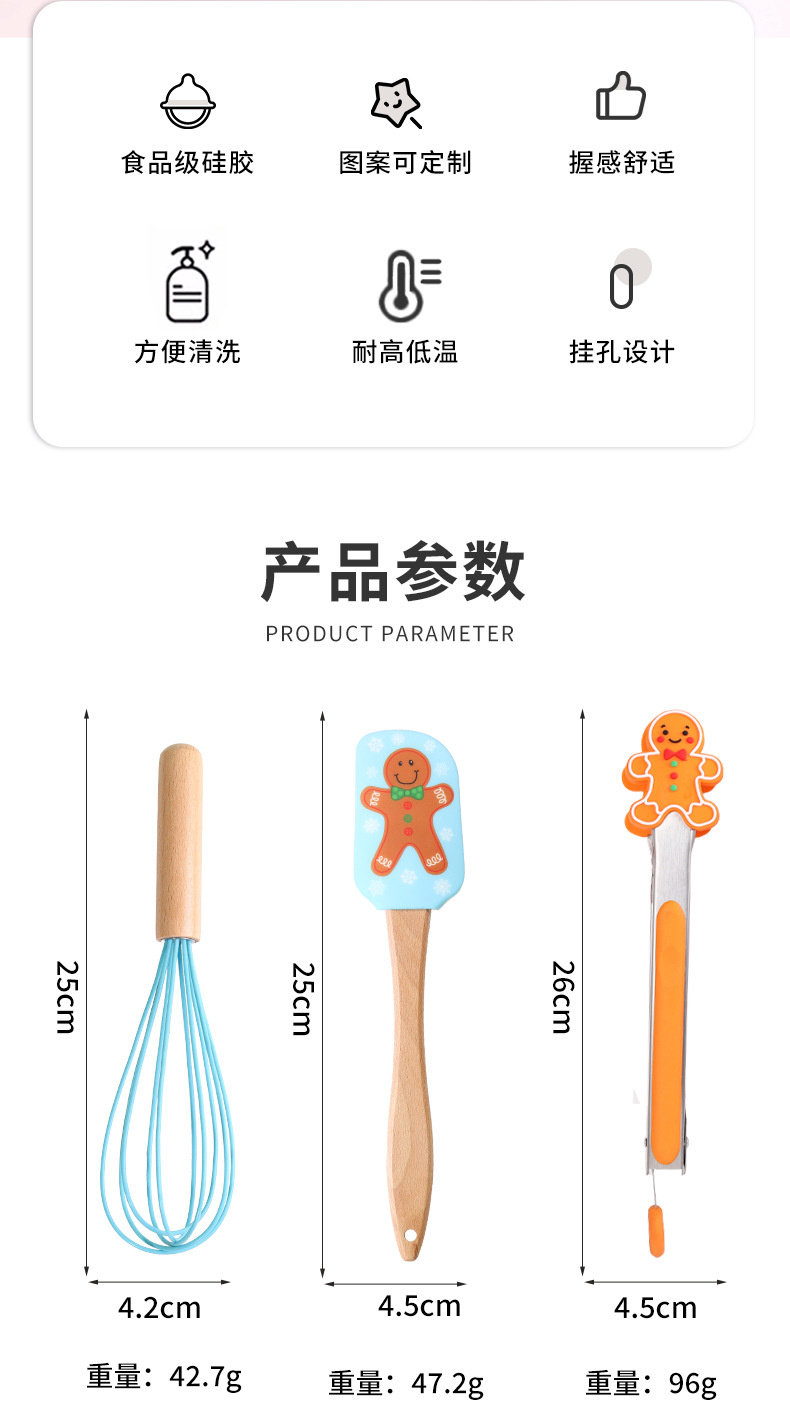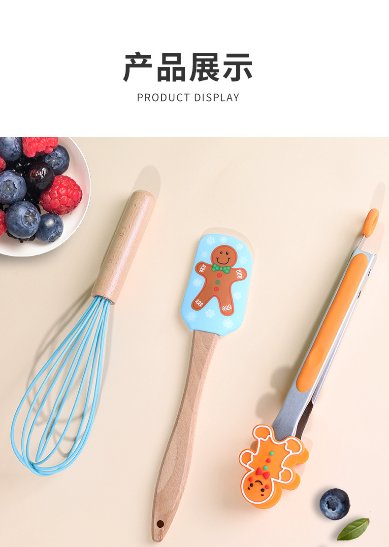 跨境圣诞节三件套厨房家用食物夹蛋糕抹刀硅胶刮刀打蛋器烘焙套装 English | 投诉