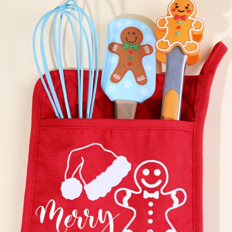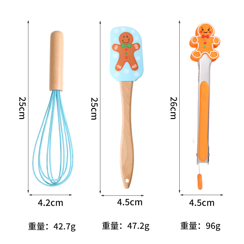 跨境圣诞节三件套厨房家用食物夹蛋糕抹刀硅胶刮刀打蛋器烘焙套装