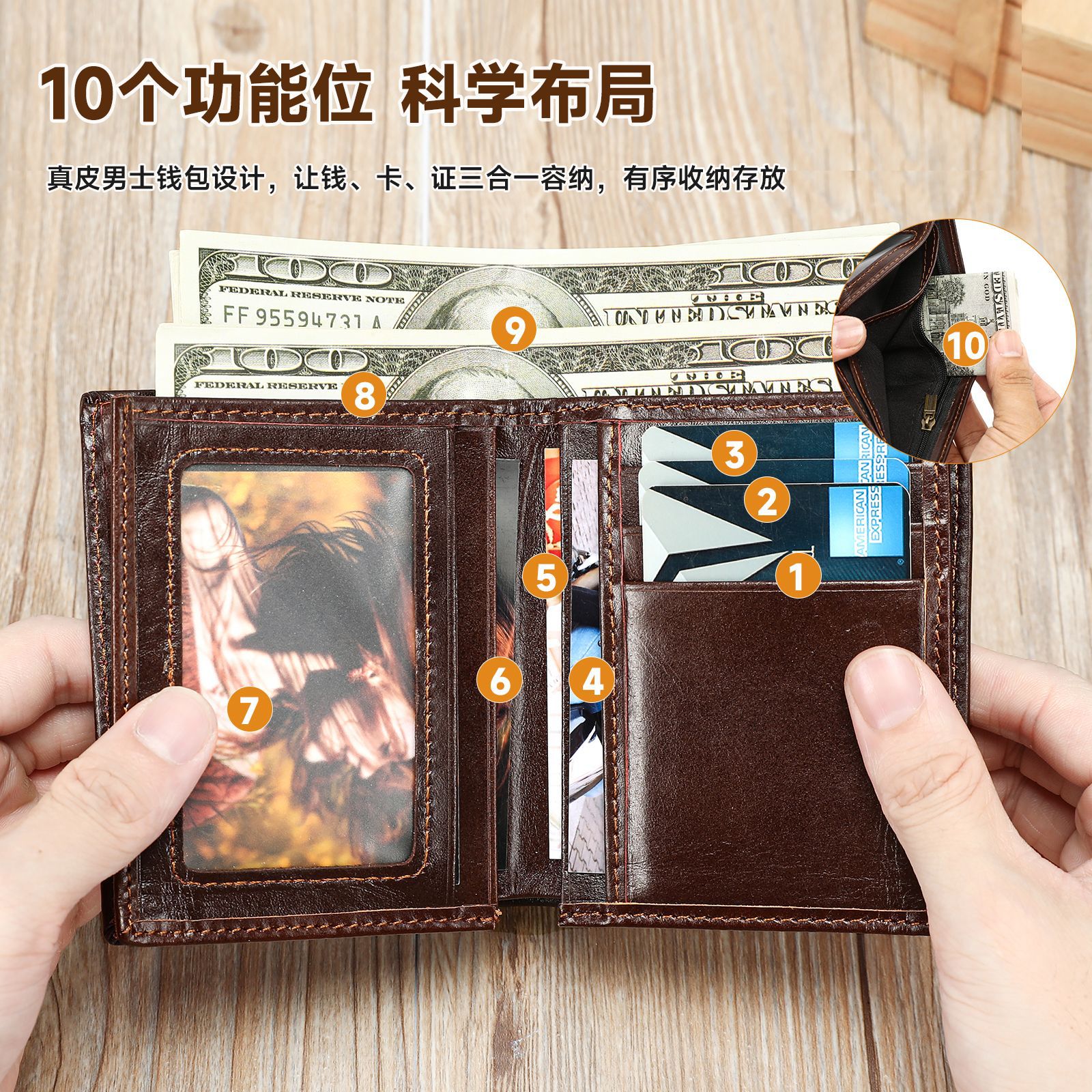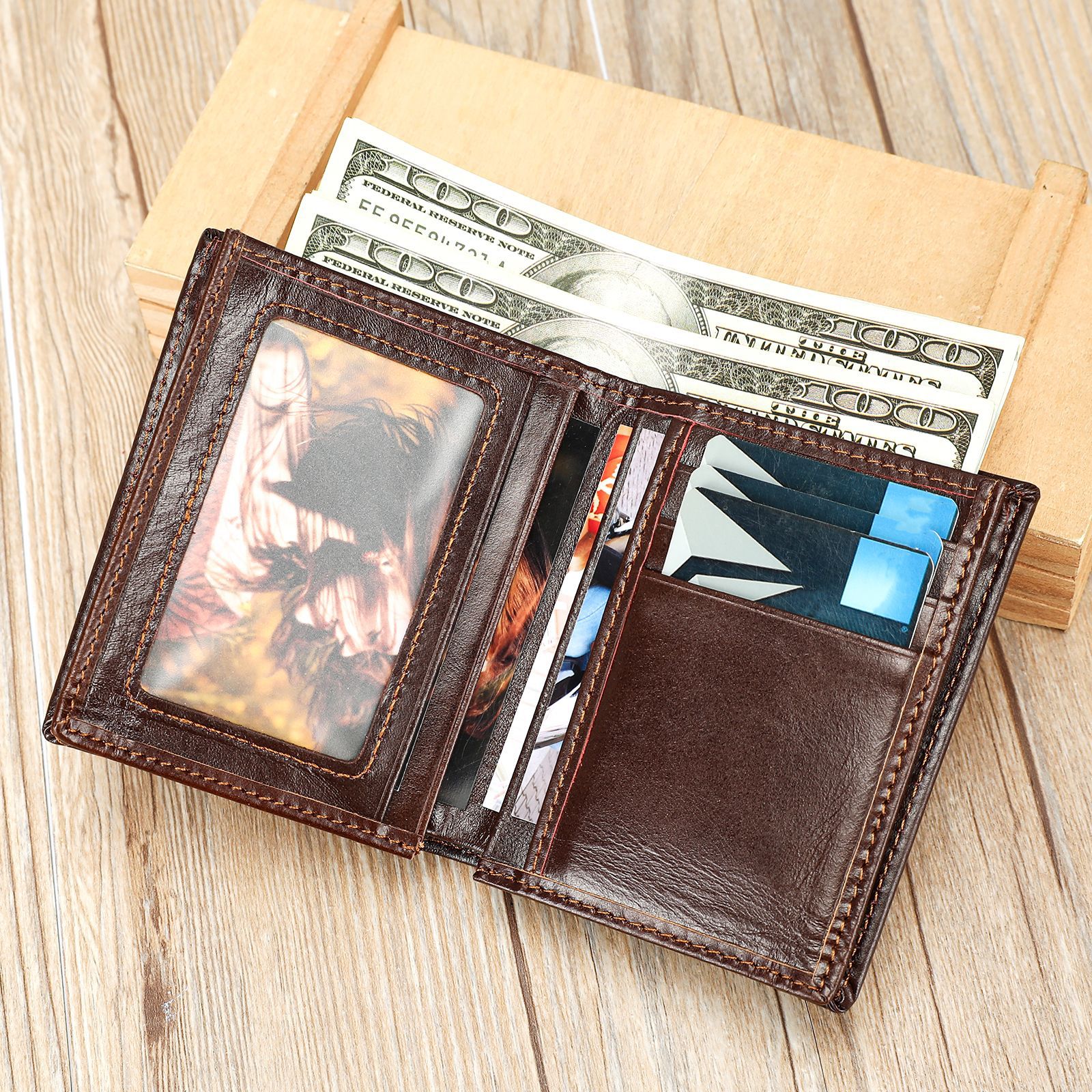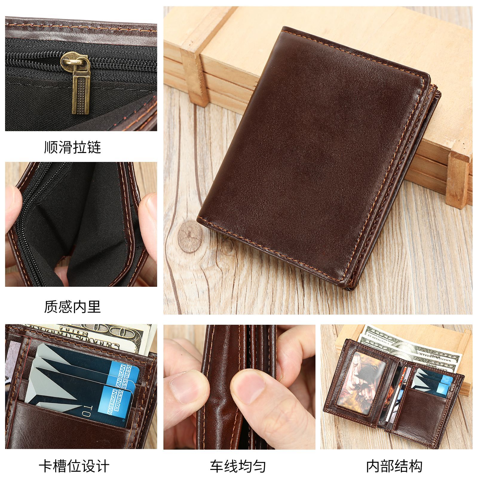 复古休闲头层牛皮短款钱包多功能多卡位皮夹百搭耐用头层牛皮钱夹