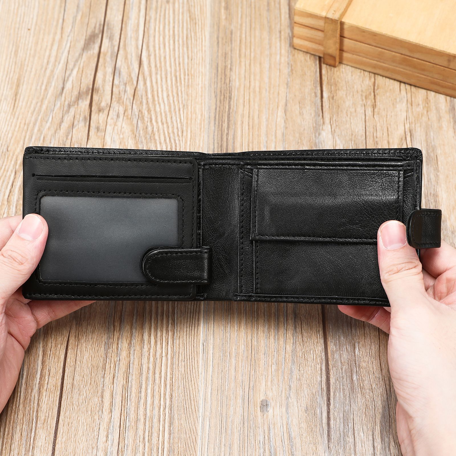 材质: 真皮 皮质特征: 头层牛皮 功能: 耐磨 里料质地: 涤棉 钱夹折数: 2折 品牌: MVA 图案: 纯色 风格: 复古腔调 货号: 1319 流行元素: 其他 颜色: 黑色,咖啡 有可授权的自有品牌: 是 上市年份季节: 2025年秋季 尺寸: 11.5*2*9cm 适用场景: 日常搭配 重量: 0.15 kg/个