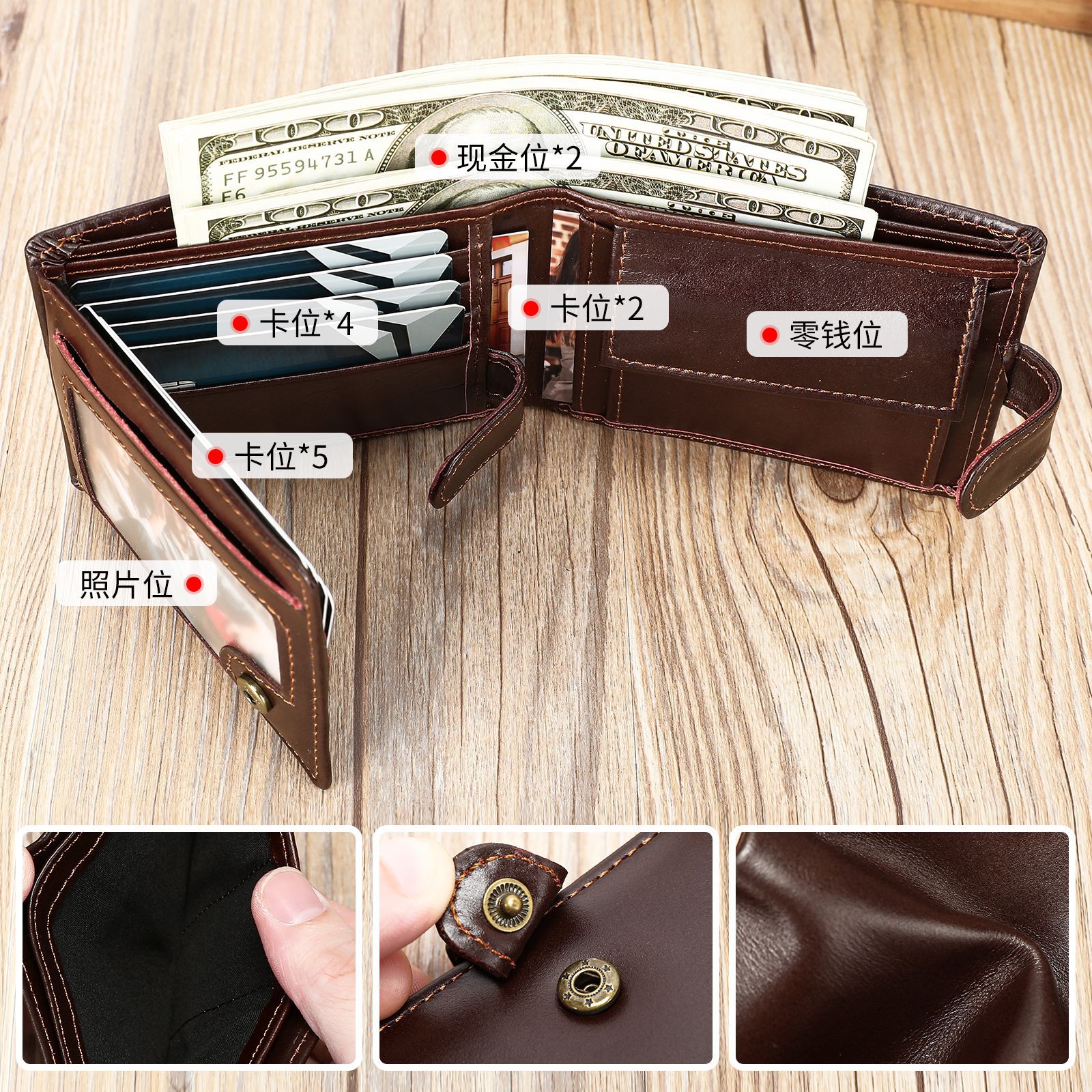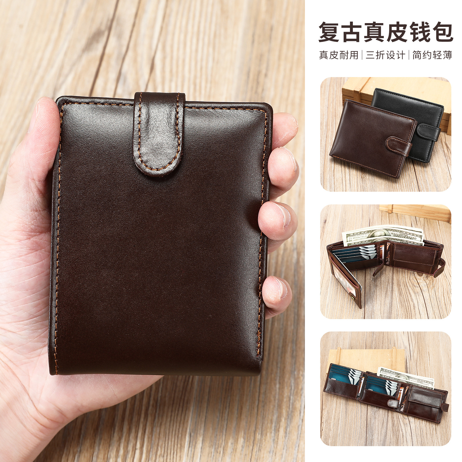 复古真皮男士钱包手持高级感多功能钱夹多卡位商务卡包皮包批发 投诉